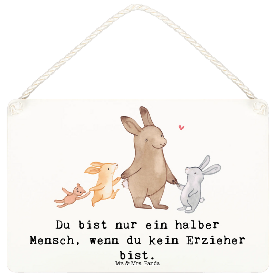 Mit einem sanften, verspielten Design und dem Slogan 'Du bist nur ein halber Mensch, wenn du kein Erzieher bist.' vermittelt dieses Schild eine herzliche Botschaft, die jeder Erzieher nur zu gut versteht.