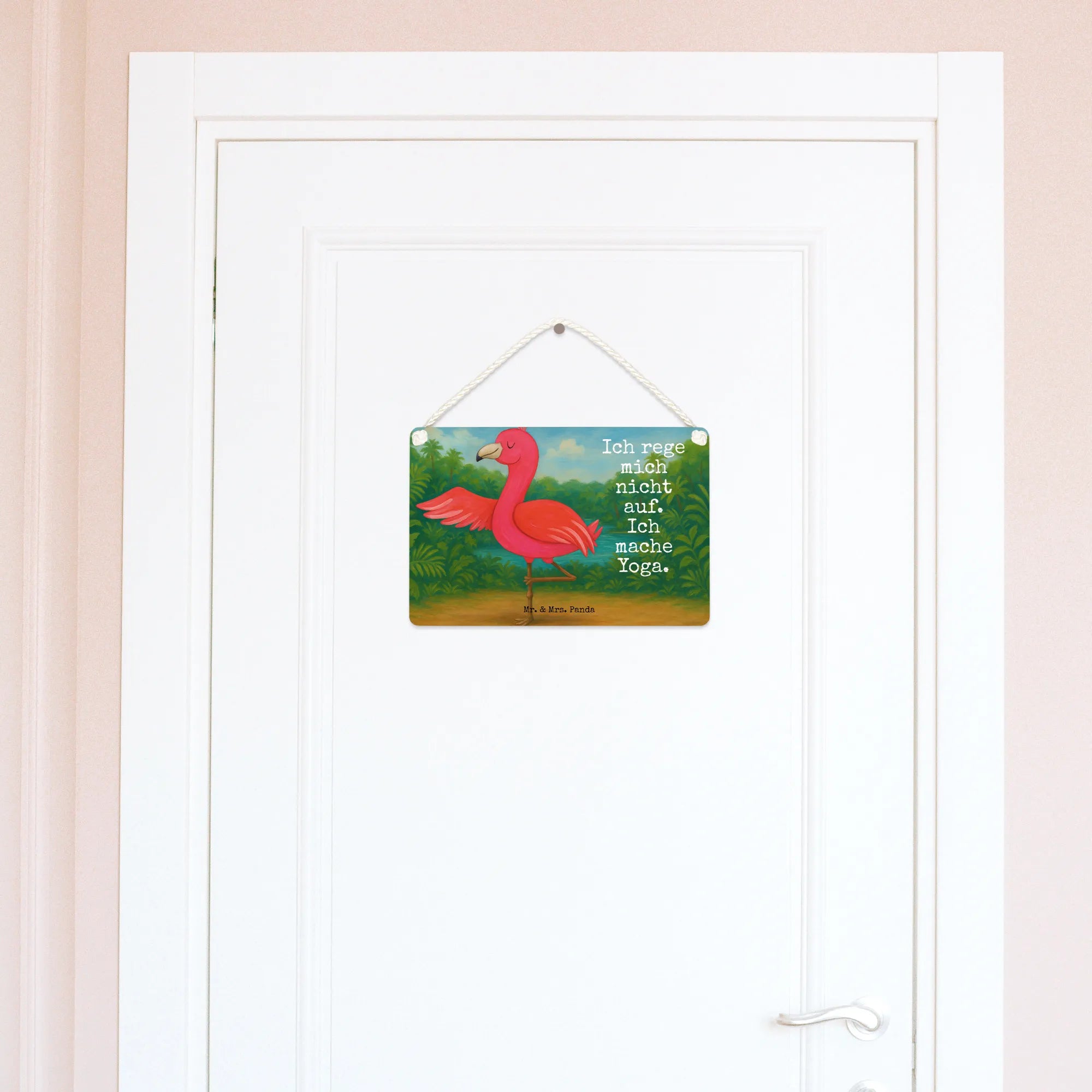Suchst Du ein Geschenk für Yogafreunde, Flamingo-Liebhaber oder eine liebe Freundin? Dieses Spruchschild ist ideal für alle, die Achtsamkeit, Entspannung und eine Prise Sommer lieben. Die gedrehte Kordel zur Aufhängung macht die Montage besonders einfach und dekorativ.