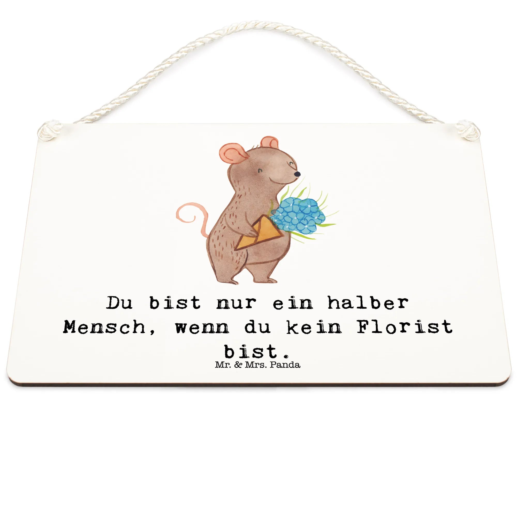 Das wunderschöne Deko-Schild "Florist mit Herz" von Mr. & Mrs. Panda ist das perfekte Geschenk für jeden Blumenliebhaber, Floristen oder einfach für jemanden, der die florale Welt liebt! Mit dem niedlichen Motiv eines kleinen Mäuserichs, der stolz einen großen Strauß Blumen in den Händen hält, zaubert dieses Schild jedem ein Lächeln ins Gesicht. Es trägt den liebevollen Spruch: "Du bist nur ein halber Mensch, wenn du kein Florist bist." Dieses Schild ist nicht nur eine hübsche Dekoration für die Wand oder die Tür, sondern auch eine liebevolle Art, den Beruf des Floristen zu feiern.