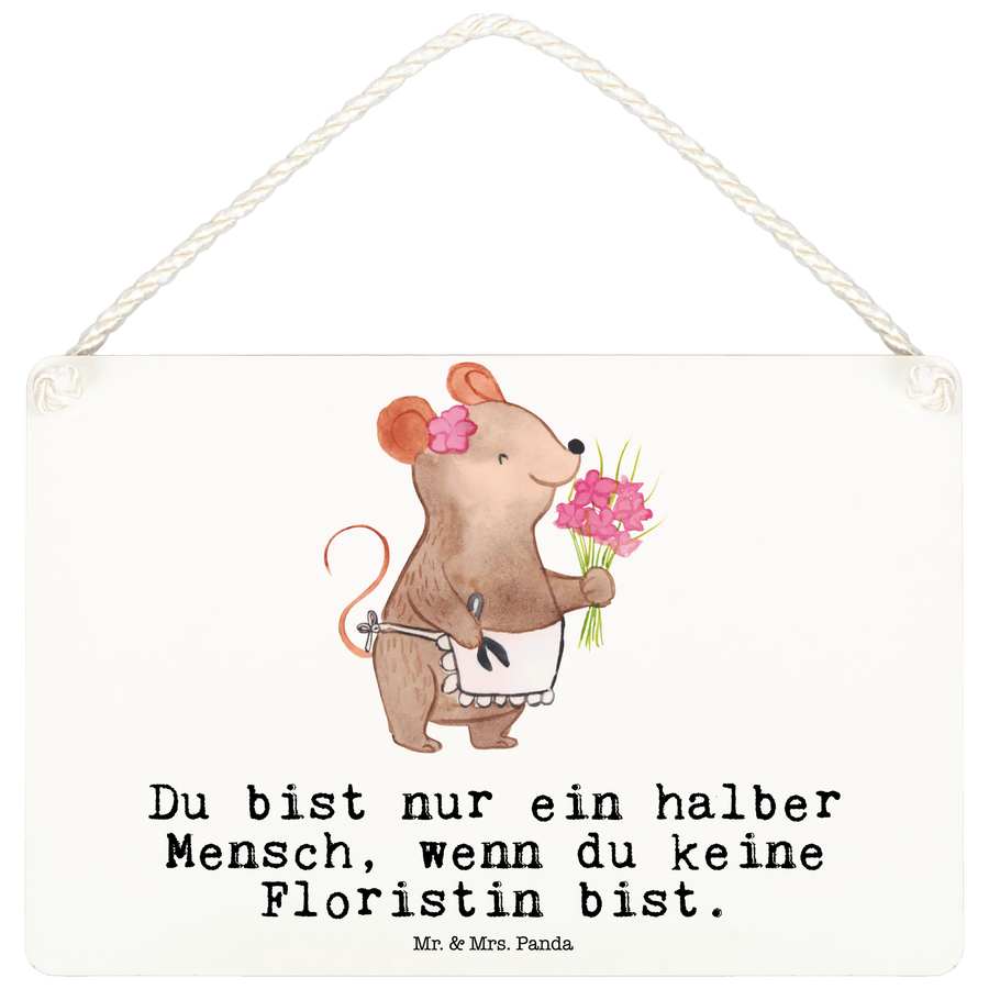 Das Deko Schild "Floristin mit Herz" aus der Berufe Kollektion von Mr. & Mrs. Panda ist das perfekte Geschenk für alle Floristen und Blumenliebhaber. Diese liebevolle Dekoration darf in keinem Blumenladen fehlen und bringt mit ihrem süßen Design Freude in jeden Raum.
