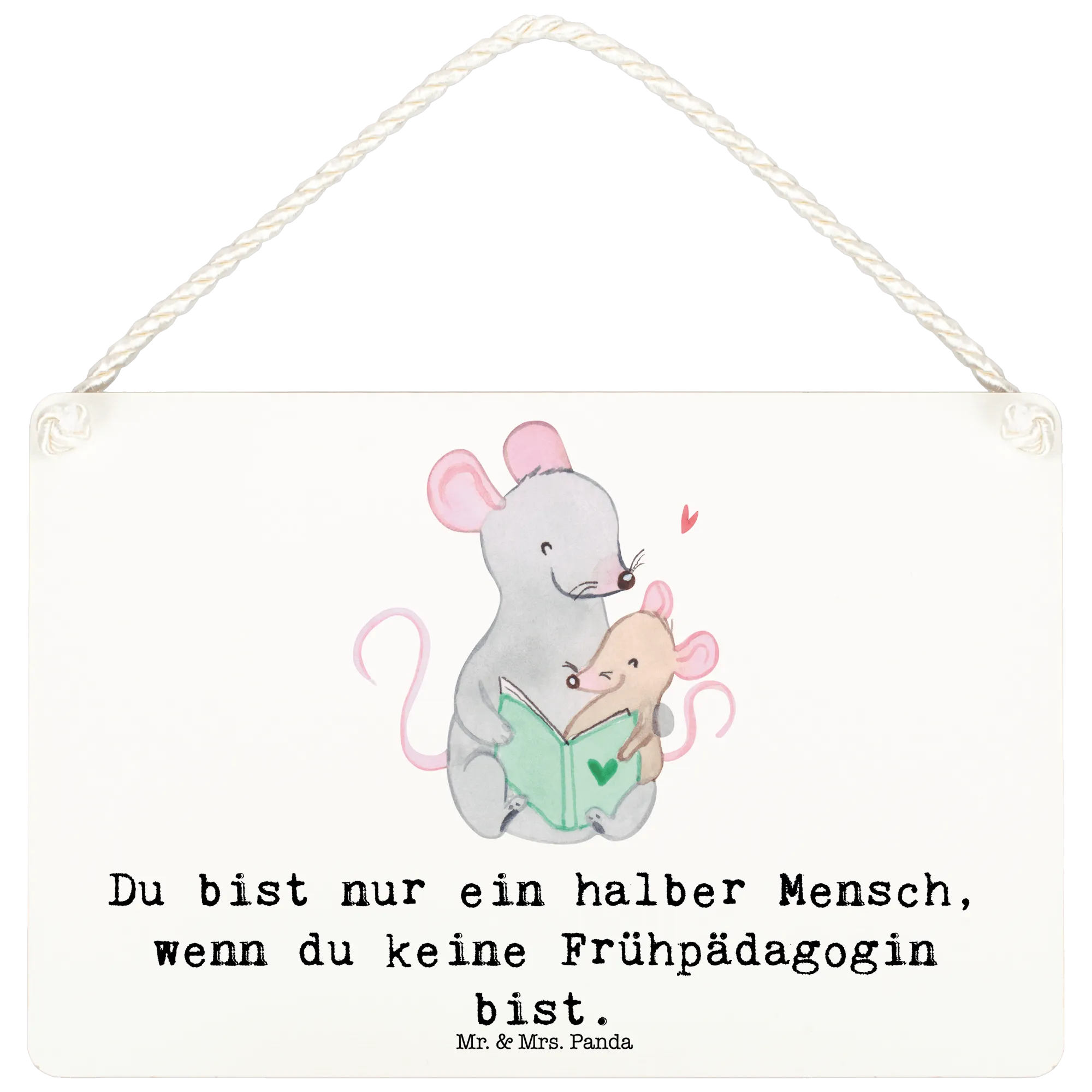 Das Deko Schild "Frühpädagogin mit Herz" von Mr. & Mrs. Panda ist das perfekte Geschenk für alle, die sich mit viel Herz und Engagement der frühkindlichen Bildung widmen. Egal, ob du einer lieben Kollegin oder deinem liebsten Teammitglied ein Dankeschön sagen möchtest, dieses Schild ist eine liebevolle Geste, die Freude bringt. Die süße Grafik zeigt eine niedliche Maus, die einer anderen Maus aus einem Buch vorliest und symbolisiert damit den Beruf der Frühpädagogin. Mit dem herzerwärmenden Slogan "Du bist nur ein halber Mensch, wenn du keine Frühpädagogin bist" wird jeder Beschenkte sich sofort wertgeschätzt fühlen.