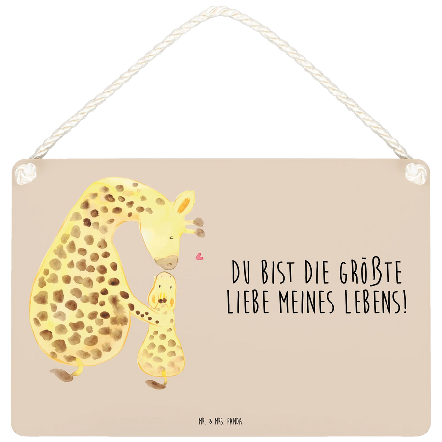 Das Deko Schild "Giraffe mit Kind" aus der Afrika Kollektion von Mr. & Mrs. Panda ist das perfekte Geschenk für alle, die das Besondere lieben. Es zeigt eine süße Giraffe, die ihr kleines Giraffenbaby liebevoll auf den Kopf küsst. Damit wird nicht nur jede Wand zum Blickfang, sondern es bringt auch eine Portion Liebe und Freude in dein Zuhause!