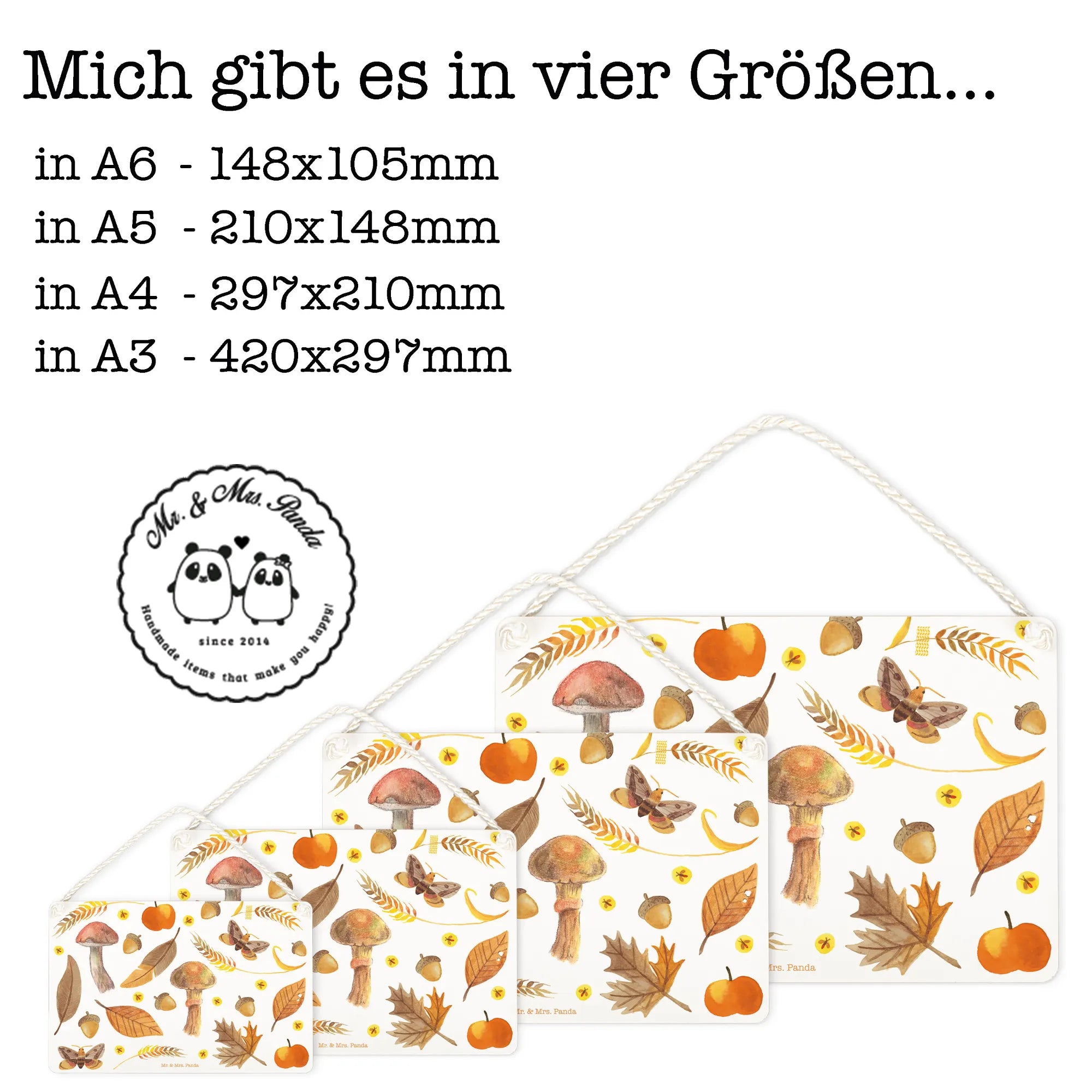 Ein zauberhaftes Deko Schild Herbst von Mr. & Mrs. Panda 🍂🍁 – Aus der liebevollen Collection Wild & Free bringt dieses Dekoschild das goldene Farbenspiel des Herbstes direkt zu dir nach Hause. Das von Mrs. Panda handgezeichnete Motiv zeigt herbstliche Blätter, einzelne Pilze und die warme Stimmung der Monate September, Oktober und November.
