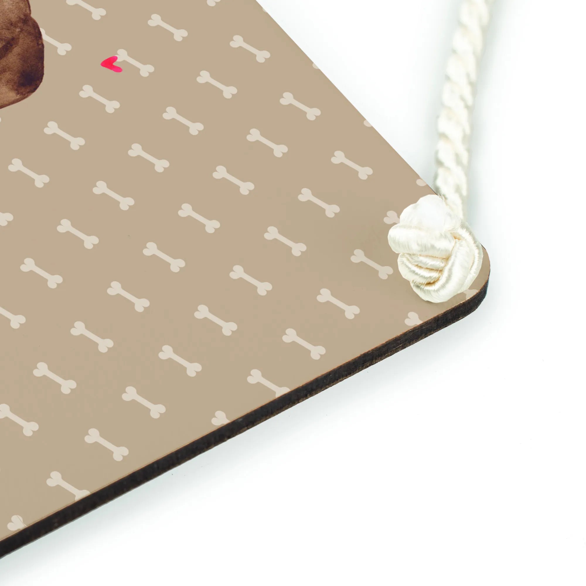 Die Deko ist aus widerstandsfähigem Material gefertigt und die Oberfläche ist beschichtet, um die Lebensdauer zu verlängern. Das hübsche Schild hat eine gedrehte Kordel zur Aufhängung, sodass es im Handumdrehen bewundert werden kann. Es eignet sich hervorragend als Geschenk zu zahlreichen Anlässen: Geburtstage, Einweihungspartys oder einfach als kleine Aufmerksamkeit für Freunde und Familienmitglieder, die Hunde lieben.
