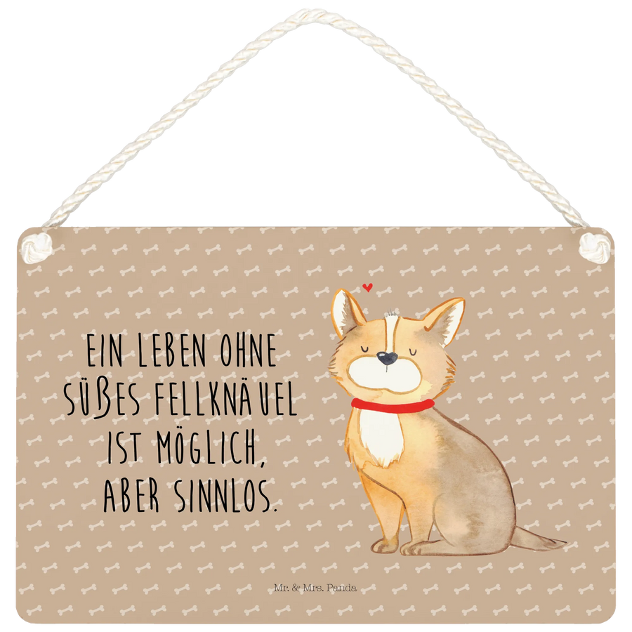 Das Deko Schild mit dem Motto Hundeglück von Mr. & Mrs. Panda ist mehr als nur eine einfache Wand- oder Türdekoration – es ist ein Ausdruck der liebevollen Beziehung zwischen dir und deinem vierbeinigen Freund! Stell dir vor, wie der süße Corgie mit seinem roten Halsband auf dem Schild fröhlich sitzt und dir jeden Tag ein Lächeln ins Gesicht zaubert.