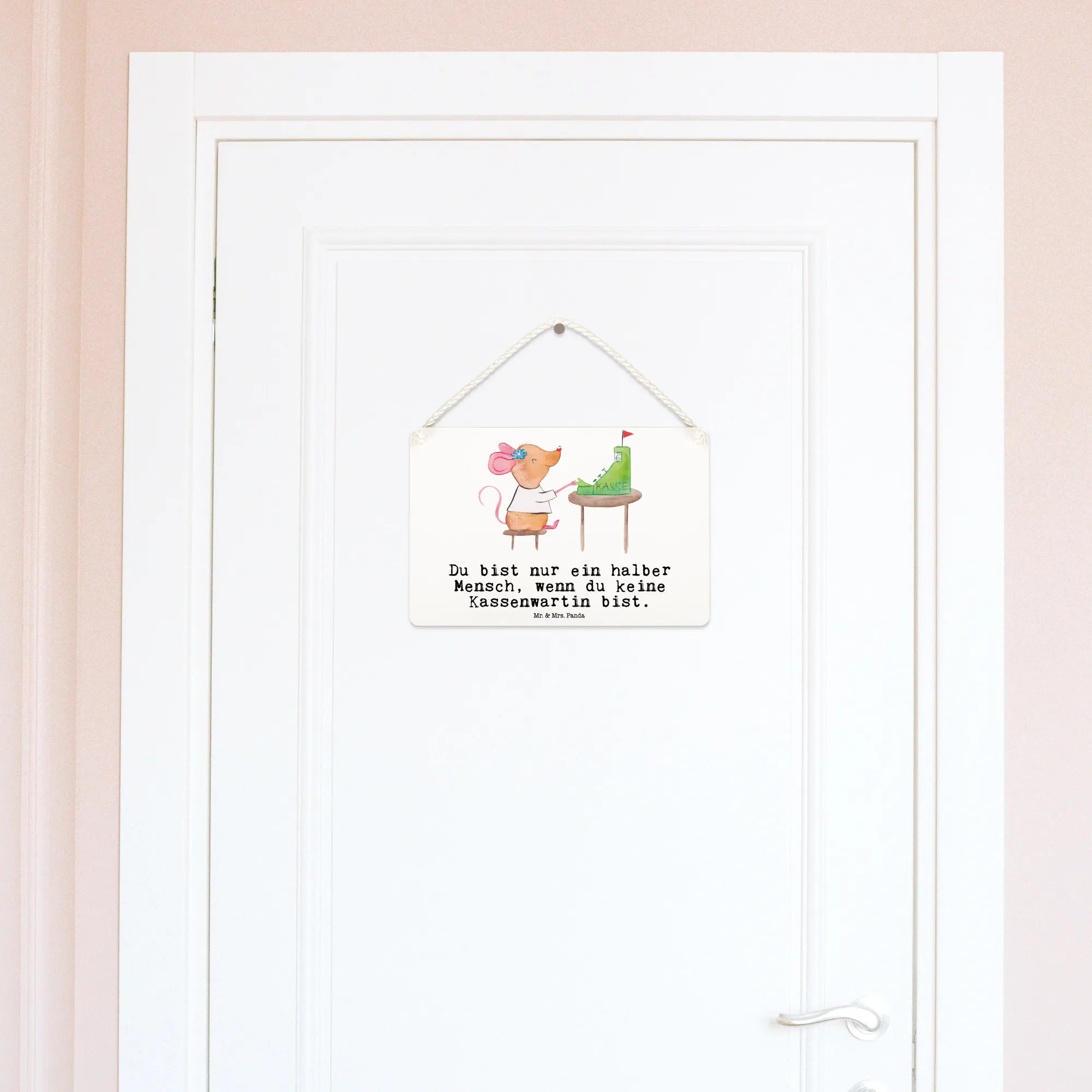 Mit diesem liebevoll gestalteten Holzschild zeigst du deine Wertschätzung für ihre Arbeit und ihren Einsatz. Das Schild ist aus widerstandsfähigem Material gefertigt und ist nicht nur robust, sondern auch ästhetisch ansprechend. Das niedliche Motiv – ein Bär mit einem Geldsack in der Hand – zusammen mit dem Spruch "Du bist nur ein halber Mensch, wenn du keine Kassenwartin bist" bringt ein Lächeln in jedes Gesicht und sorgt dafür, dass die Kassenwartin sich ganz besonders fühlt.