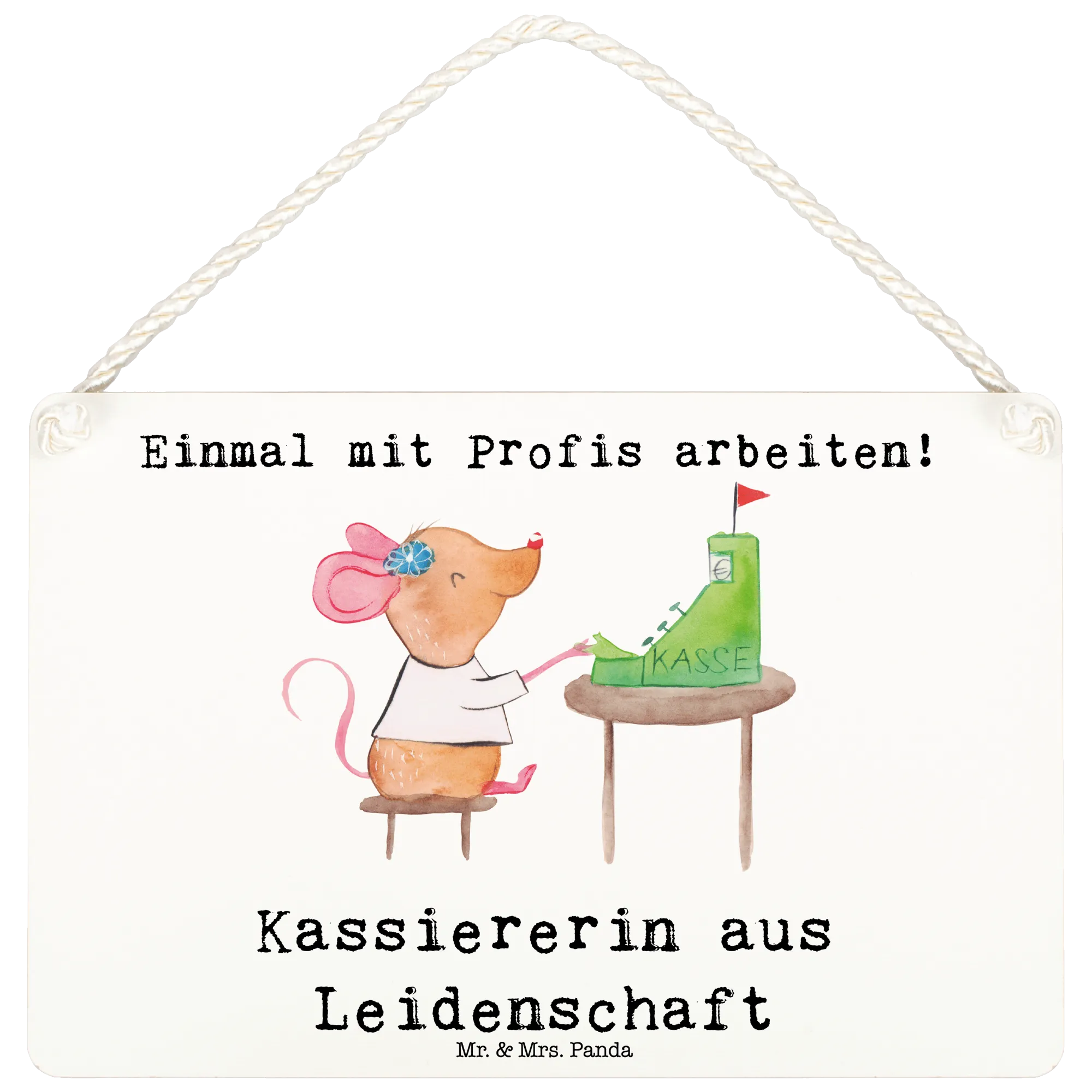 Das wunderschöne Deko Schild "Kassiererin aus Leidenschaft" von Mr. & Mrs. Panda ist das perfekte Geschenk für all die fleißigen Kassiererinnen, die mit viel Herz und Leidenschaft ihren Job ausüben. Ob zum Jobbeginn, zum Jubiläum oder als liebevolles Dankeschön zum Ruhestand – dieses Schild bringt garantiert ein Lächeln ins Gesicht! Das Motiv zeigt eine süße, fleißige Maus, die liebevoll mit Ihrer Arbeit am Kassenband beschäftigt ist. Das Deko Schild ist nicht nur eine tolle Wanddeko, sondern macht sich auch hervorragend als Türschild.