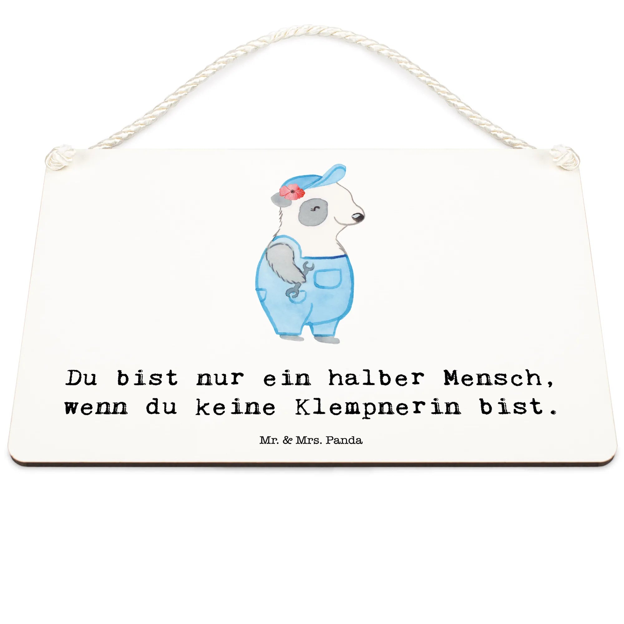 Gefertigt aus beschichteter Holzfaser in der Größe DIN A6, ist es perfekt geeignet, um entweder an der Wand oder an der Tür aufgehängt zu werden. Sein süßes Design zeigt eine kleine Bärendame mit einem Pümpel in der Hand und einer Zange in der anderen. Umrahmt von einem herzlichen Spruch, der besagt: „Du bist nur ein halber Mensch, wenn du keine Klempnerin bist.“, ist es eine liebevolle Erinnerung an das, was diesen Beruf ausmacht.