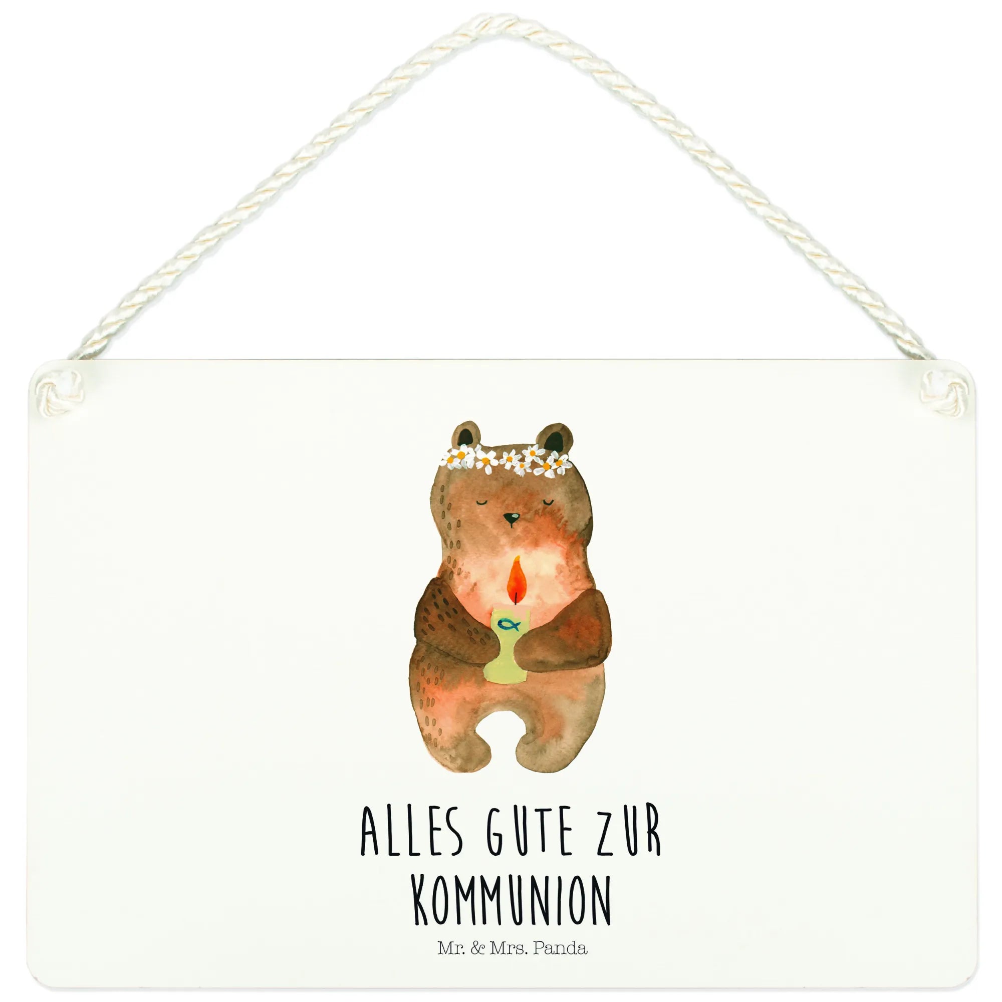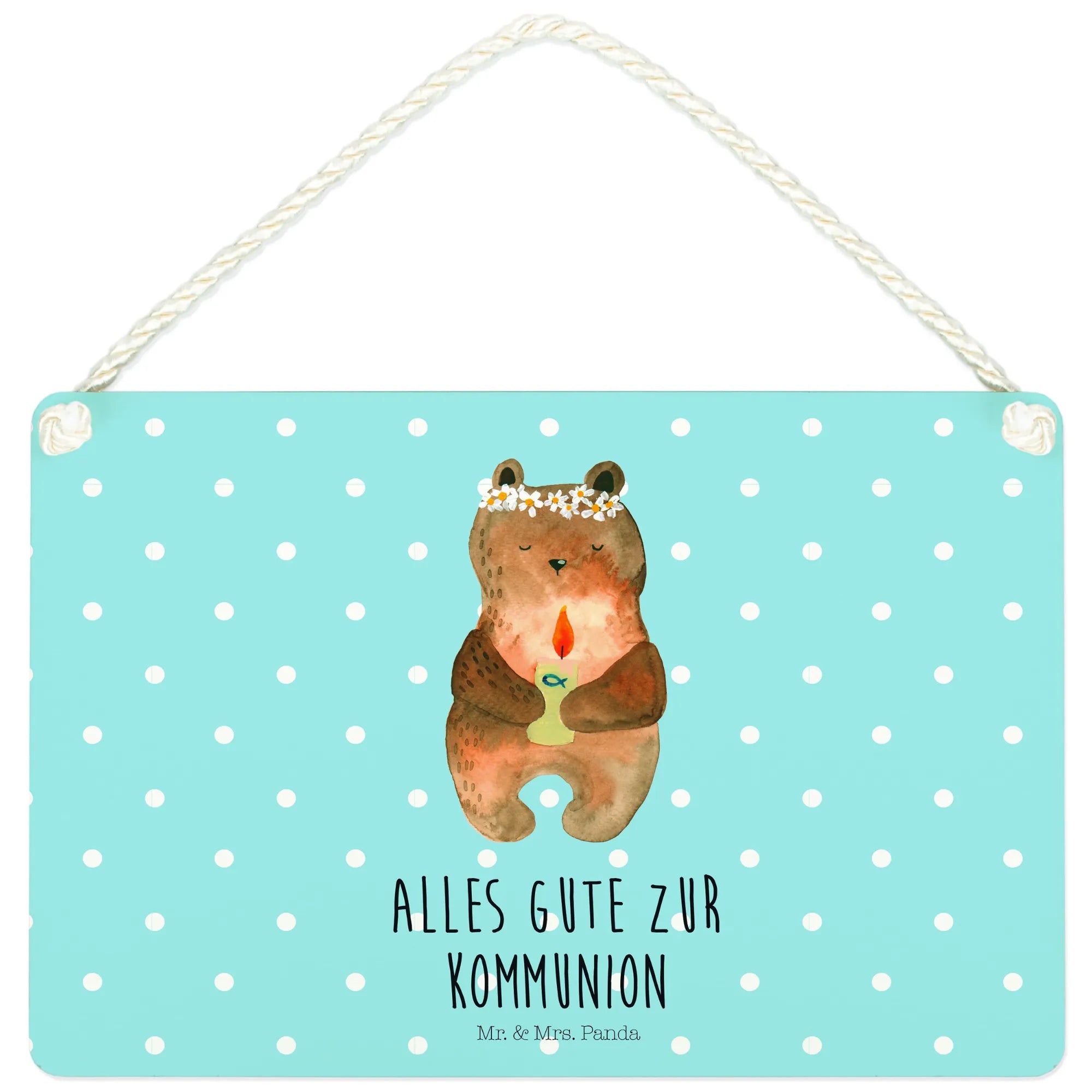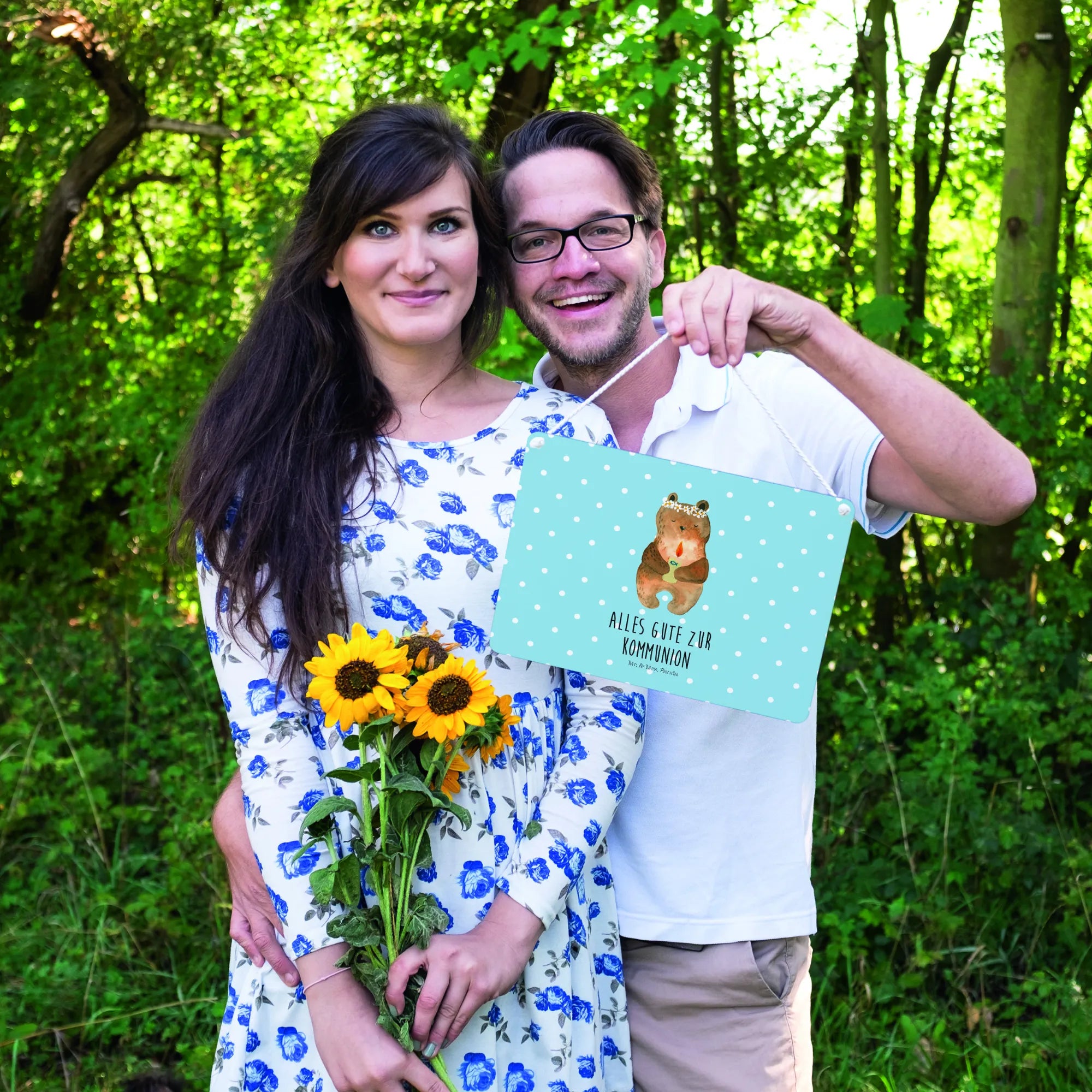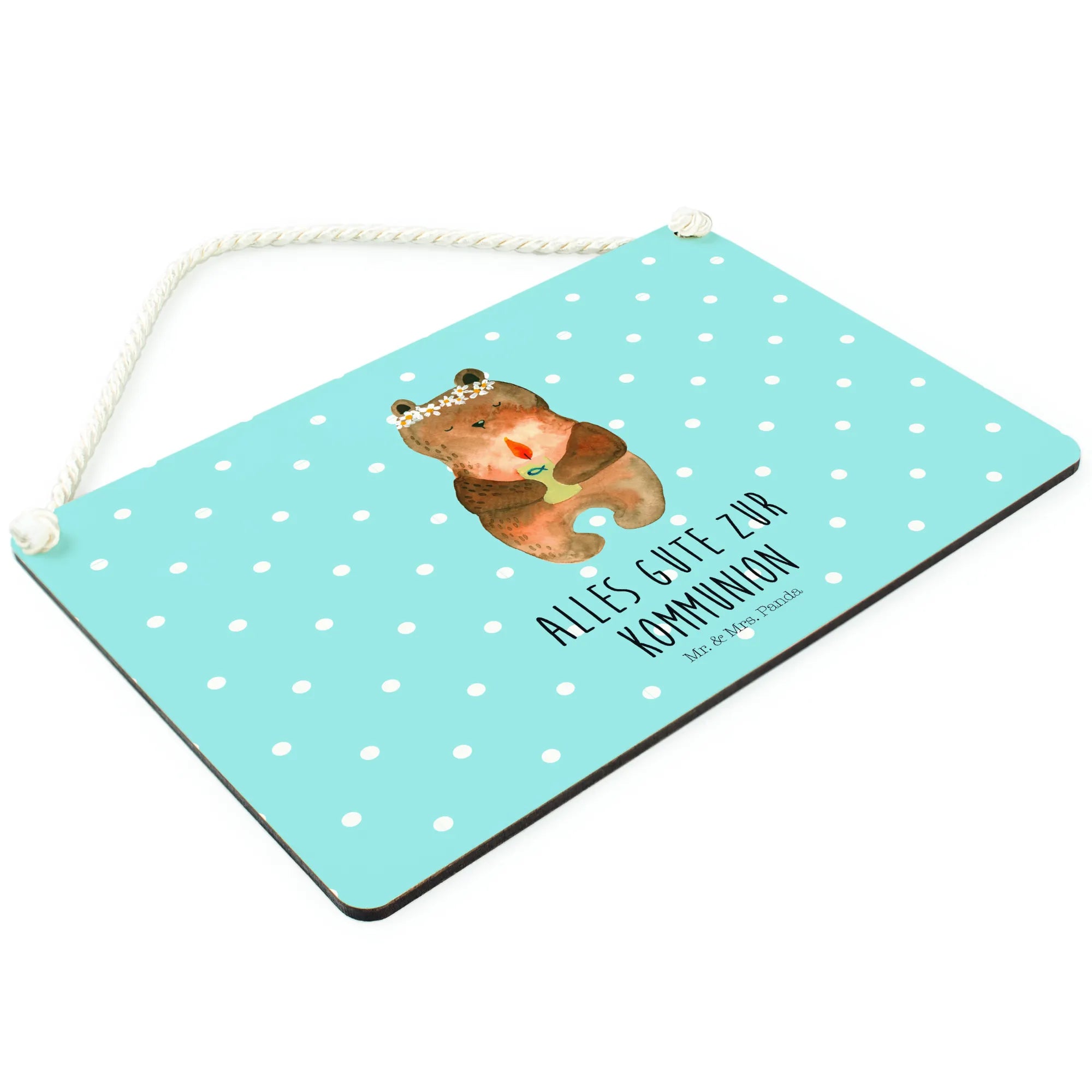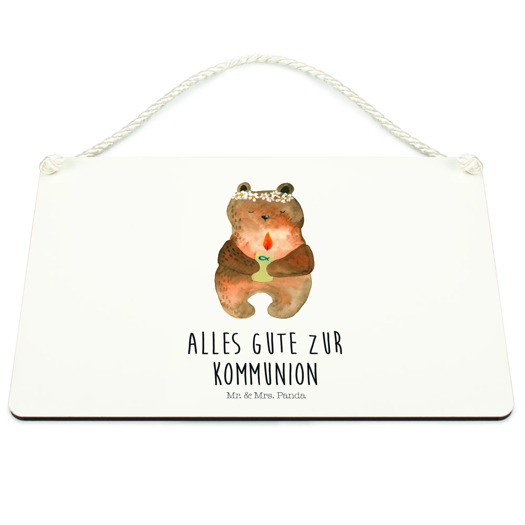 Das Deko Schild "Kommunion-Bär" von Mr. & Mrs. Panda ist das perfekte Geschenk für jeden, der einen besonderen Anlass wie die Kommunion feiert. Ob für dein eigenes Kind oder als liebevolle Geste für einen Freund - dieses Schild wird garantiert Freude bereiten.