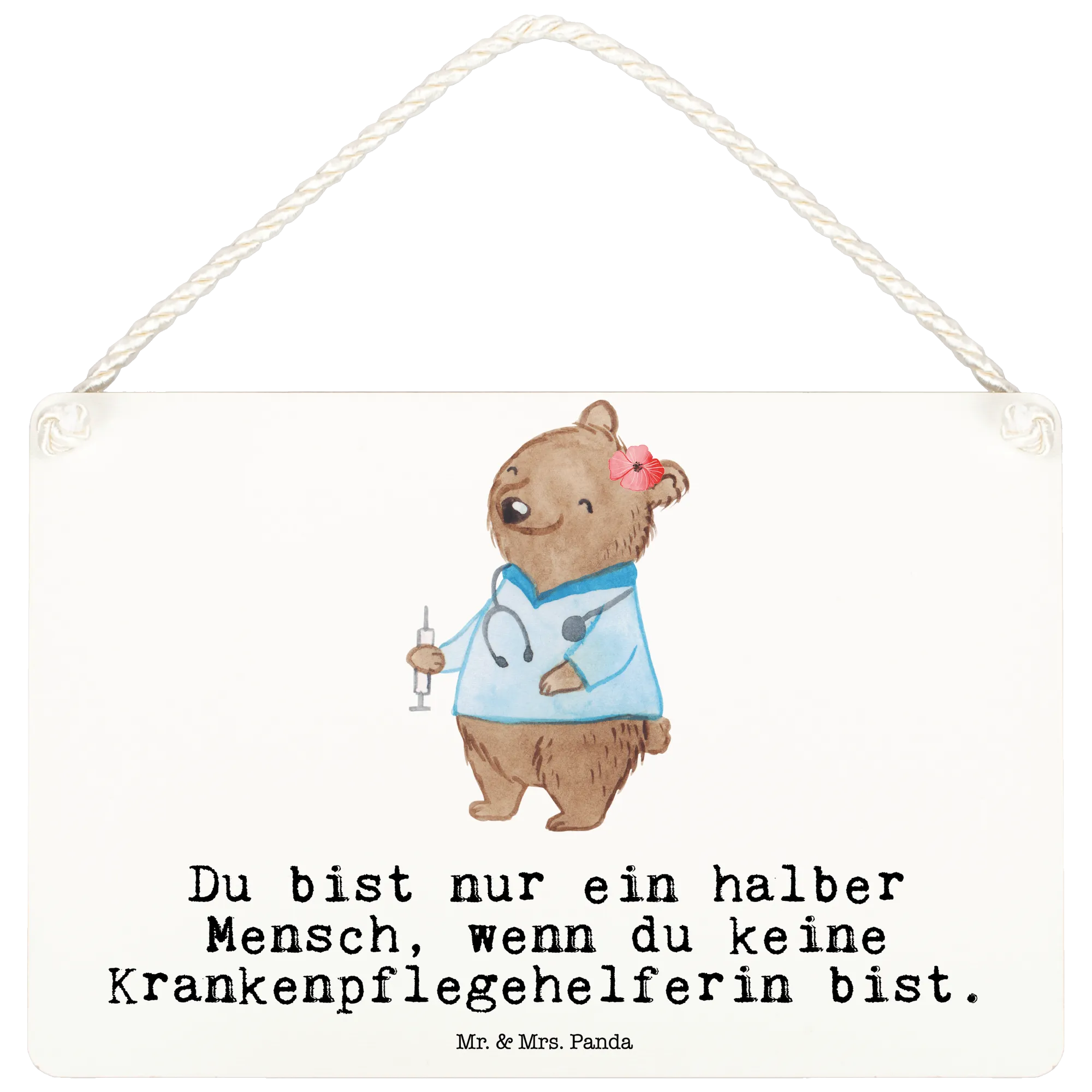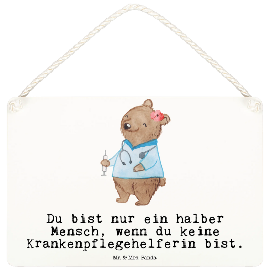 Das wunderschöne Deko Schild "Krankenpflegehelferin mit Herz" von Mr. & Mrs. Panda ist das perfekte Geschenk für alle, die in der Pflege tätig sind oder gerade ihre Ausbildung abgeschlossen haben. Dieses liebevoll gestaltete Schild ist nicht nur eine tolle Dekoration für die Wand oder die Tür, sondern auch ein liebevoller Wegweiser, der zeigt, wie wichtig der Beruf von Pflegekräften ist. Mit dem herzerwärmenden Motiv einer kleinen Bärendame, die eine Spritze in der Hand hält, und dem Spruch "Du bist nur ein halber Mensch, wenn du keine Krankenpflegehelferin bist." bringt dieses Holzschild Freude und Dankbarkeit in jeden Raum.