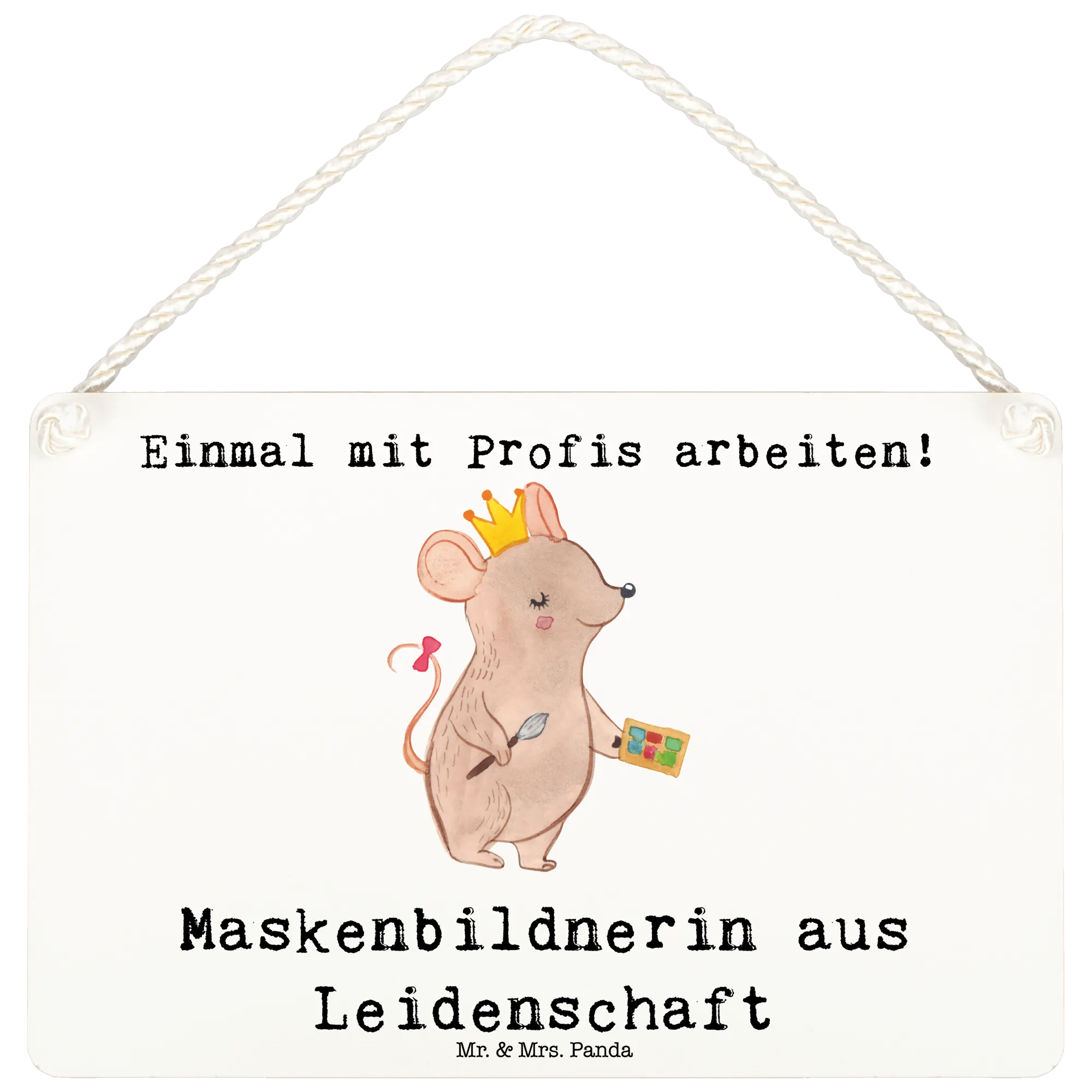 Das Schild wurde mit viel Liebe von Mr. & Mrs. Panda designt und zeigt eine süße Maus mit einer Krone, einem Pinsel in der Hand und strahlendem Lidschatten. Mit dem Spruch "Maskenbildnerin aus Leidenschaft" bringt es die Leidenschaft und Hingabe zum Ausdruck, die Maskenbildner in ihren Berufen investiert. Zudem ist es eine tolle Möglichkeit, die eigenen Fähigkeiten und die kreative Ader zu betonen!