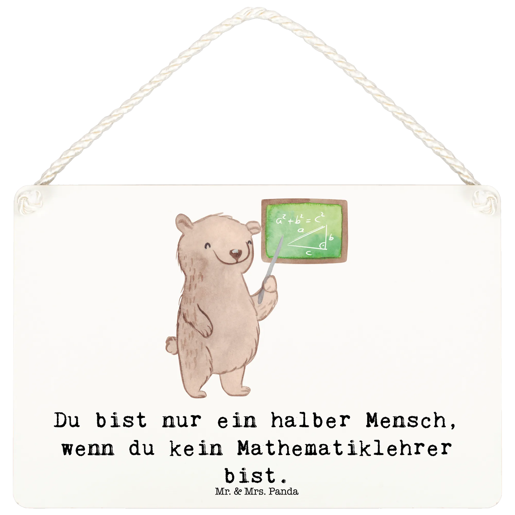 Das Deko Schild 'Mathematiklehrer mit Herz' von Mr. & Mrs. Panda ist das perfekte Geschenk für alle, die im Lehramt tätig sind oder gerade eine Ausbildung zum Mathematiklehrer absolvieren. Ob zum Studienbeginn, zur Abschlussprüfung oder während des Referendariats, dieses wunderschöne Holzschild wird nicht nur die Wände zum Strahlen bringen, sondern auch die Herzen aller Mathelehrer höher schlagen lassen. Mit dem liebevollen Motiv, das einen süßen Bären zeigt, der vor einer Tafel steht und eine Berechnung durchführt, bringt es die Leidenschaft für Mathematik in jedes Klassenzimmer oder Büro.