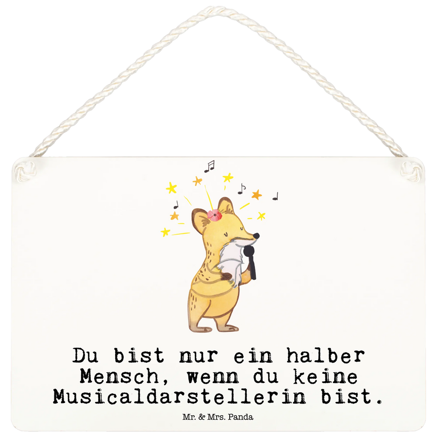 Das Deko Schild misst im DIN A6 Format und ist aus hochwertigem, beschichtetem MDF gefertigt, was für eine lange Lebensdauer sorgt. Mit der hübschen Kordel kannst du es ganz einfach aufhängen, um es in deiner Wohnung oder im Büro zur Schau zu stellen. Es eignet sich sowohl als Deko für die Wand als auch als Türschild. Seine verspielte Gestaltung zieht alle Blicke an und lässt das Herz jeder Musicaldarstellerin höher schlagen.