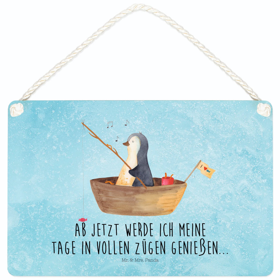 Deko Schild Pinguin Angelboot - mit Spruch - Eisblau