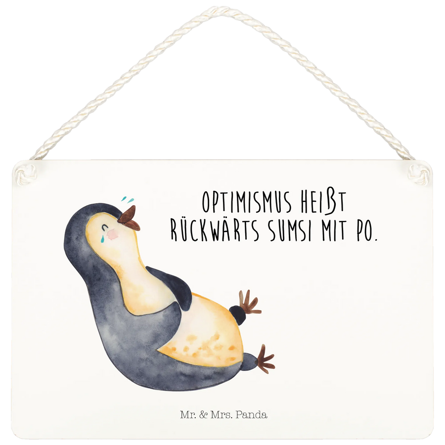 Mit seinem fröhlichen Pinguin-Motiv und dem witzigen Spruch "Optimismus heißt rückwärts: Sumsi mit Po" zaubert es dir garantiert ein Lächeln ins Gesicht. Gefertigt aus hochwertiger, beschichteter Holzfaser, ist das Schild äußerst langlebig und perfekt für die Wand- oder Türdekoration geeignet.