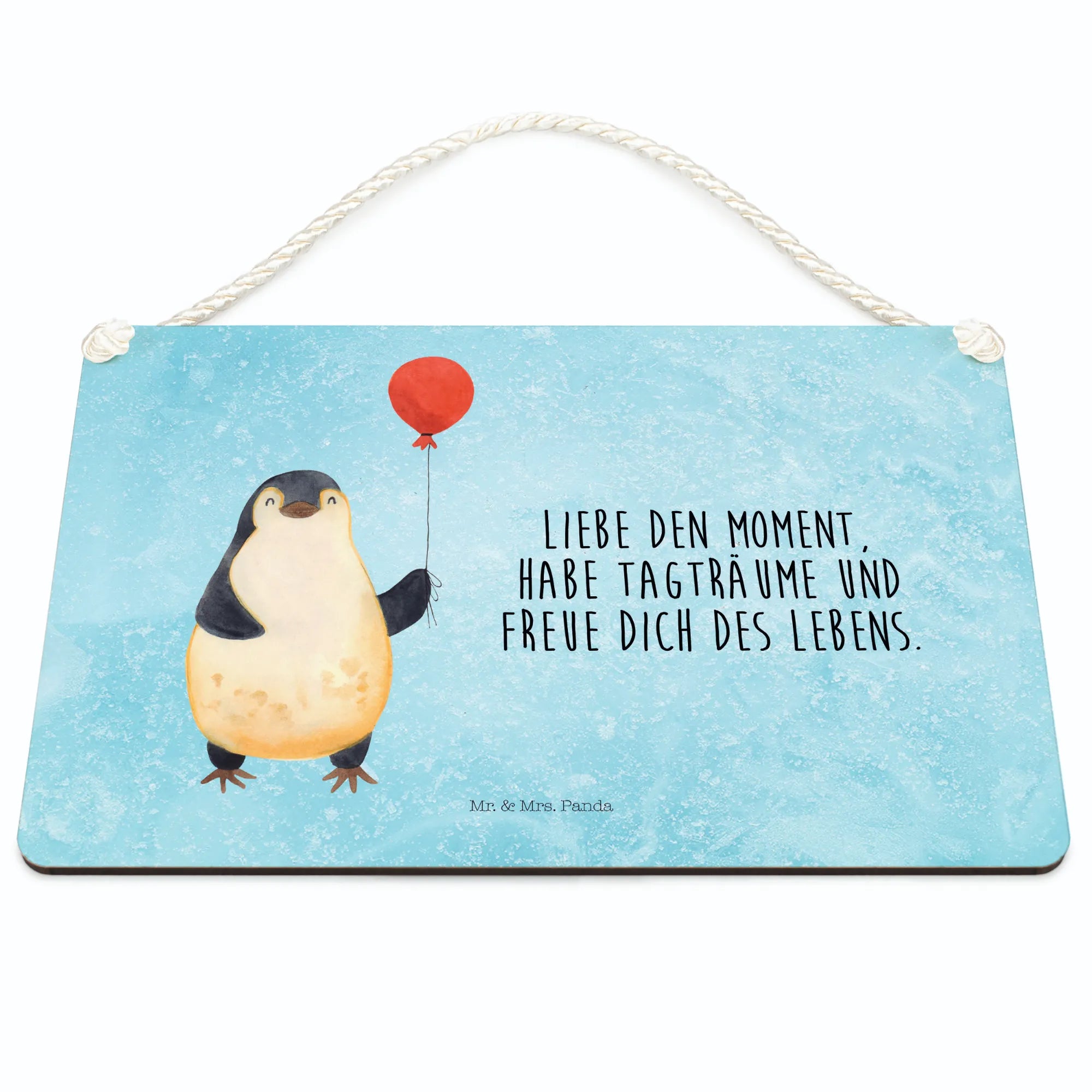 Deko Schild Pinguin Luftballon - mit Spruch - Eisblau