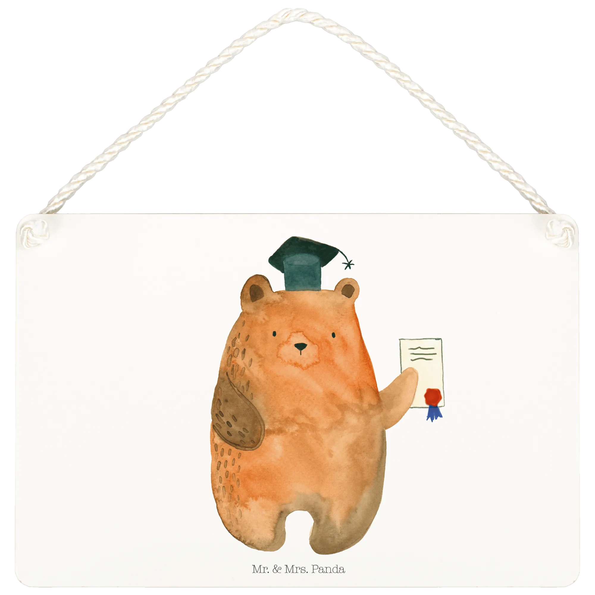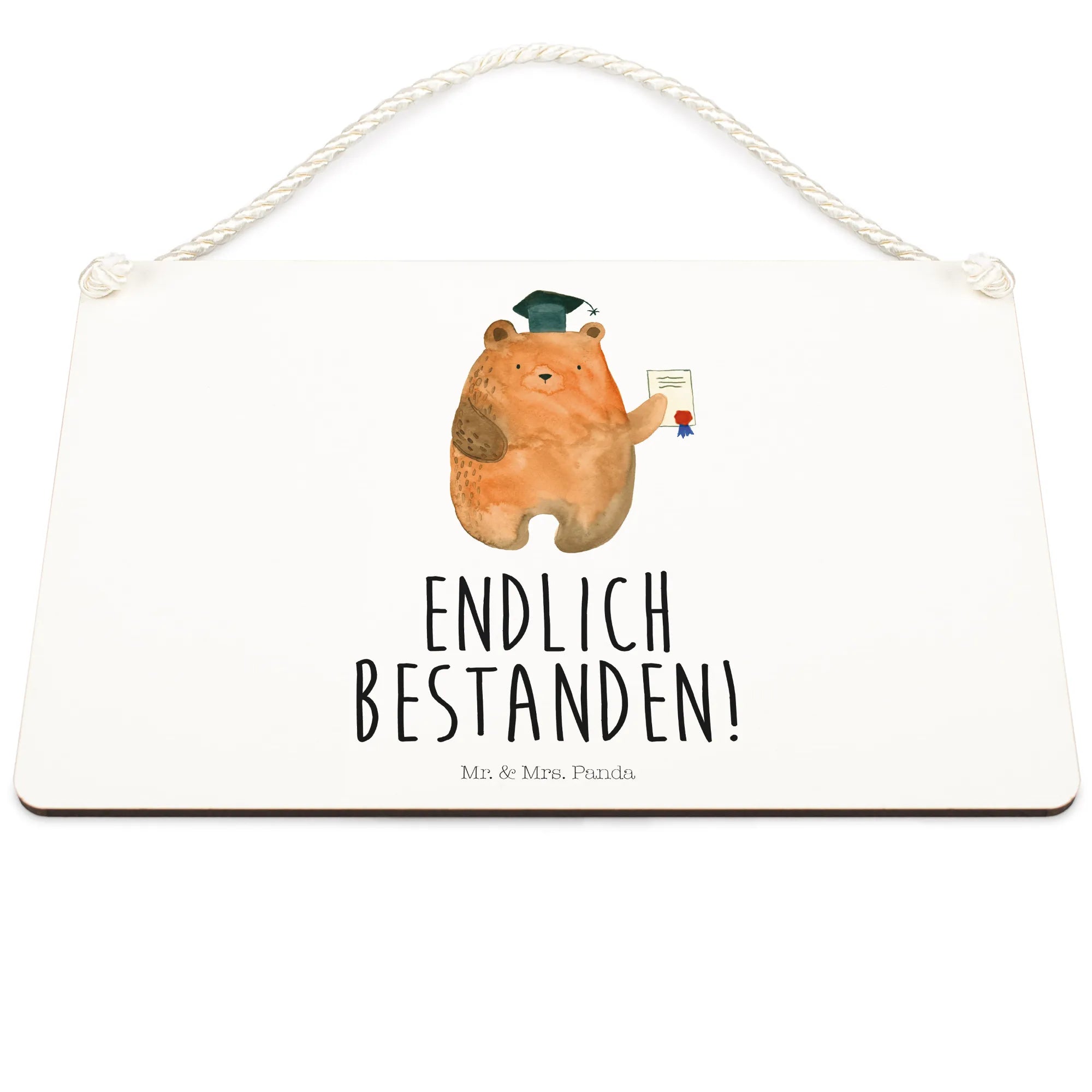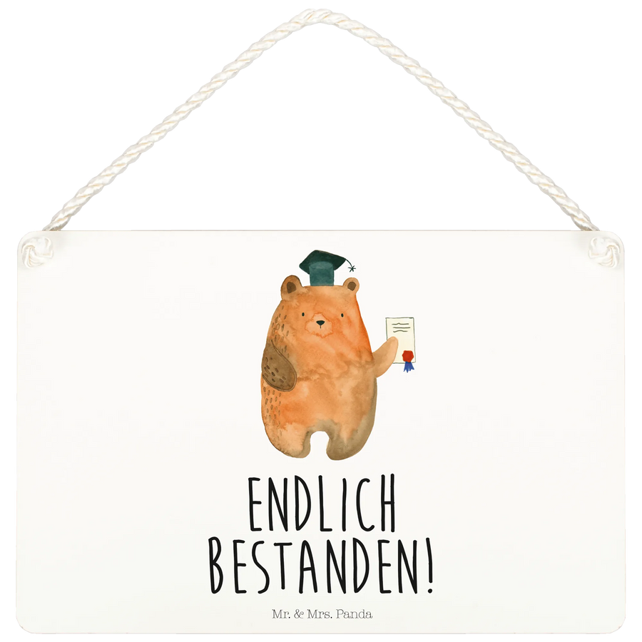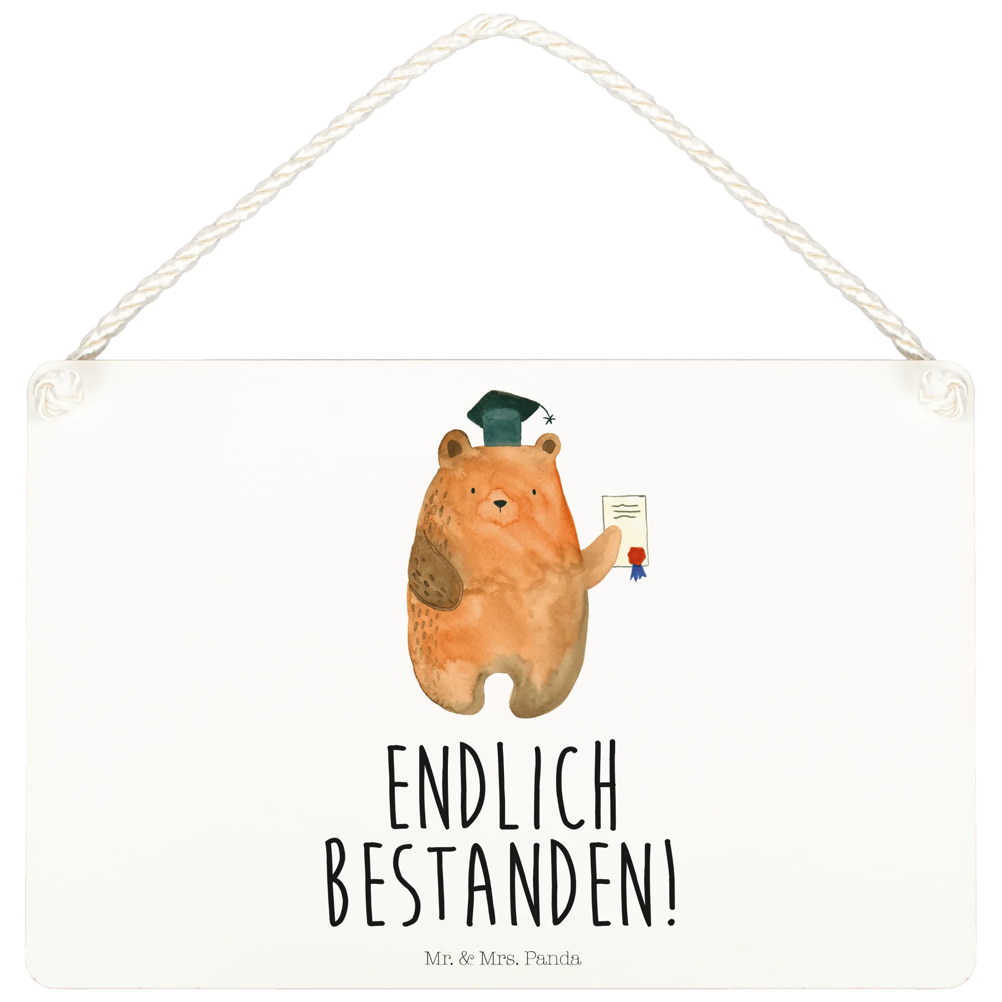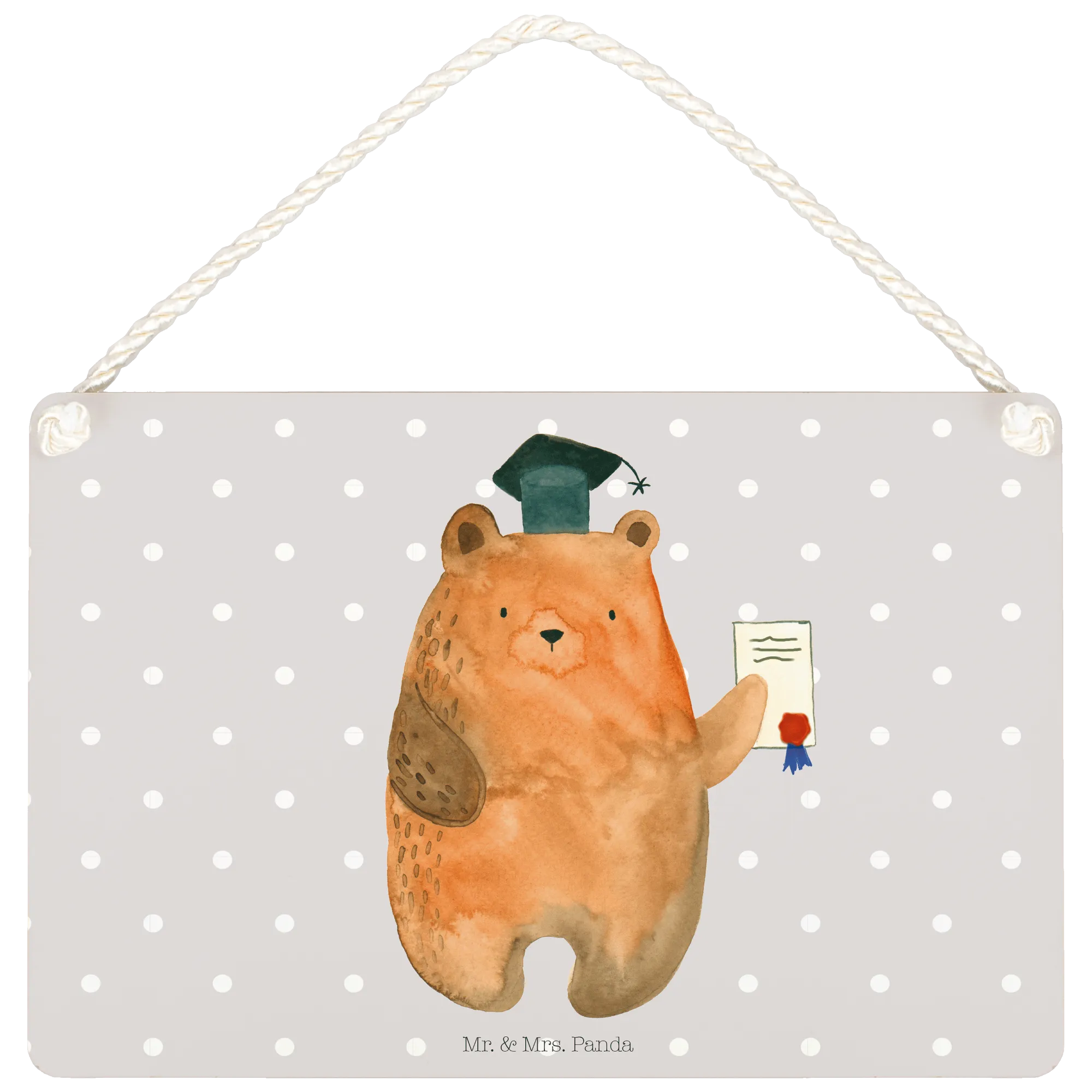 Deko Schild, Prüfungsbär von Mr. & Mrs. Panda wird garantiert der Hit bei jeder Feier! Gedruckt in frischem Pastellgrau passt es in jedes Zuhause und verleiht deinen Wänden einen Hauch von Niedlichkeit und Freude.