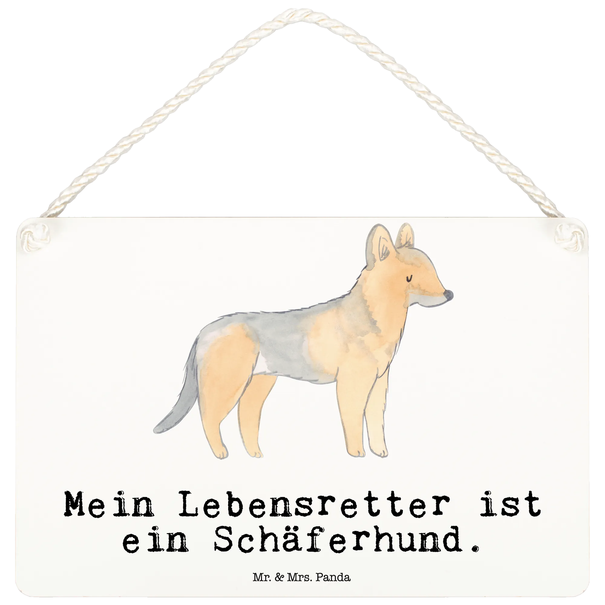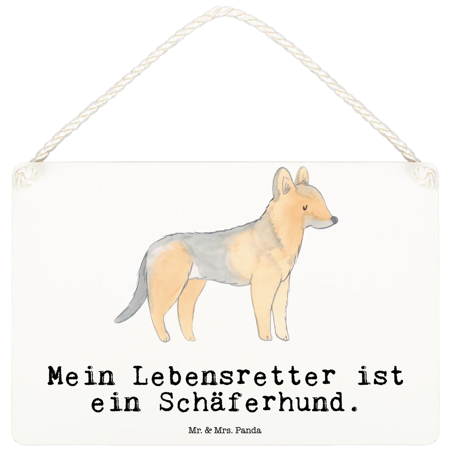 Ein wunderschönes und edles Deko Schild von Mr. & Mrs. Panda, perfekt für alle Schäferhundliebhaber! Es vermittelt mit dem Spruch "Mein Lebensretter ist ein Schäferhund." die unvergleichliche Bindung zwischen dir und deinem vierbeinigen Freund. Dieses charmante Holzschild ist mehr als nur eine Dekoration – es ist ein Ausdruck deiner Liebe zu deinem treuen Begleiter.