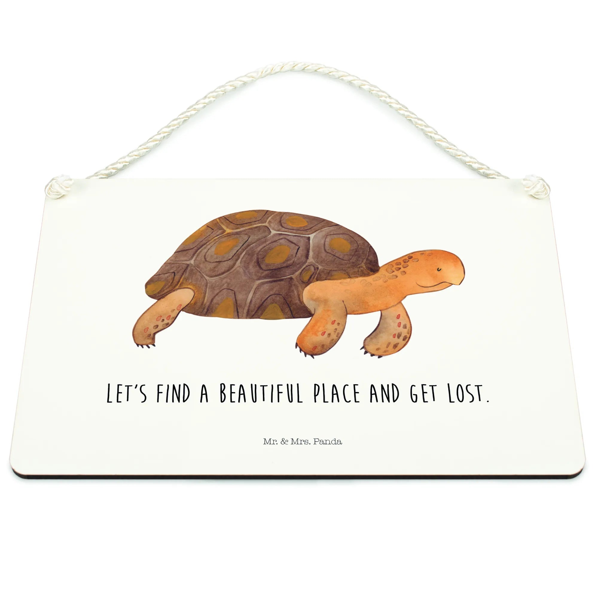 Entdecke das bezaubernde Deko Schild "Schildkröte marschiert" aus der Meerestiere Kollektion von Mr. & Mrs. Panda! Dieses wunderschöne Holzschild ist die perfekte Dekoration für dein Zuhause und bringt mit seinem süßen Motiv einen Hauch von Abenteuer und Reiselust in jeden Raum.