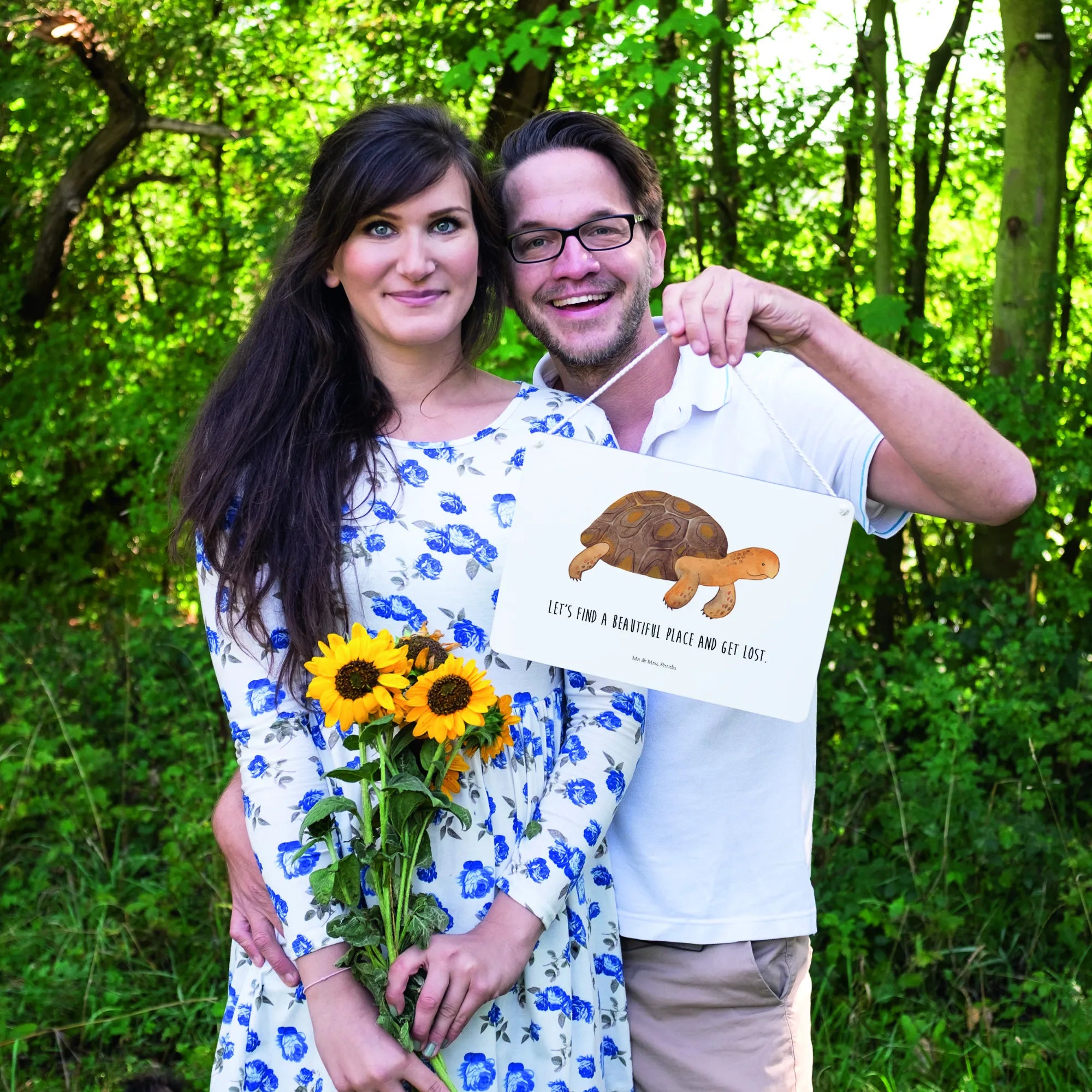Mit dem charmanten Spruch „Let's find a beautiful place and get lost.” lädt es dich ein, die Seele baumeln zu lassen und die Schönheit des Lebens zu erkunden. Die liebevoll gestaltete Schildkröte, mit ihrem runden Panzer und dem freundlichen Lächeln, strahlt eine beruhigende Gelassenheit aus, die jedem Raum eine angenehme Atmosphäre verleiht.