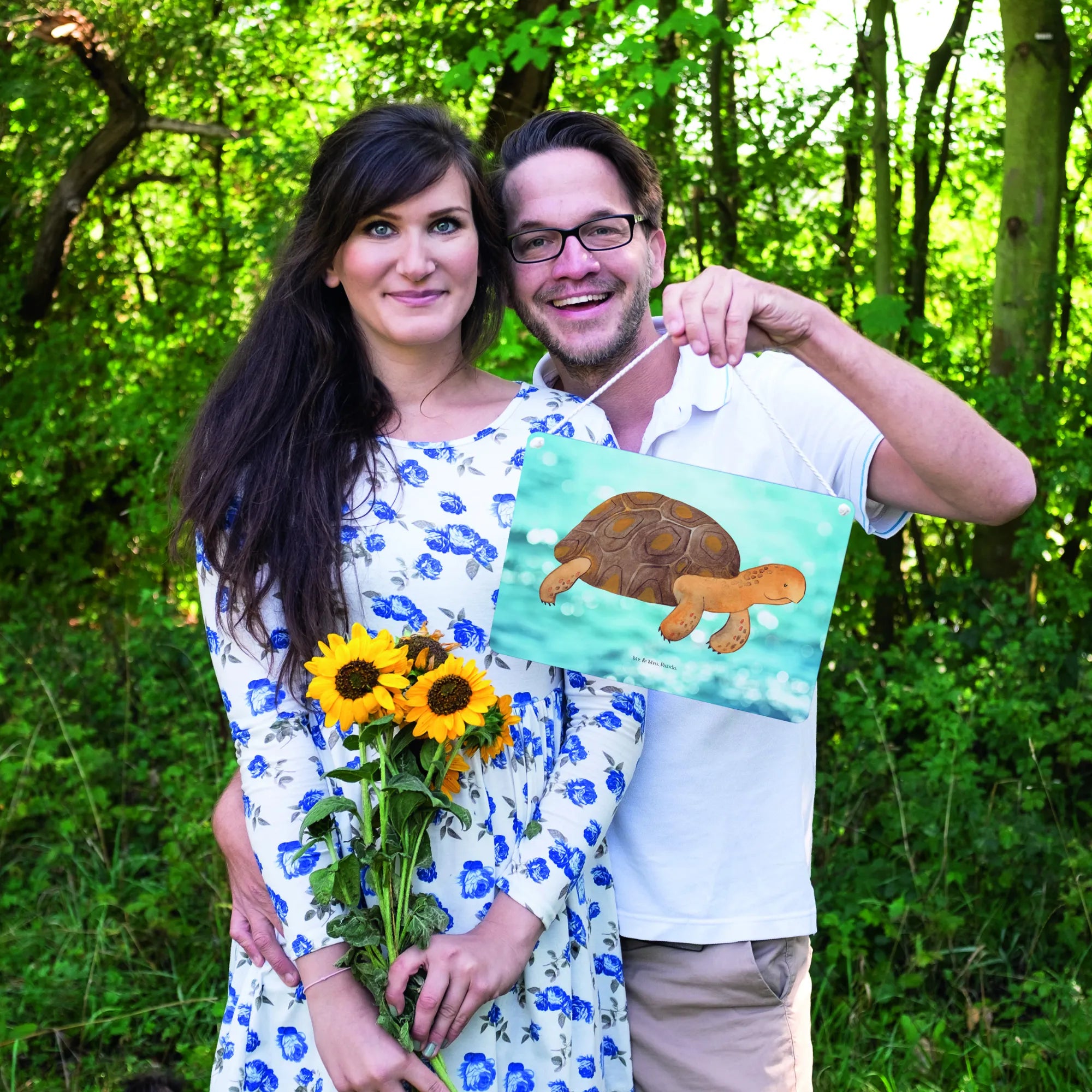 Das Deko Schild "Schildkröte marschiert" von Mr. & Mrs. Panda ist das perfekte Geschenk für alle, die die Ruhe und Gelassenheit des Lebens lieben! Mit seinem liebevoll handgezeichneten Motiv einer Schildkröte, die in sanften Farben das Meer repräsentiert, verleiht dieses Schild jedem Raum eine entspannte und inspirierende Atmosphäre.