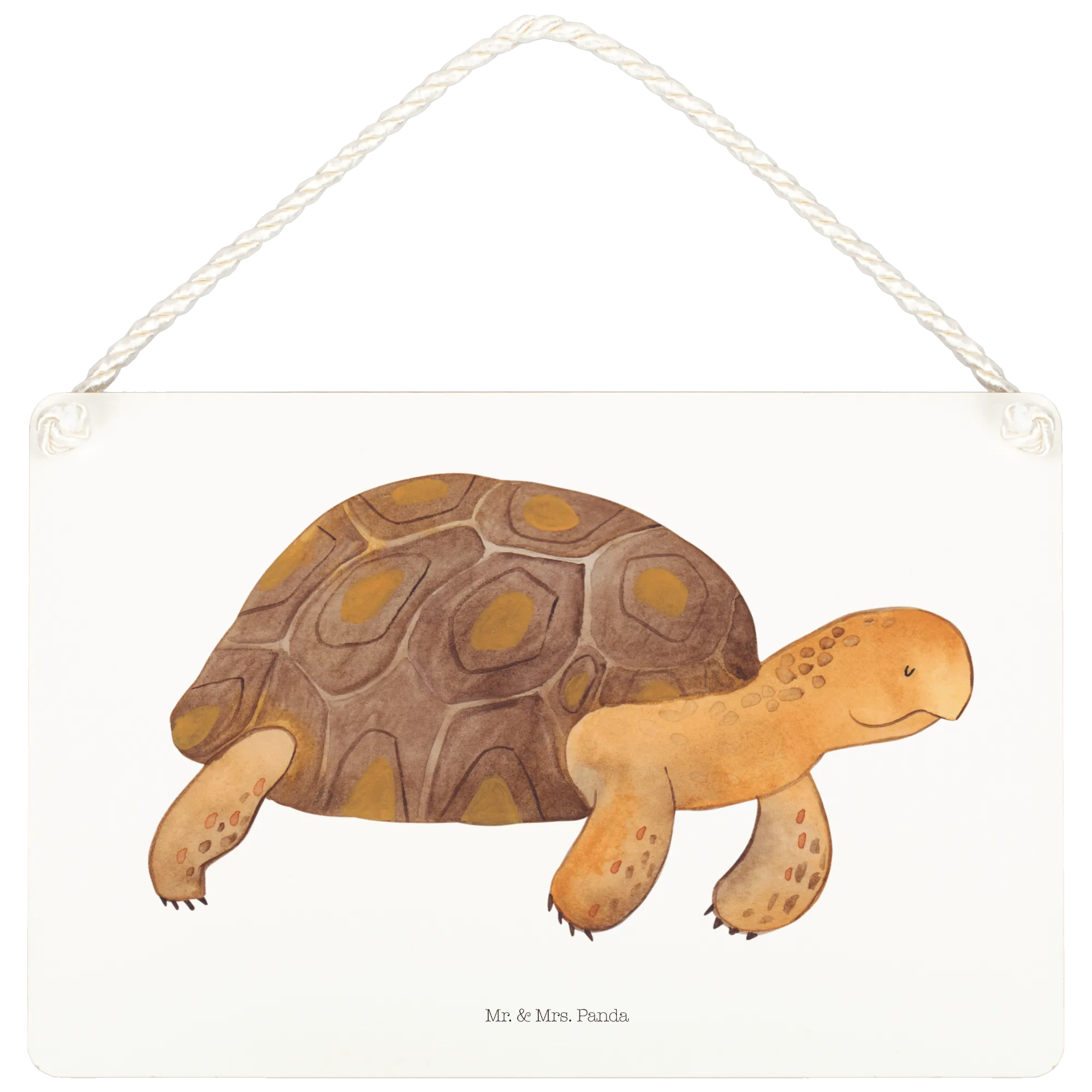 Deko Schild Schildkröte Marschieren - DIN A5 - mit Spruch - Weiß