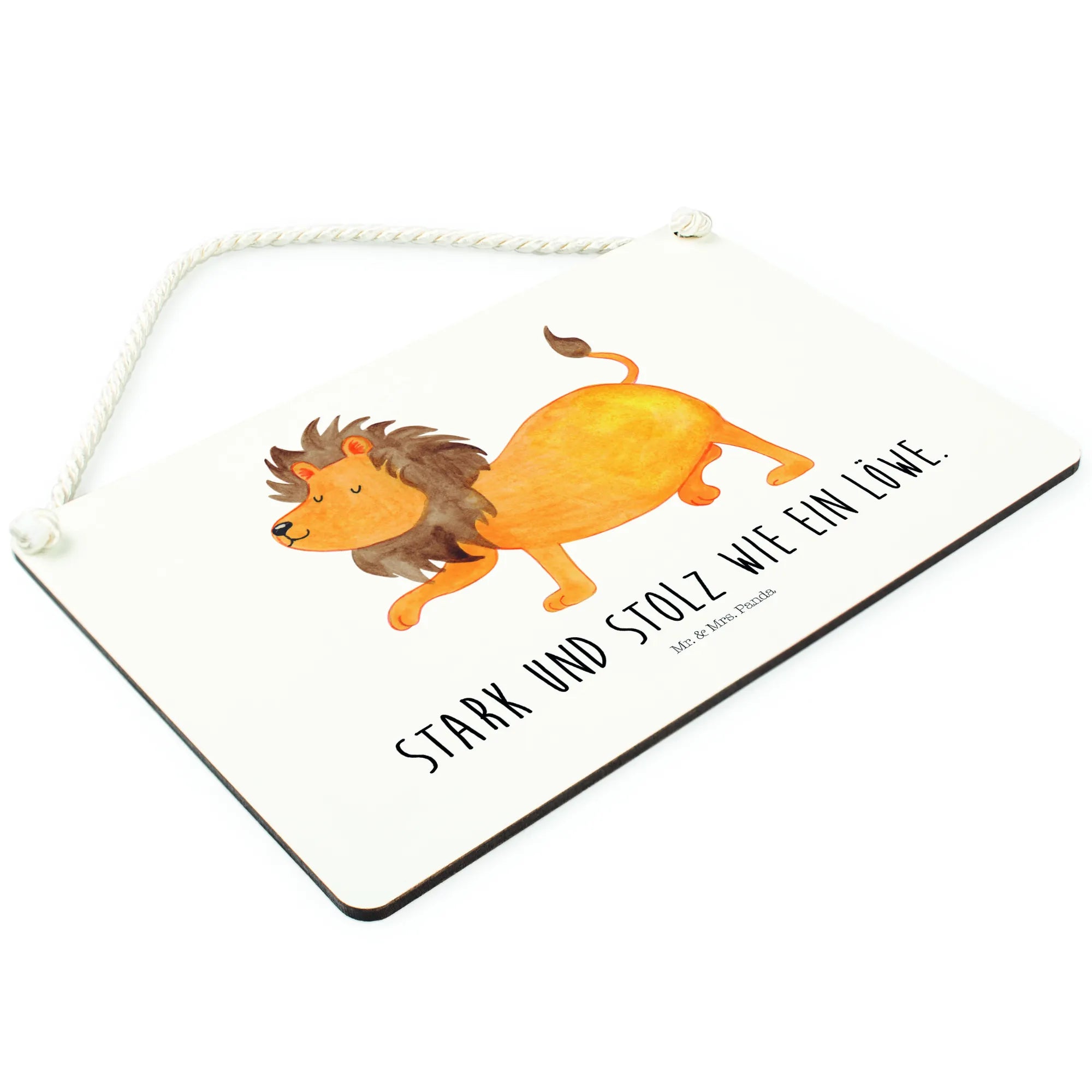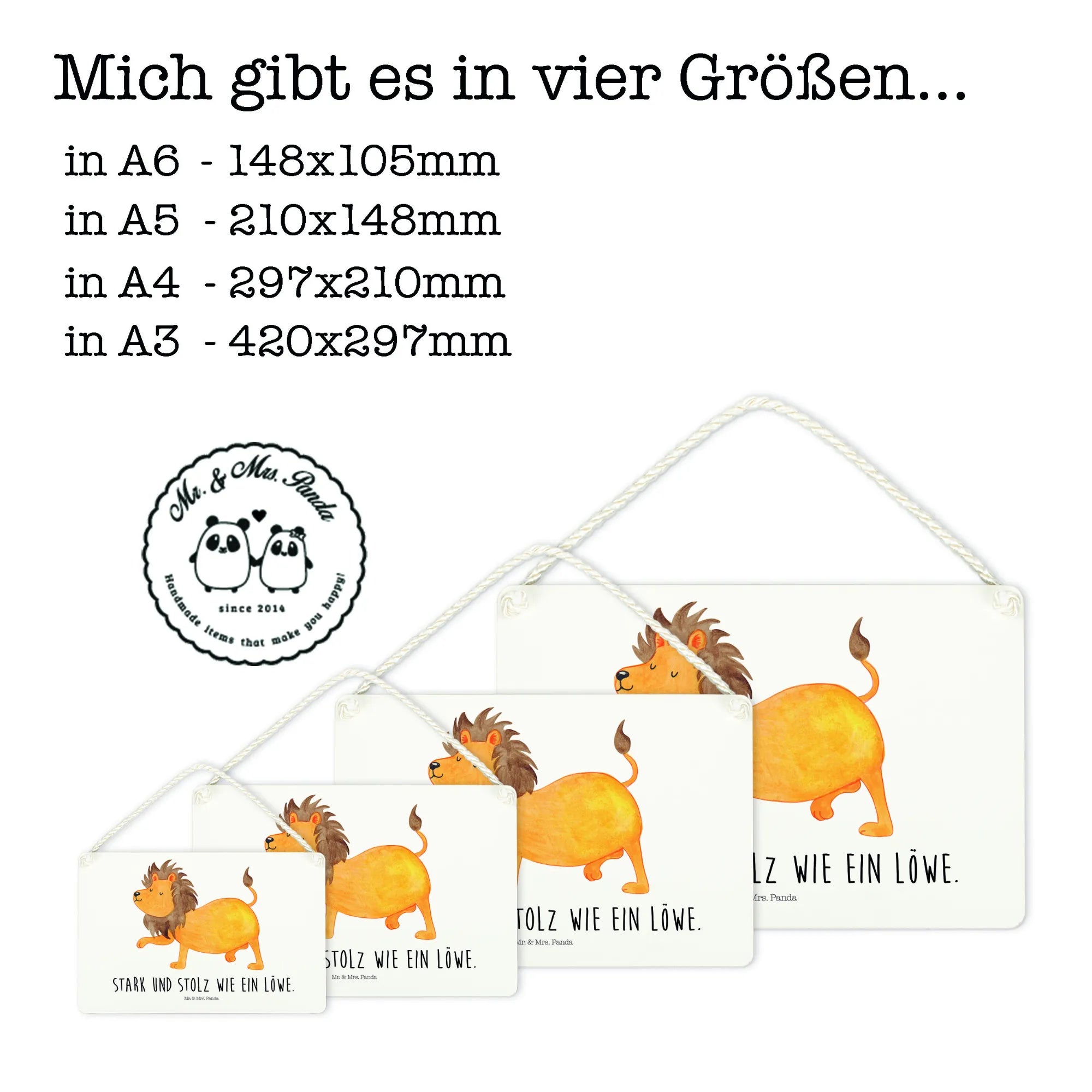 Ein wunderschönes Deko Schild von Mr. & Mrs. Panda, das nicht nur deine Wände verschönert, sondern auch ein ganz besonderes Geschenk für Löwe-Geborene ist! Mit dem strahlenden Motiv unseres majestätischen Löwen und dem Slogan 'Stark und stolz wie ein Löwe' bringt dieses Schild den Zauber des Sternzeichens Löwe direkt zu dir nach Hause. Ideal als Wanddeko oder Türschild, strahlt es die Stärke und den Stolz des Löwen aus, der als König der Tiere bekannt ist.