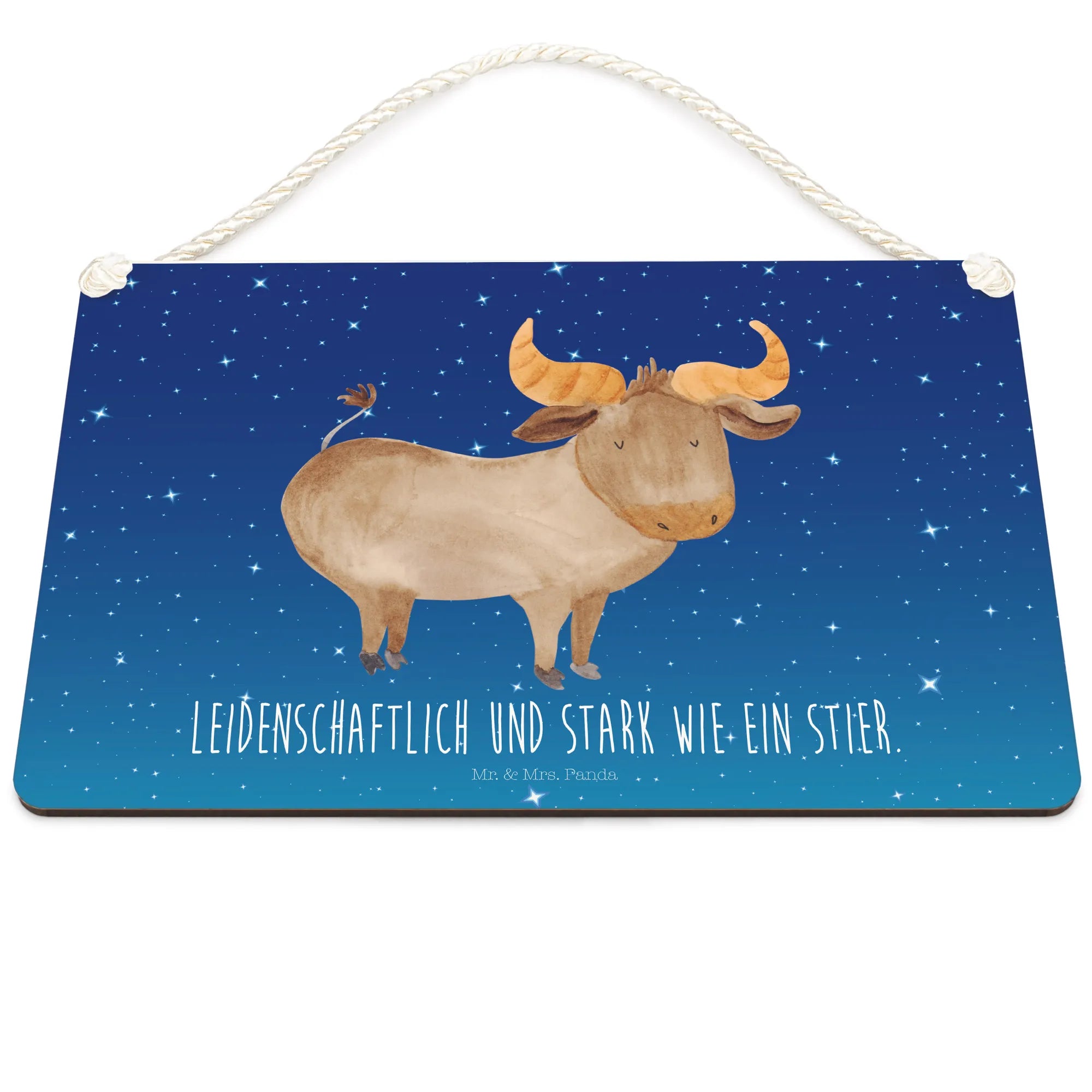 Das wunderschöne Deko Schild mit dem Motiv des Sternzeichen Stiers von Mr. & Mrs. Panda ist das perfekte Geschenk für alle, die das Tierkreiszeichen Stier lieben. Dieser beschauliche Stier, liebevoll handgezeichnet, bringt nicht nur Stil in dein Zuhause, sondern gibt auch einen Einblick in die Charakterzüge eines Stieres: Leidenschaftlich und stark.