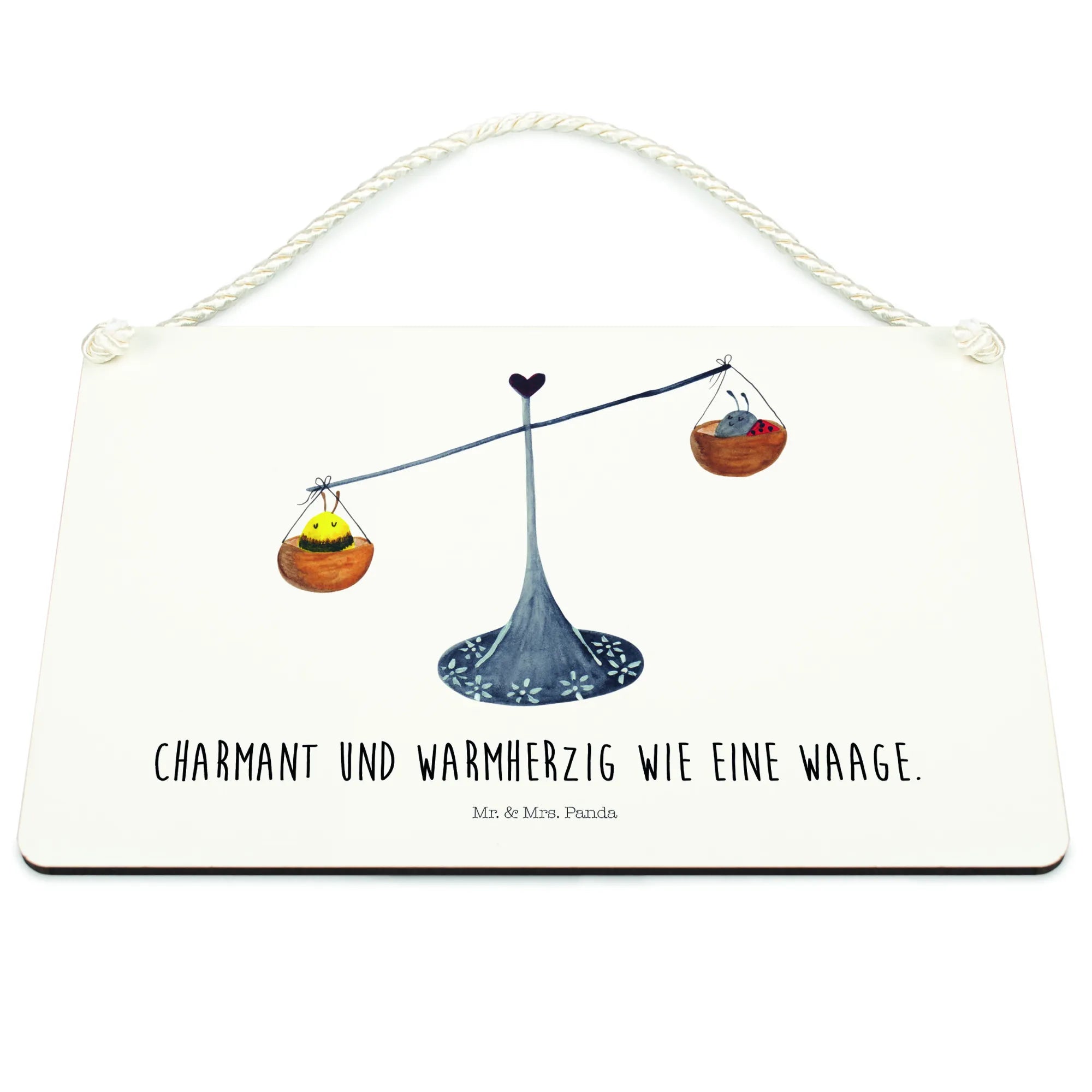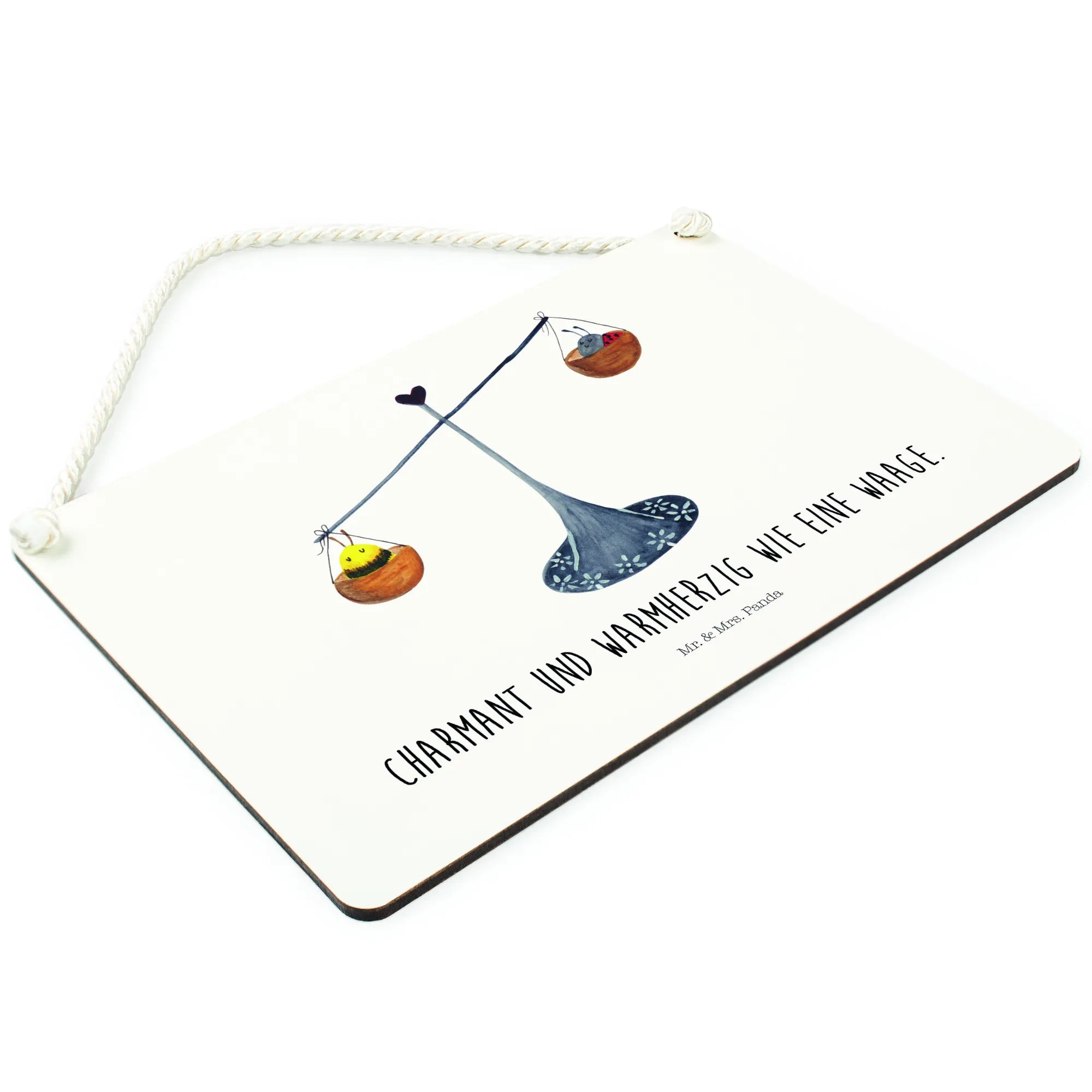 Ein wunderschönes Deko Schild von Mr. & Mrs. Panda, bedruckt mit dem einzigartigen Motiv des Sternzeichens Waage. Dieses Schild ist ideal für all diejenigen, die den Ausgleich und die Harmonie im Leben schätzen. Die Waage, oft als das Symbol für Balance und Gerechtigkeit gesehen, wird hier charmant und warmherzig dargestellt.