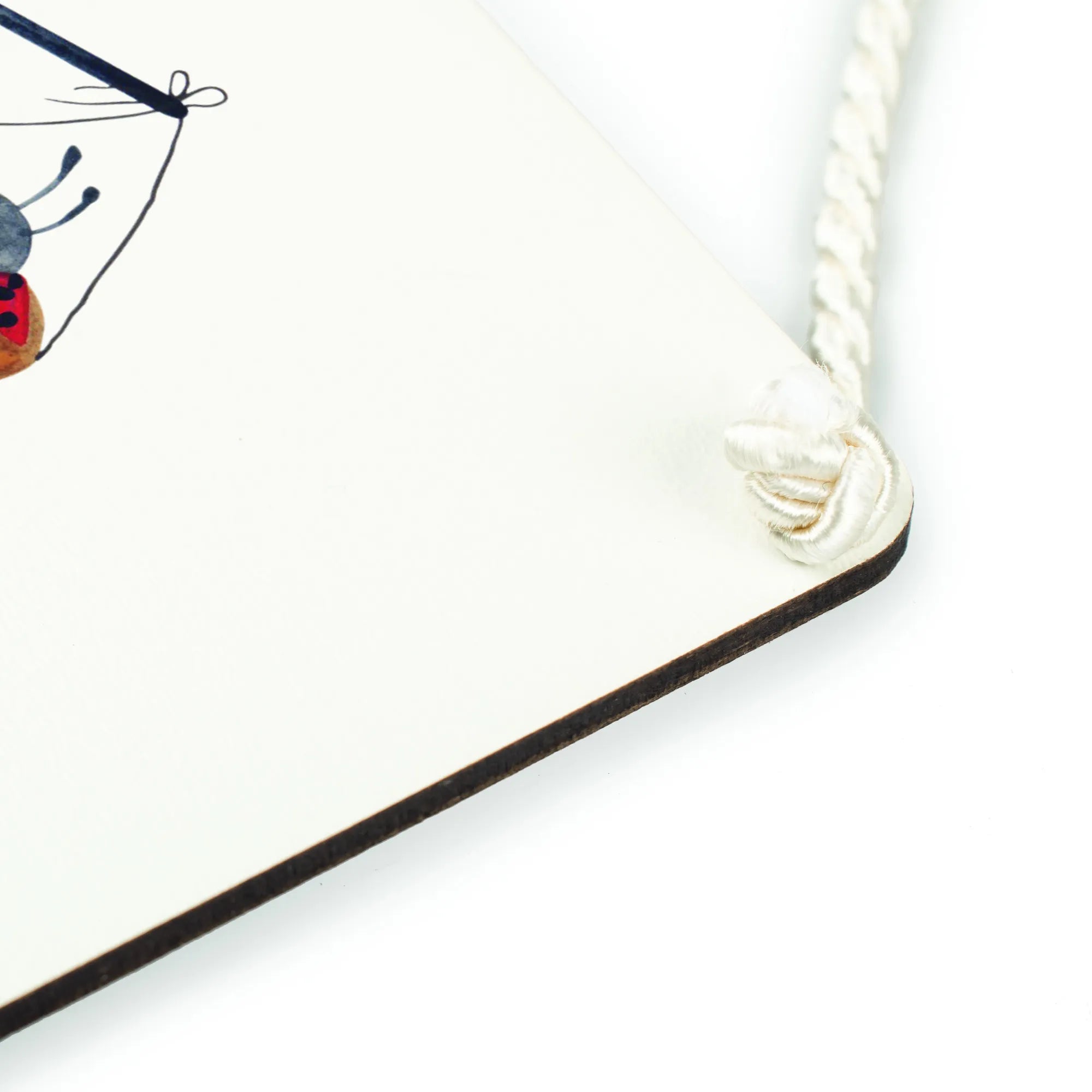 Die niedlichen Illustrationen von Marienkäfer und Hummel, die auf der Waage sitzen, bringen ein Lächeln in jedes Gesicht. Dieses schöne Holzschild, gefertigt aus hochwertiger MDF-Platte, besticht durch seine langlebige und edle Beschaffenheit und ist somit ein absoluter Hingucker an jeder Wand oder Tür. Die glänzende Oberfläche und die liebevollen handgezeichneten Motive werden auf jedem Hintergrund zum Strahlen gebracht.