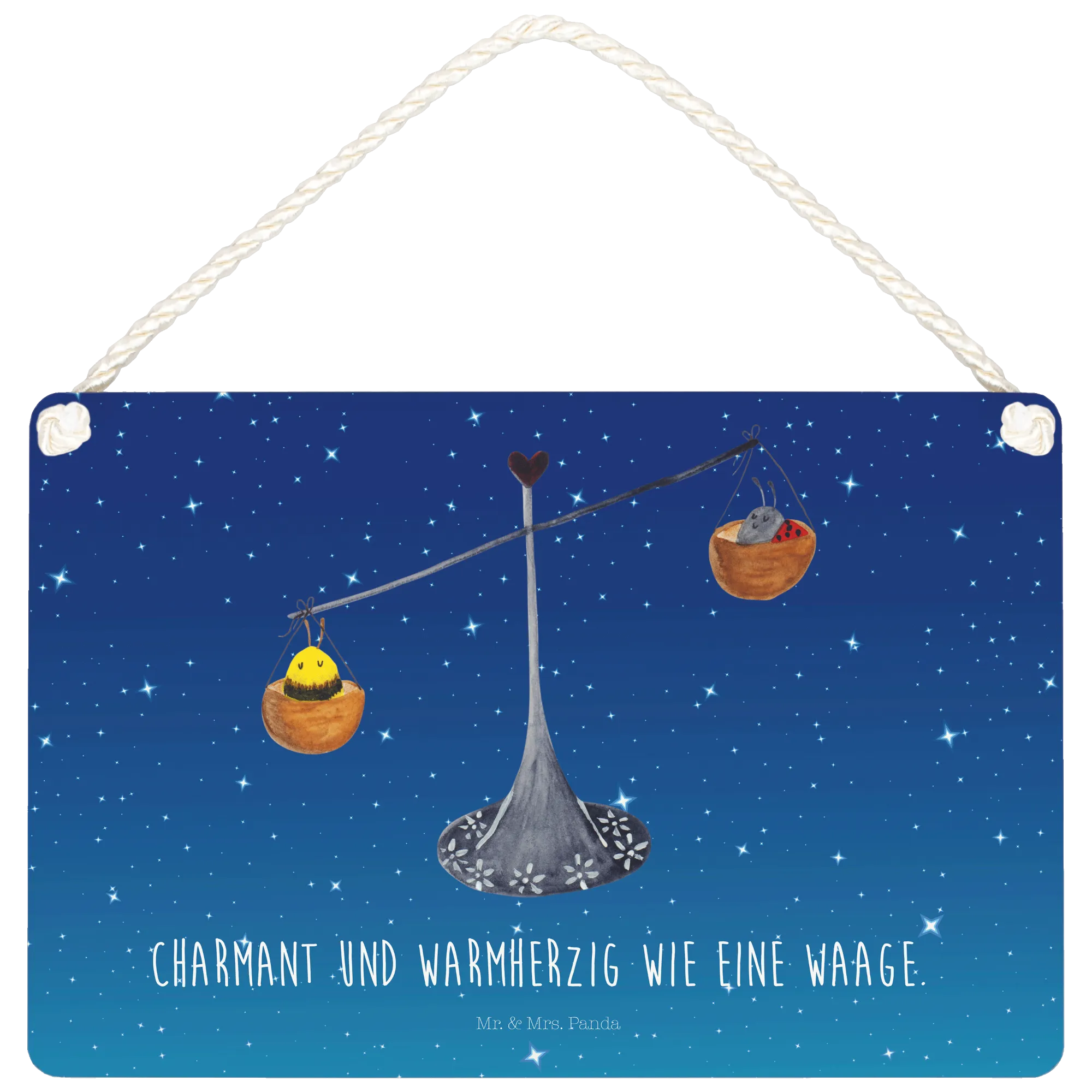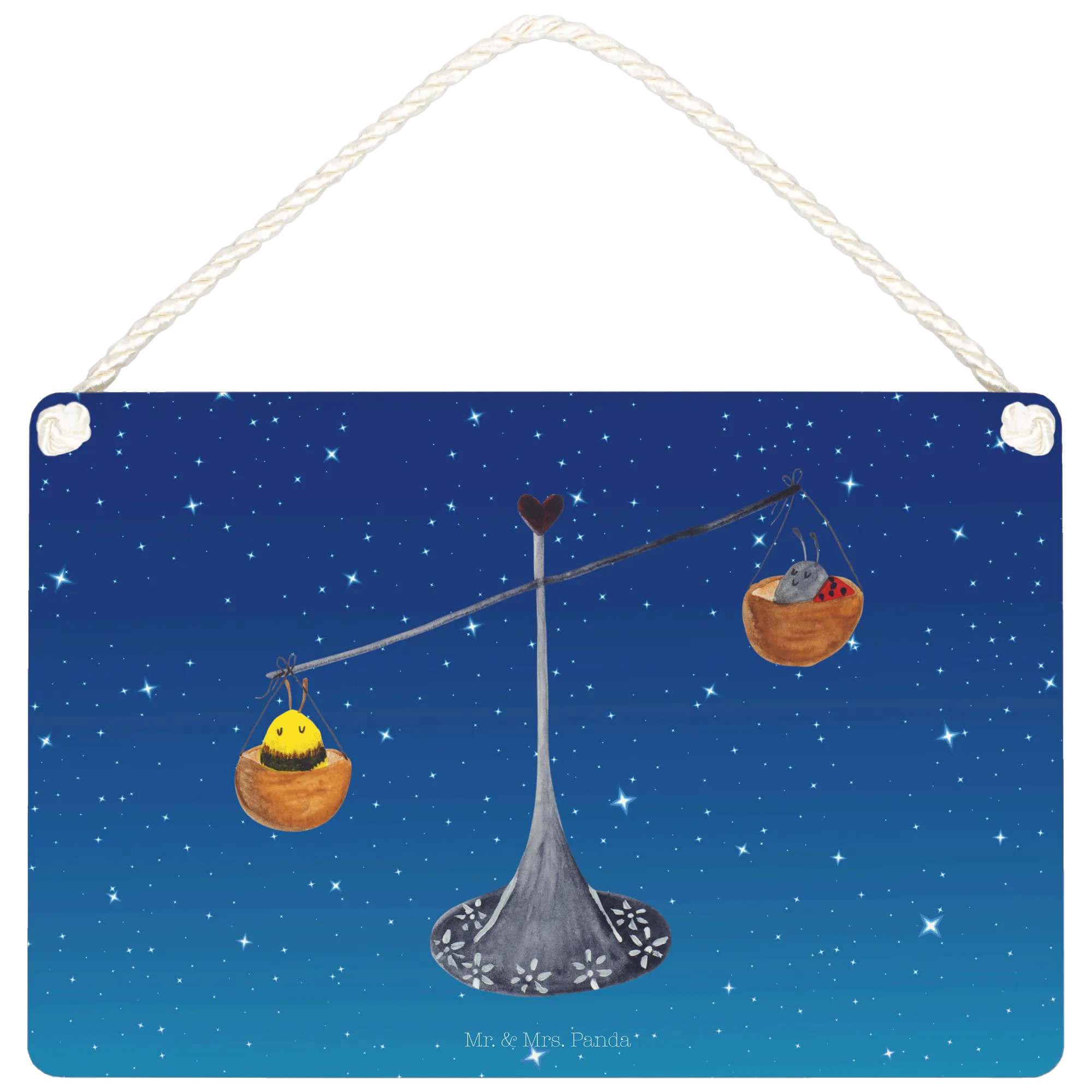 Das Deko Schild mit dem zauberhaften Motiv "Sternzeichen Waage" von Mr. & Mrs. Panda ist die perfekte Geschenkidee für alle, die im September oder Oktober geboren wurden. Die Waage, bekannt für ihre charmante und warmherzige Art, harmonisiert alles um sich herum und sucht stets nach dem Gleichgewicht. Ideal für Geburtstagsgeschenke oder als liebevolle Dekoration für dein Zuhause!