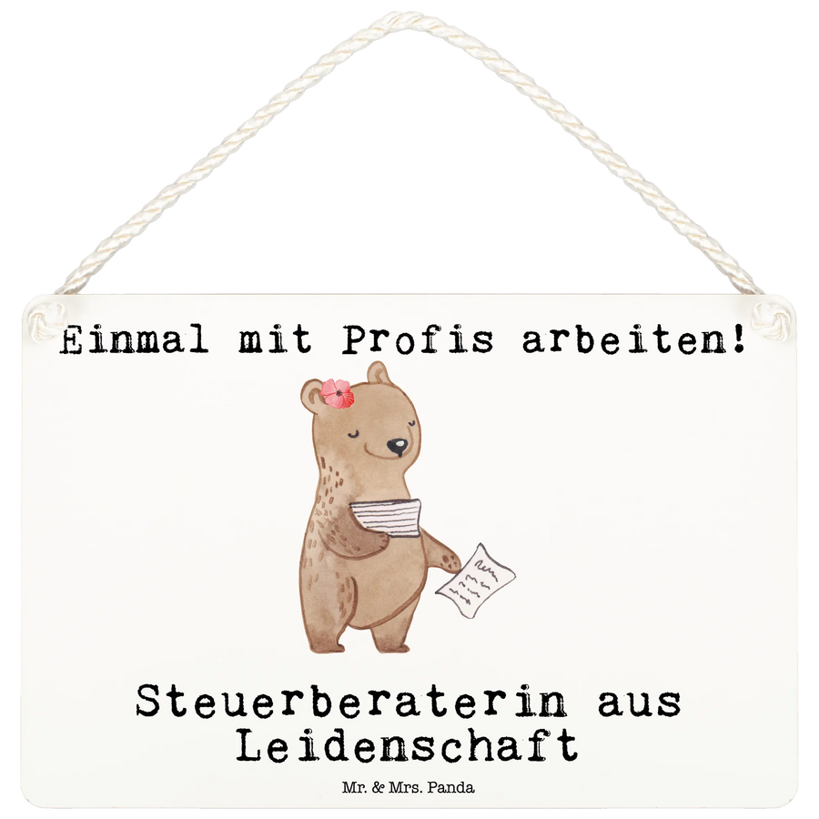 Das Deko Schild "Steuerberaterin aus Leidenschaft" von Mr. & Mrs. Panda ist das perfekte Geschenk für jede Frau, die in diesem Beruf arbeitet! Dieses liebevoll gestaltete Holzschild ist nicht nur eine bezaubernde Wanddeko, sondern es zeigt auch die Hingabe und Leidenschaft, mit der eine Steuerberaterin ihre Arbeit ausführt. Mit einem niedlichen, weiblichen Bären, der stolz ein Stapel von Unterlagen hält, bringt dieses Schild eine fröhliche Atmosphäre in jedes Büro oder die eigene Wohnung.