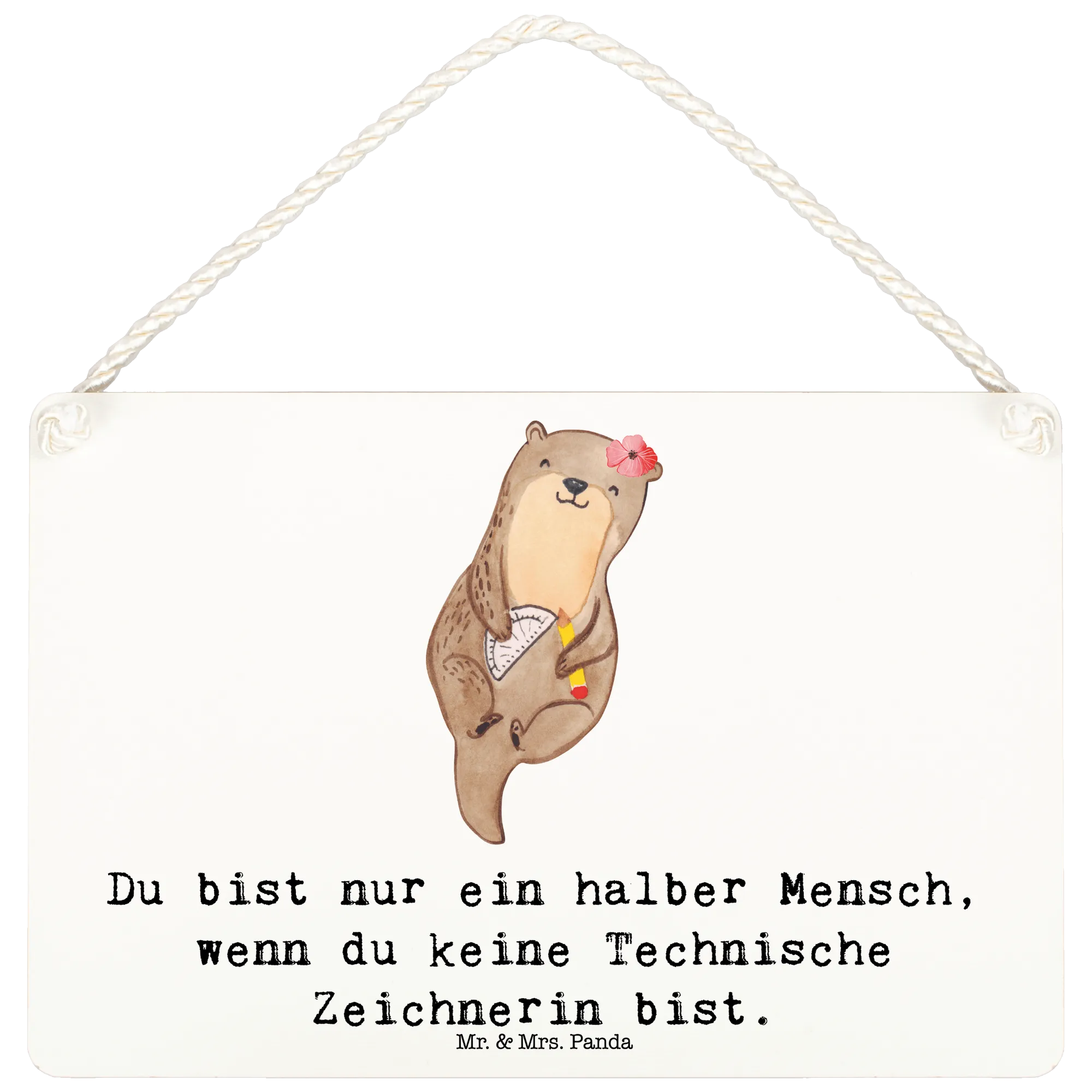 Ob im Büro, im Homeoffice oder in der Studienzeit – dieses Deko Schild ist ein echter Blickfang und sorgt für gute Laune. Mit dem süßen Motiv eines Otters, der ein Lineal und einen Bleistift in der Hand hält, bringt das Schild ein Lächeln auf jedes Gesicht! Der eingängige Spruch "Du bist nur ein halber Mensch, wenn du keine Technische Zeichnerin bist." verleiht dem Schild zudem einen humorvollen Touch.