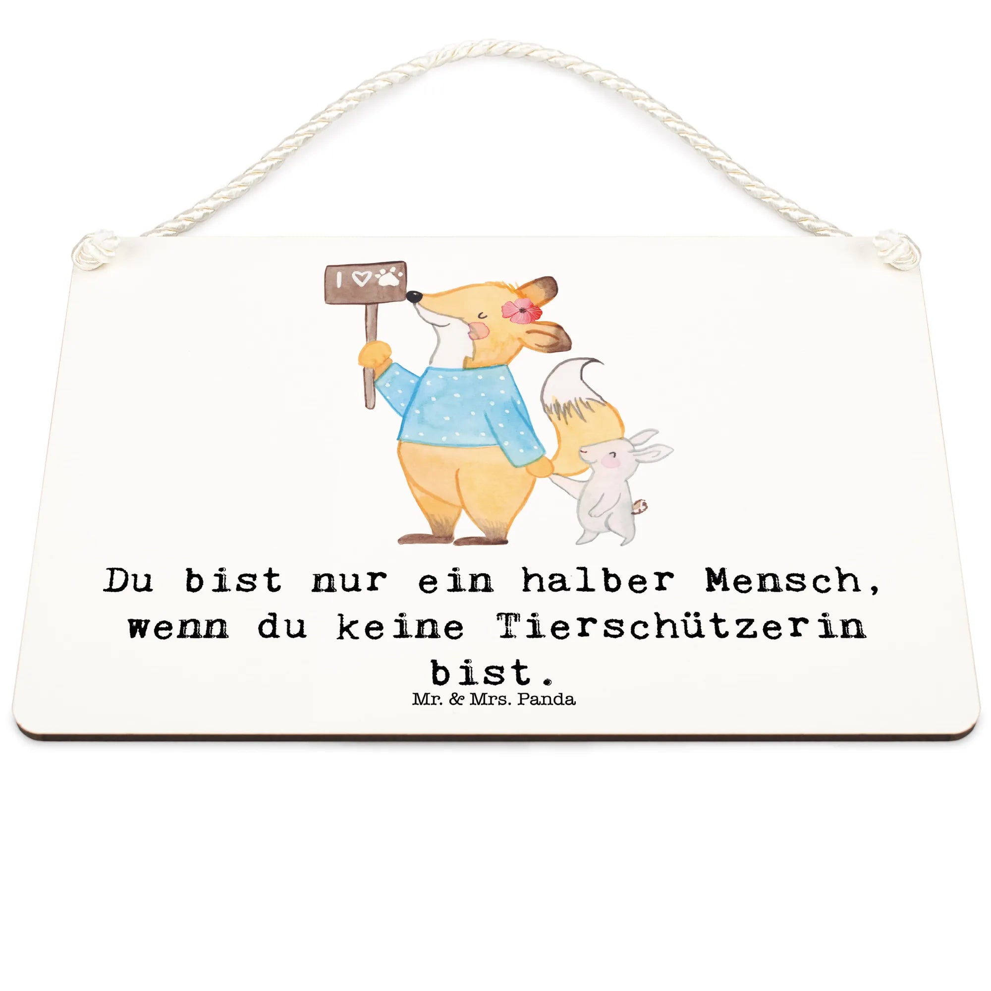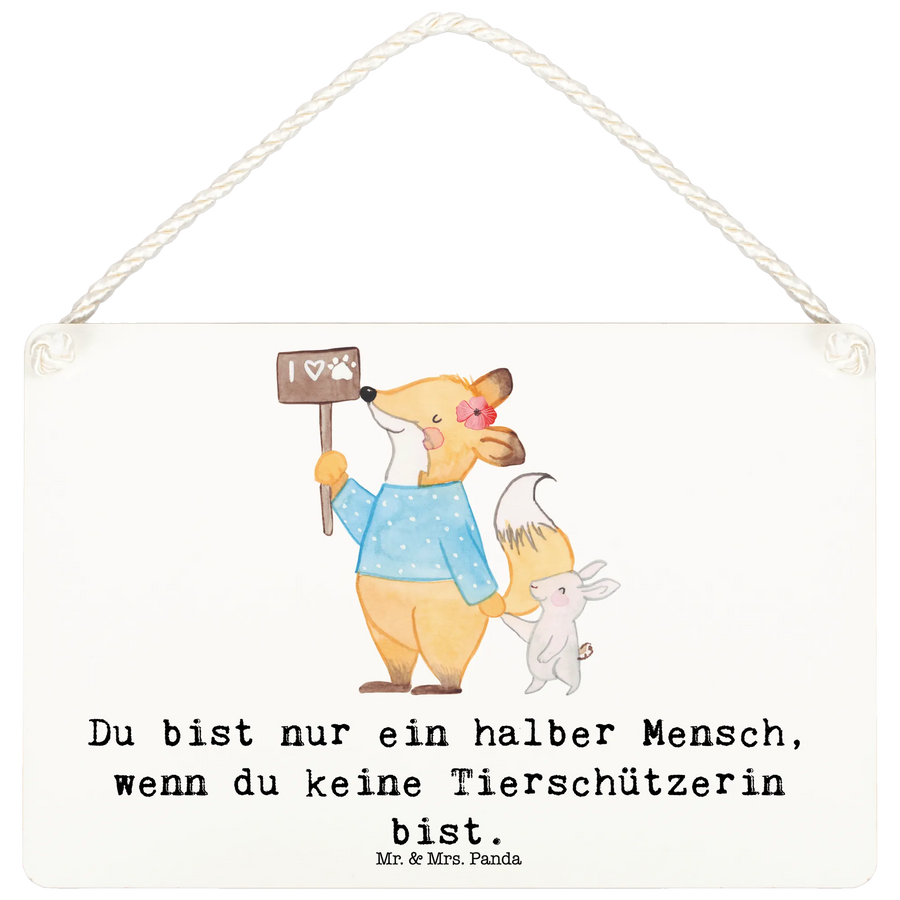 Mit dem liebevoll gestalteten Motiv eines süßen Fuchses, der einen kleinen Hasen beschützt, und dem kraftvollen Spruch 'Du bist nur ein halber Mensch, wenn du keine Tierschützerin bist', bringt dieses Schild nicht nur Freude in dein Zuhause, sondern auch eine Botschaft, die Herzen berührt.