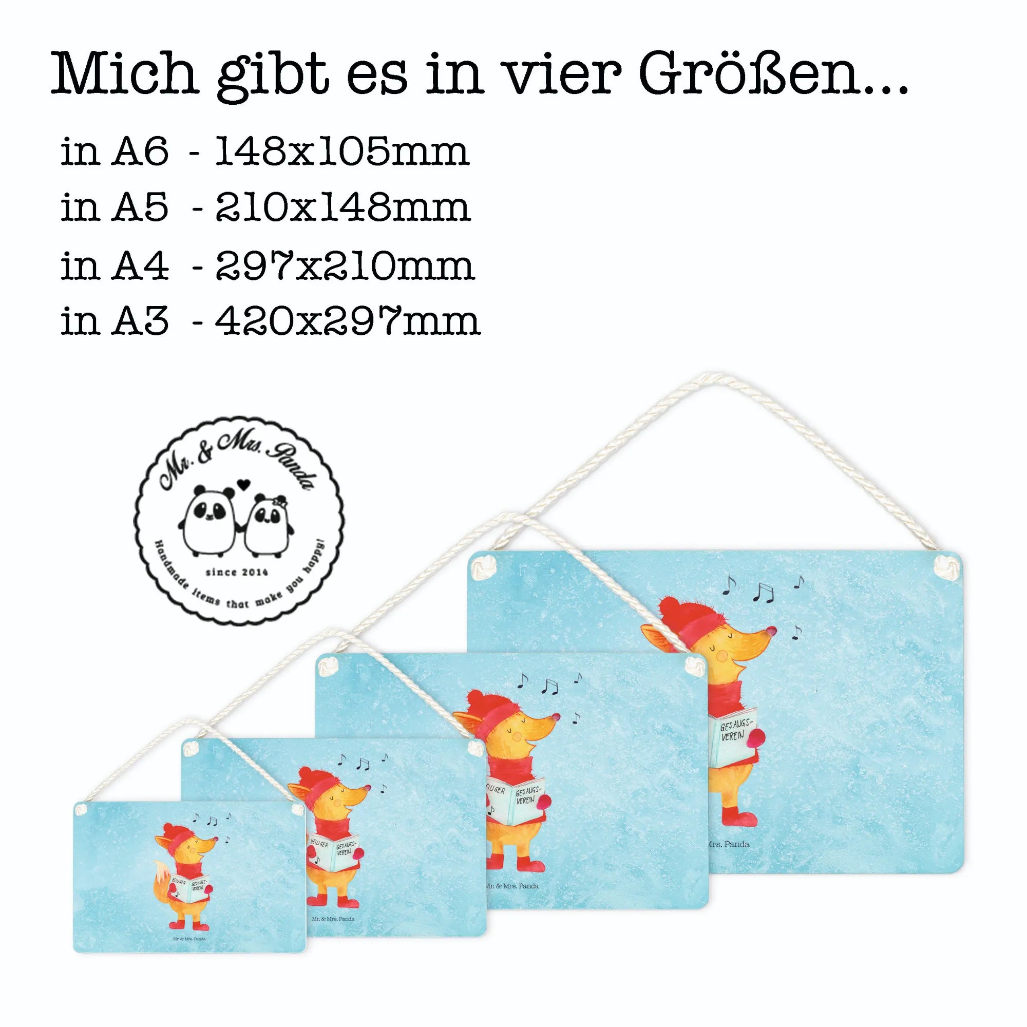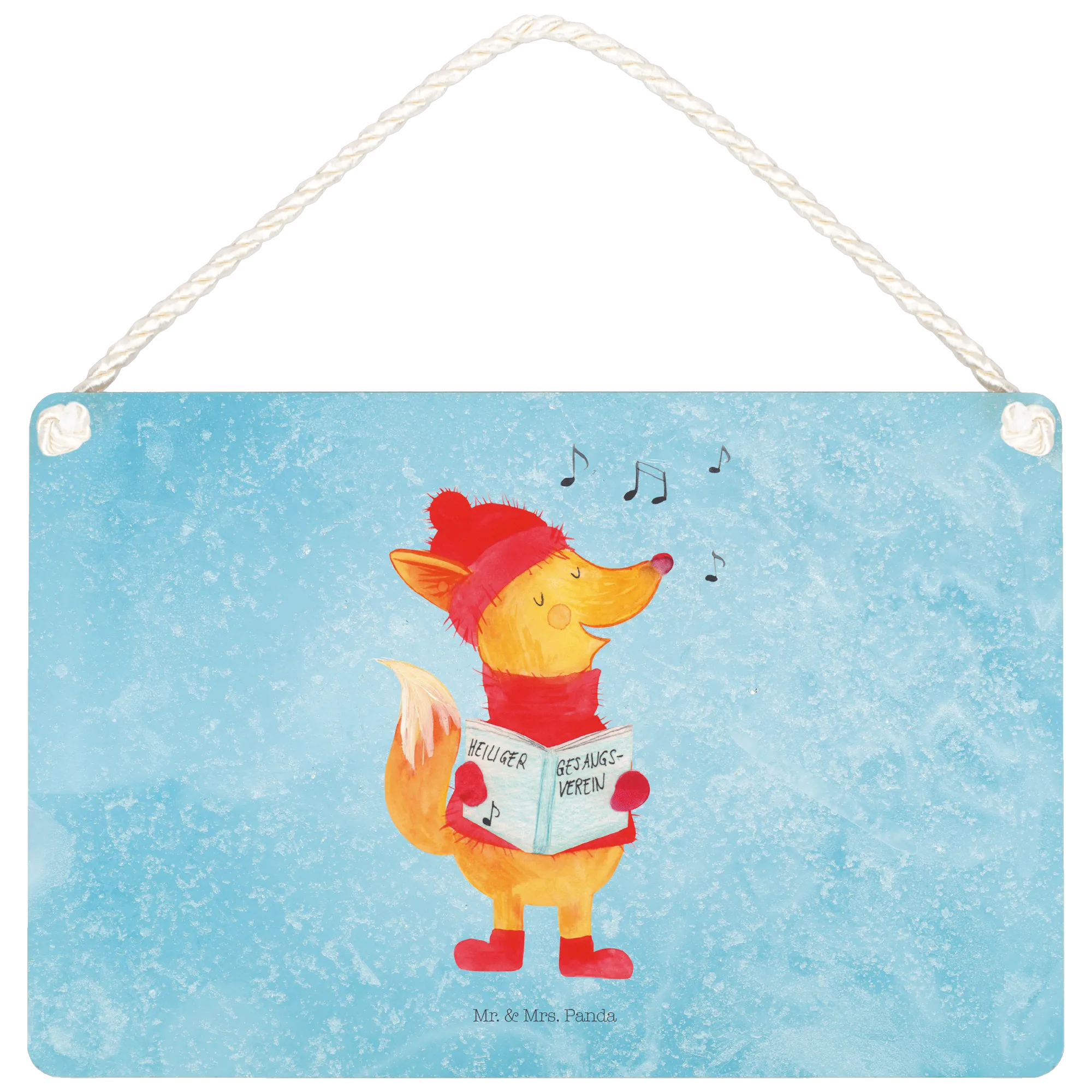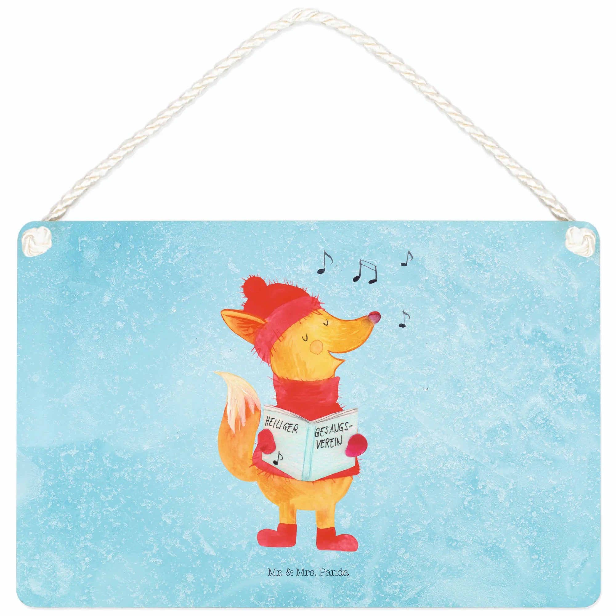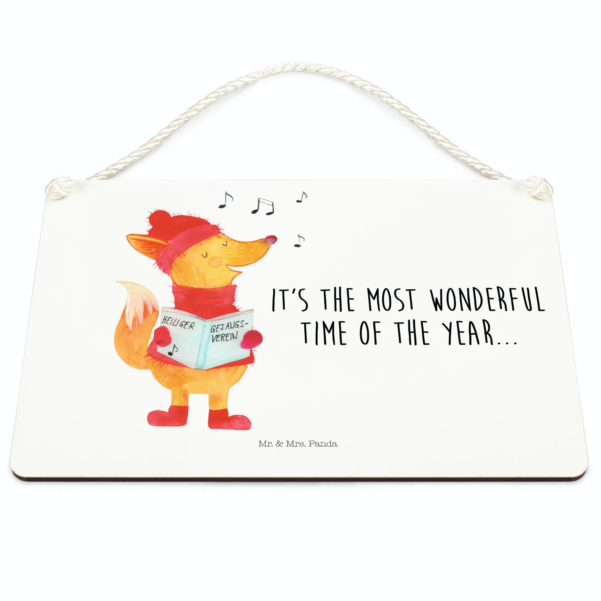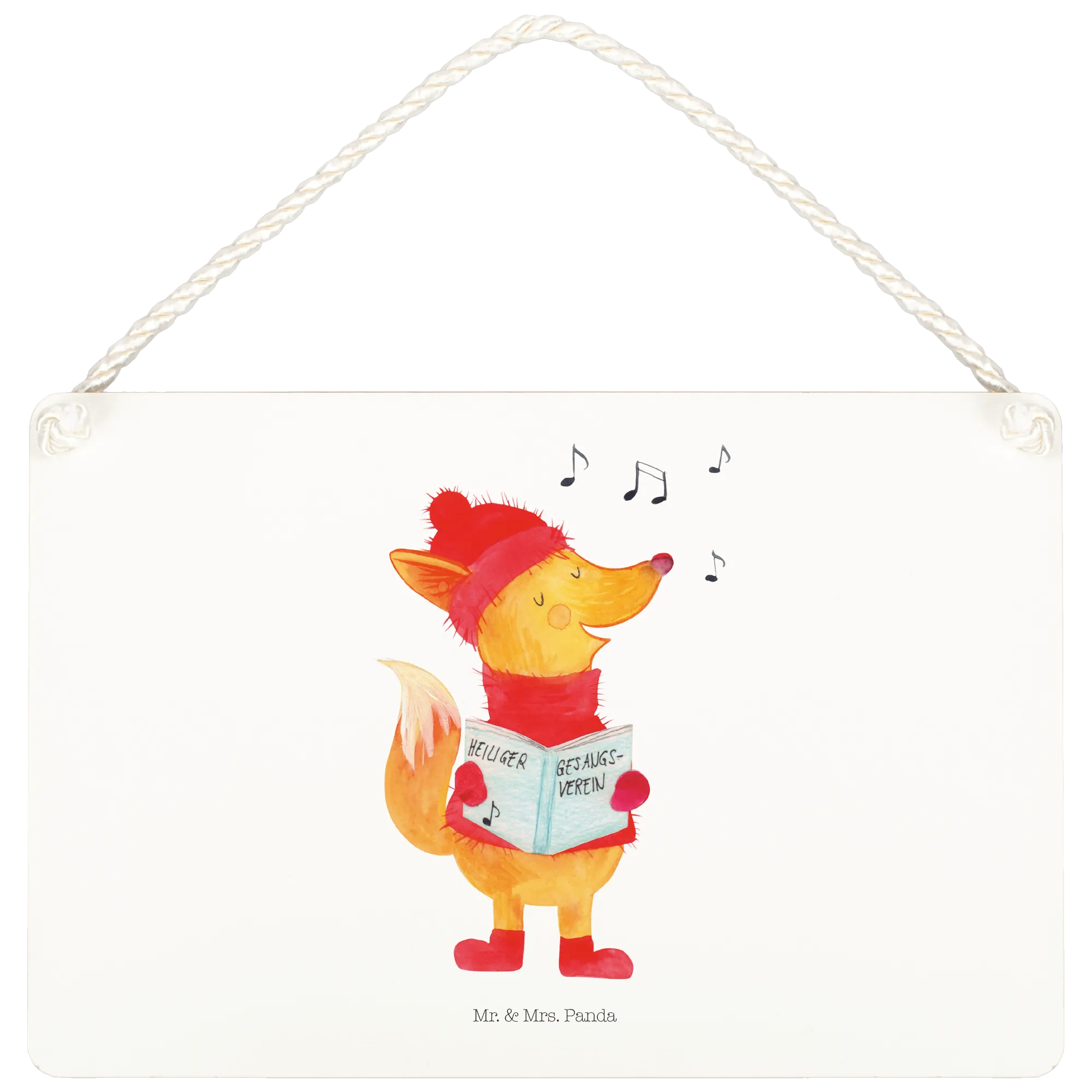 Das Deko Schild "Fuchs Sänger" von Mr. & Mrs. Panda ist die perfekte Ergänzung für jedes Zuhause, besonders in der festlichen Winterzeit. Mit seinem zauberhaften Motiv eines fröhlichen Fuchses, der singend in ein Liederbuch schaut, bringt es eine warme und einladende Atmosphäre in Deine vier Wände.