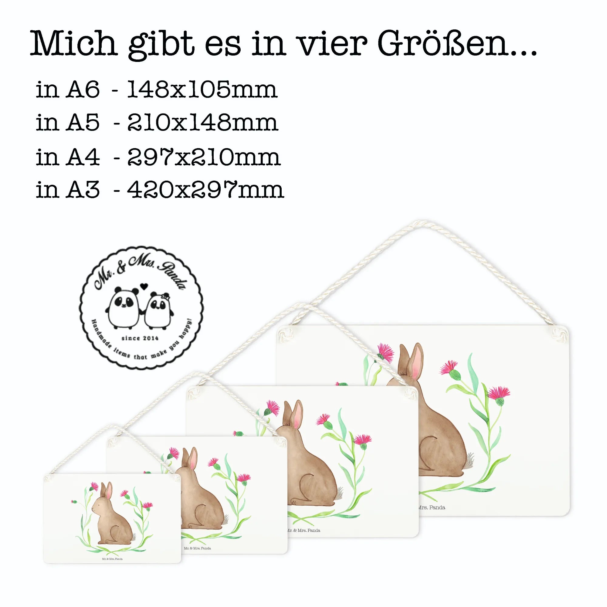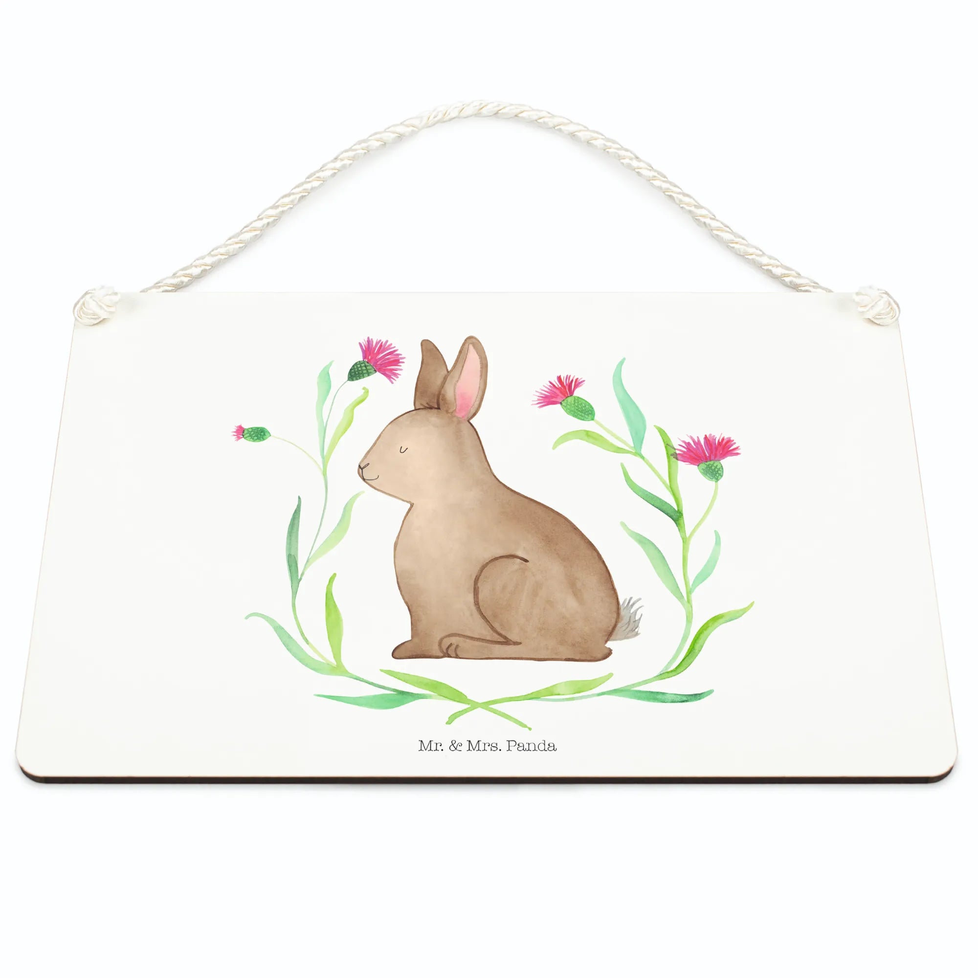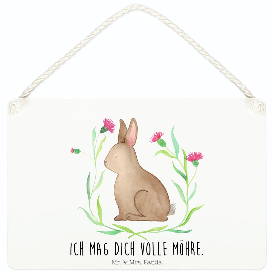 Vielseitig & langlebig: Das Schild kommt mit einer gedrehten Kordel zum Aufhängen und einer beschichteten Oberfläche, die den edlen Druck schützt. So bleibt dein Hase sitzend lange schön und macht in Küche, Flur, Wohnzimmer oder im Gartenbereich eine gute Figur.