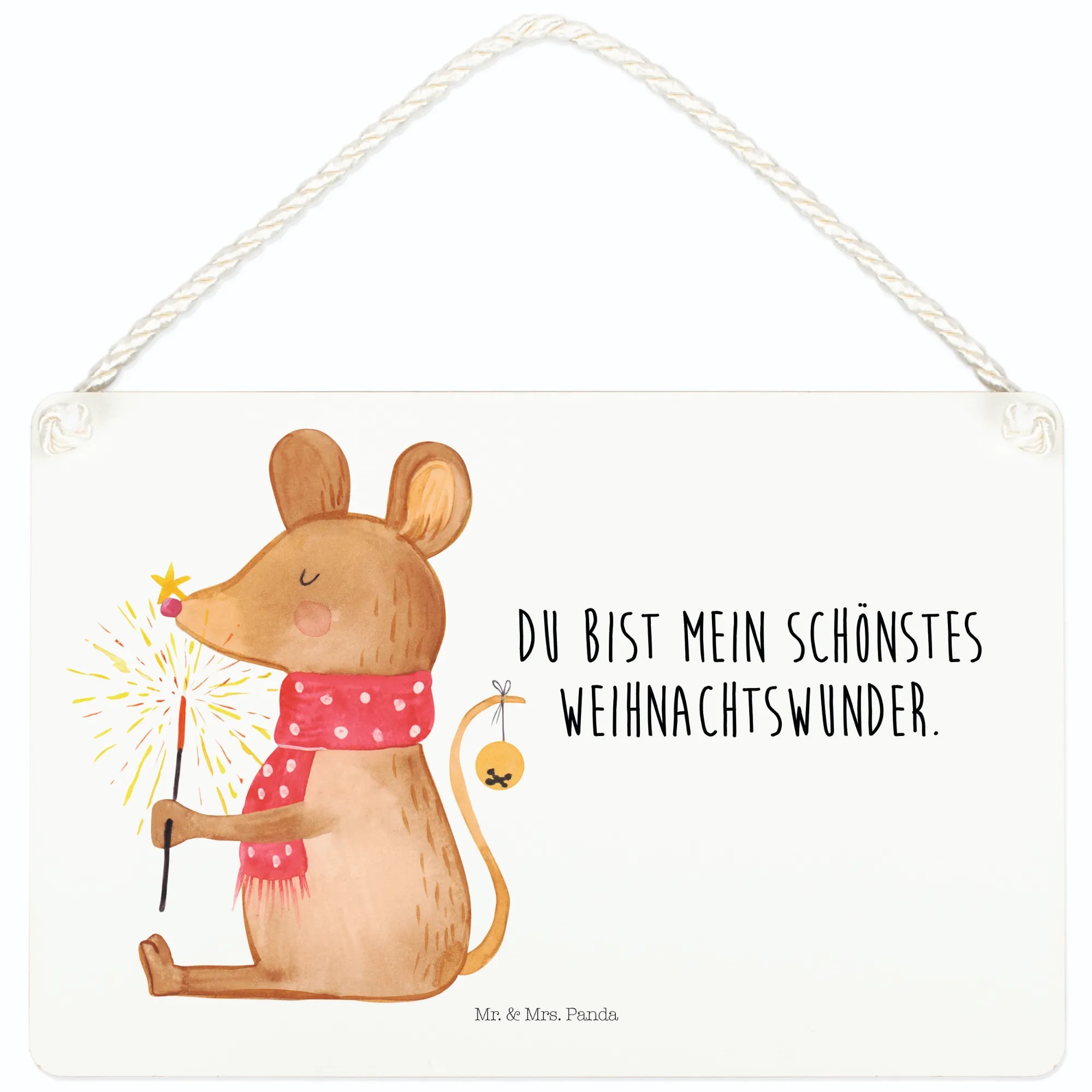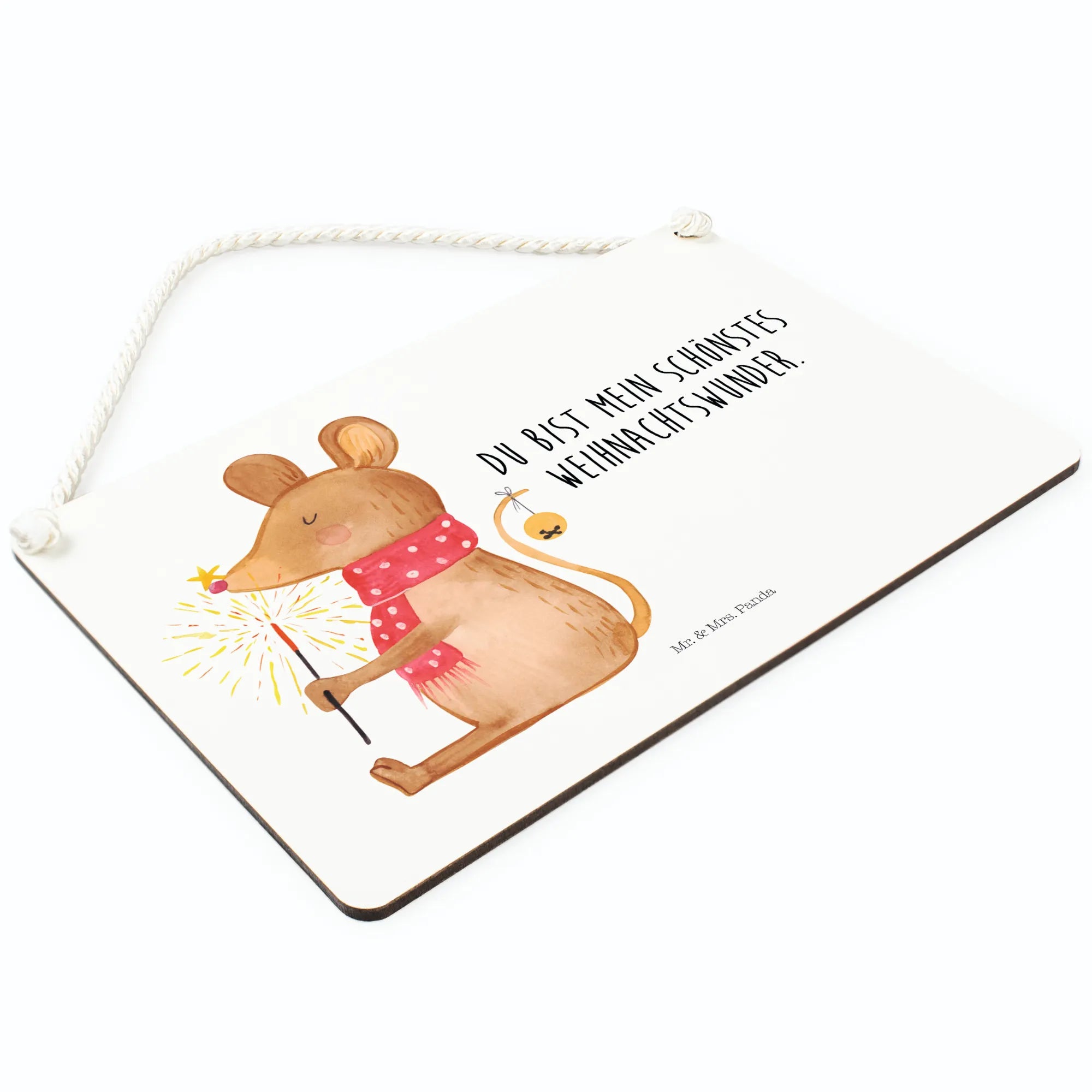 Das Deko Schild "Weihnachtsmaus" von Mr. & Mrs. Panda bringt die zauberhafte Atmosphäre der Winterzeit direkt zu dir nach Hause! Mit einem liebevoll gestalteten Motiv einer süßen Maus, die die Weihnachtszeit feiert, vereint dieses Holzschild den Charme der kalten Jahreszeit mit dem warmen Gefühl von festlicher Vorfreude.