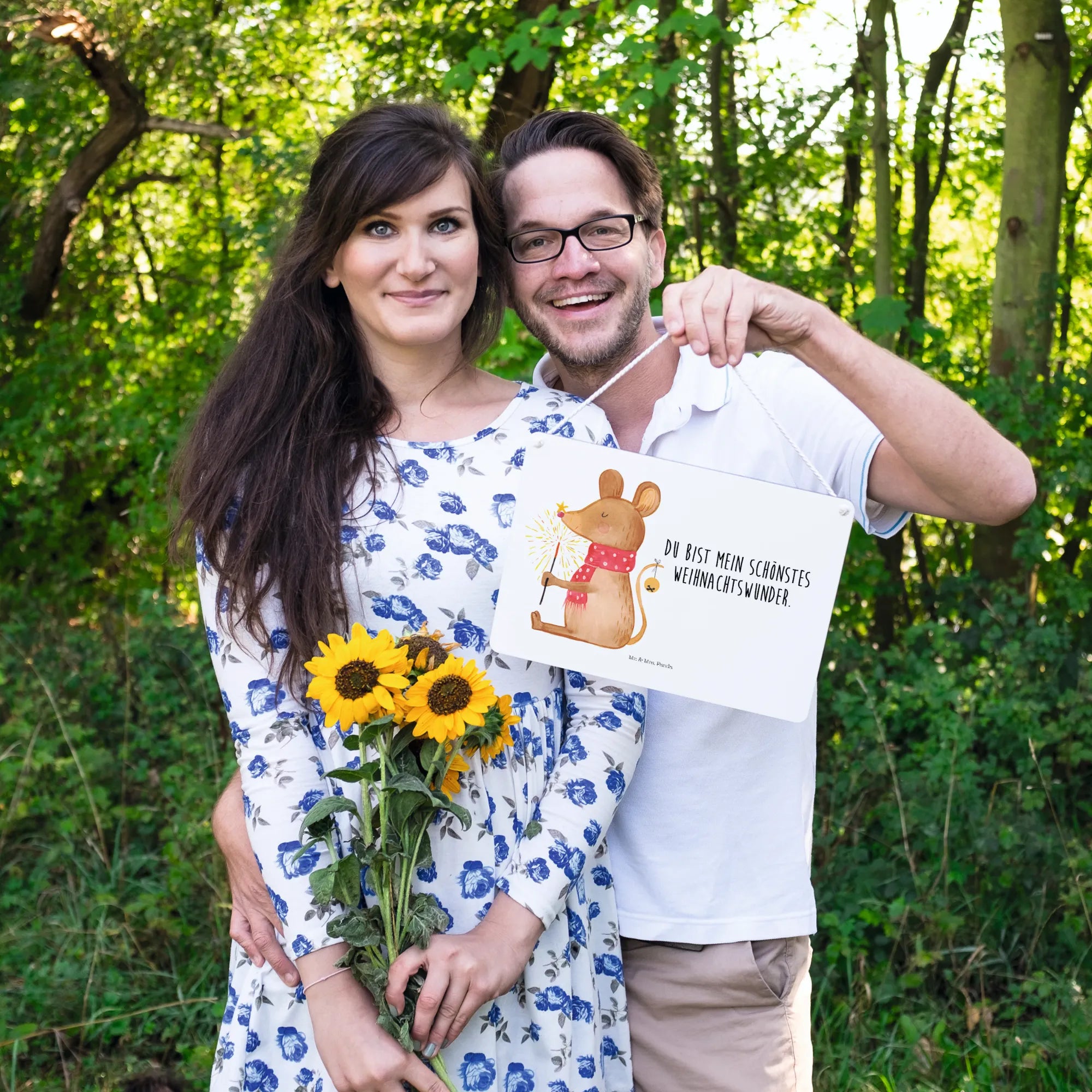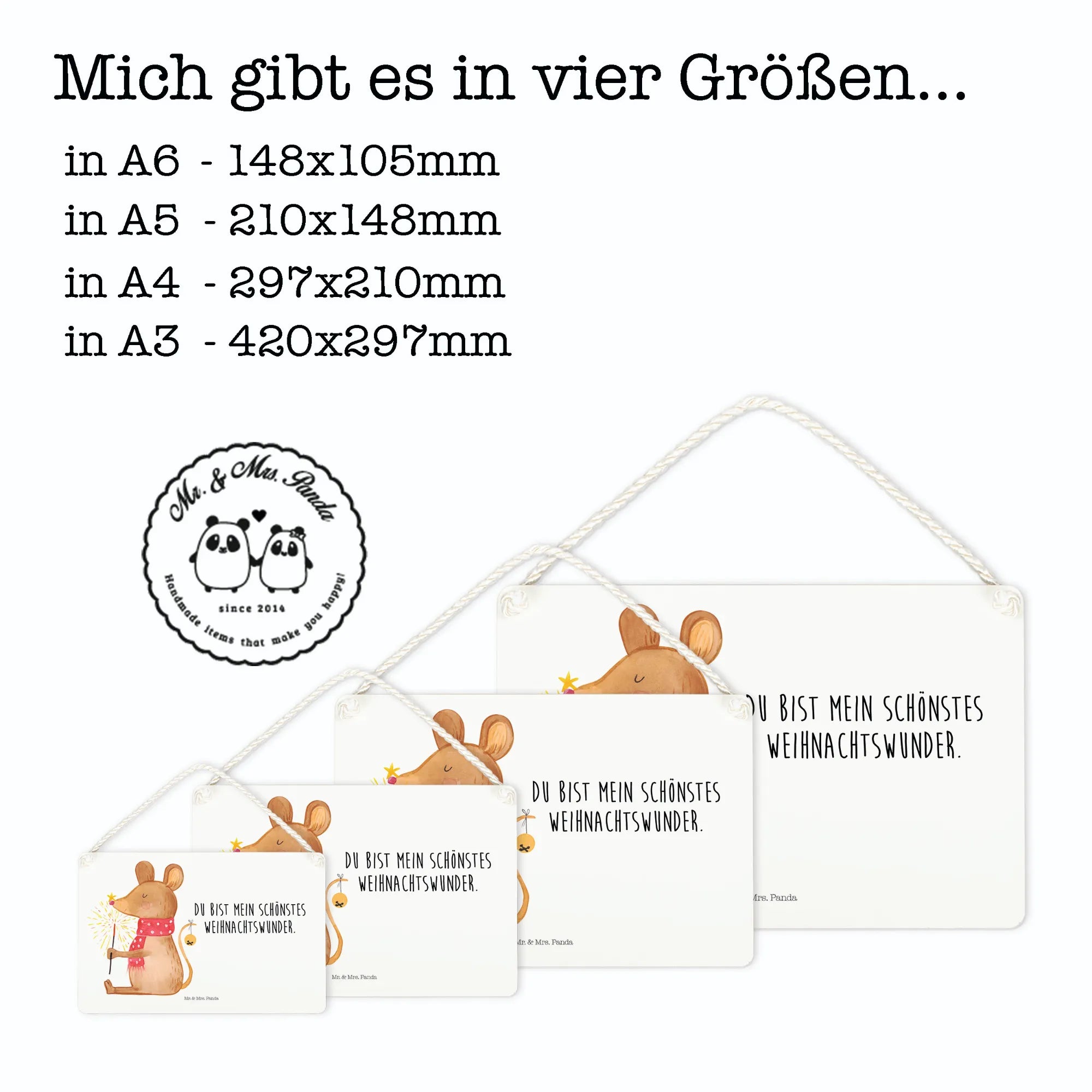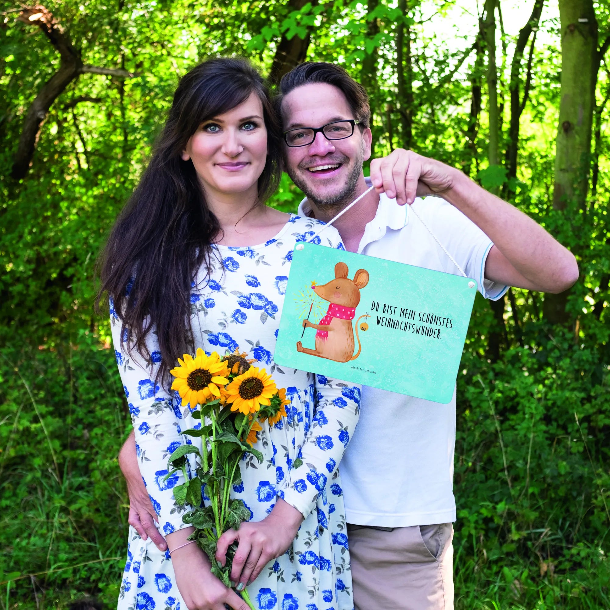 Das Deko Schild Weihnachtsmaus aus der Winter Kollektion von Mr. & Mrs. Panda ist der perfekte Begleiter für deine festlichen Vorbereitungen. Mit seinem zauberhaften Motiv und dem liebevollen Spruch 'Du bist mein schönstes Weihnachtswunder' bringt es eine fröhliche Stimmung in dein Zuhause.