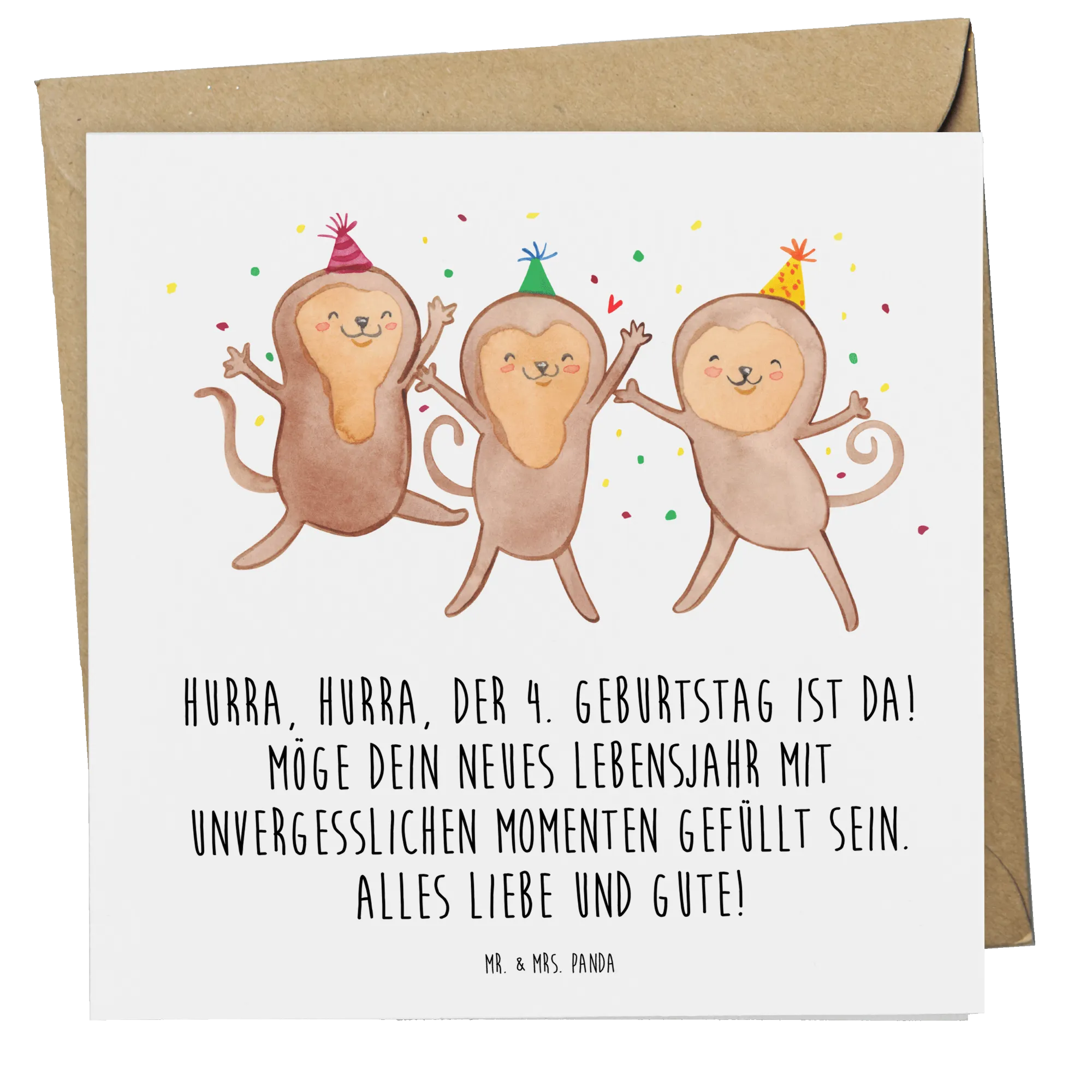 Feiere den 4. Geburtstag mit dieser Deluxe Karte von Mr. & Mrs. Panda! Unsere wunderschöne, quadratische Glückwunschkarte ist die perfekte Wahl für jeden kleinen Geburtstagshelden. Mit dem fröhlichen Spruch "Hurra, hurra, der 4. Geburtstag ist da! Möge dein neues Lebensjahr mit unvergesslichen Momenten gefüllt sein. Alles Liebe und Gute!" zauberst du garantiert ein Lächeln ins Gesicht.