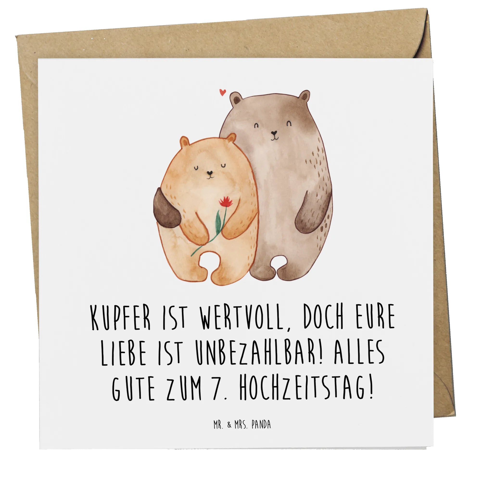 Für wen ist diese Karte geeignet? Diese Karte ist das ideale Geschenk für Freunde, Familienmitglieder oder das Brautpaar selbst. Ob als Hochzeitskarte, Jubiläumskarte, Grußkarte zur Kupferhochzeit oder als liebevolle Karte zum 7. Jahrestag – sie zeigt Wertschätzung und Zuneigung auf besondere Weise. Unsere Hochzeitskollektion bei Mr. & Mrs. Panda bietet dir viele ähnliche Motive, falls du passende Einladungskarten, Deko oder Gastgeschenke suchst.