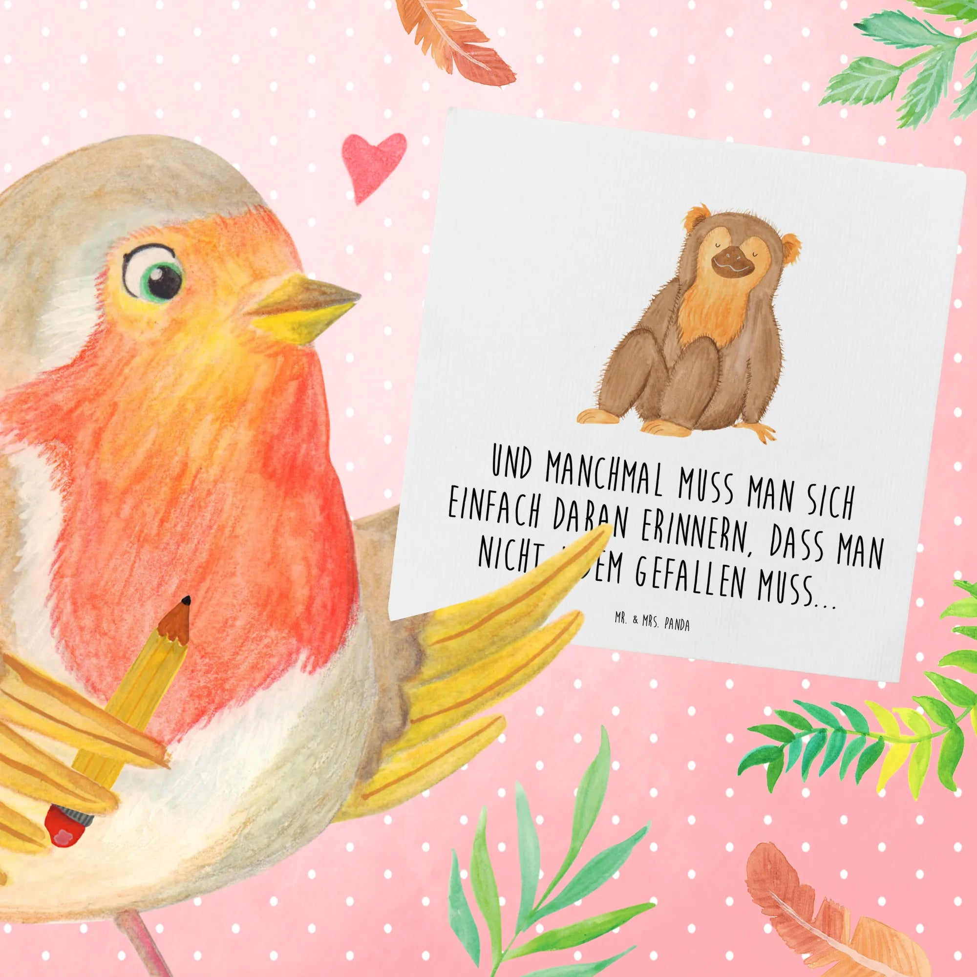 Die Deluxe Karte mit dem süßen Affenmotiv aus der Afrika Kollektion von Mr. & Mrs. Panda ist das perfekte Geschenk für alle, die Selbstliebe und Motivation schätzen. Mit ihrem liebevoll handgezeichneten Motiv des kleinen selbstbewussten Affen Konrad, der dir auf bezaubernde Weise ins Ohr flüstert, dass man sich selbst lieben sollte und es nicht nötig ist, jedem zu gefallen, wird diese Karte zu einem echten Hingucker. Ob für einen Geburtstag, zur Hochzeit oder einfach nur als aufmunternde Botschaft für einen geliebten Menschen - sie ist immer eine wunderbare Wahl.