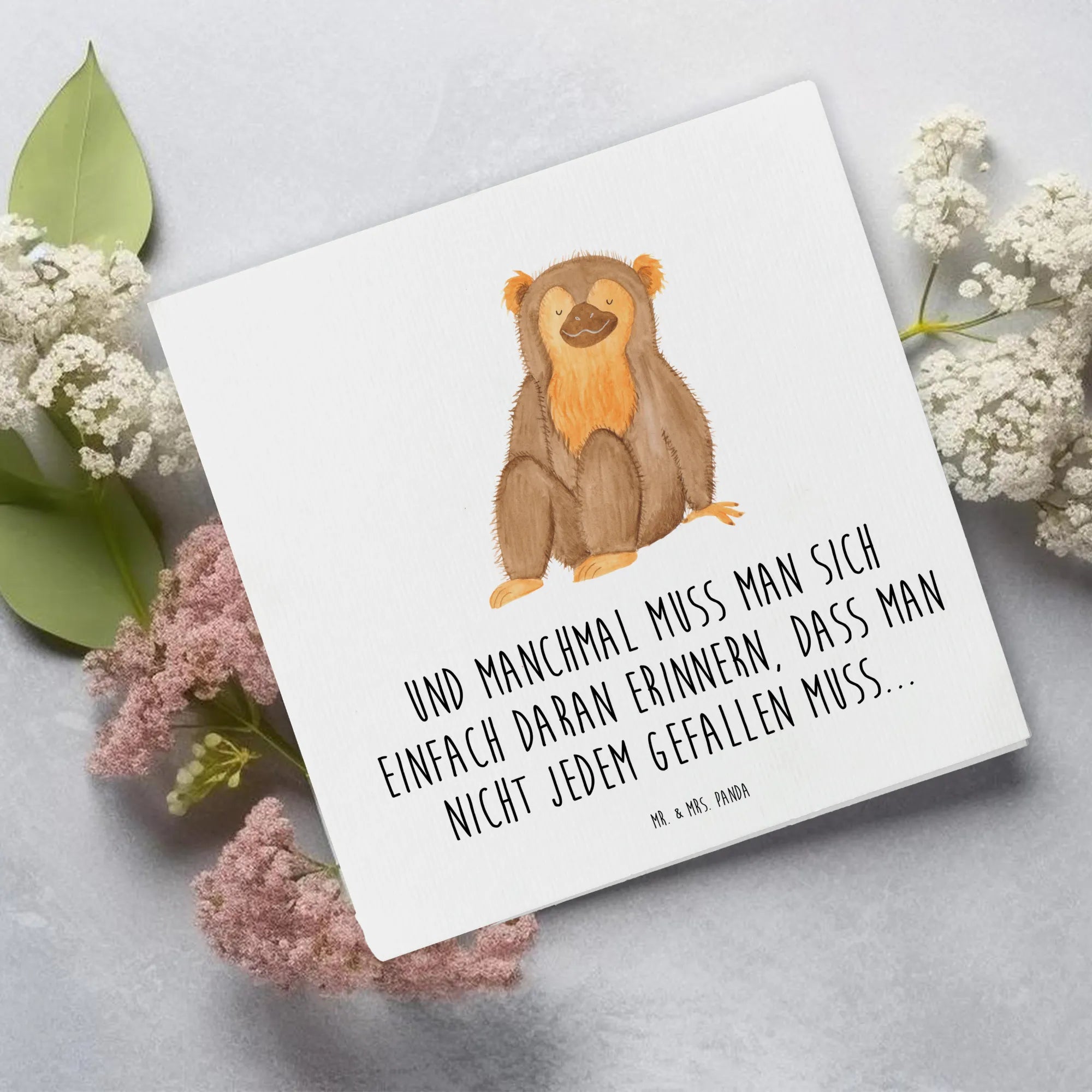 Die Deluxe Karte mit dem süßen Affen-Motiv aus der Afrika Kollektion von Mr. & Mrs. Panda ist das perfekte Geschenk für alle, die an Selbstliebe und persönlichem Wachstum interessiert sind. Diese wunderschöne, quadratische Karte zeigt den kleinen, selbstbewussten Affen Konrad, der Dir zeigt, wie wichtig es ist, sich selbst zu lieben und dass es gar nicht nötig ist, jedem zu gefallen.