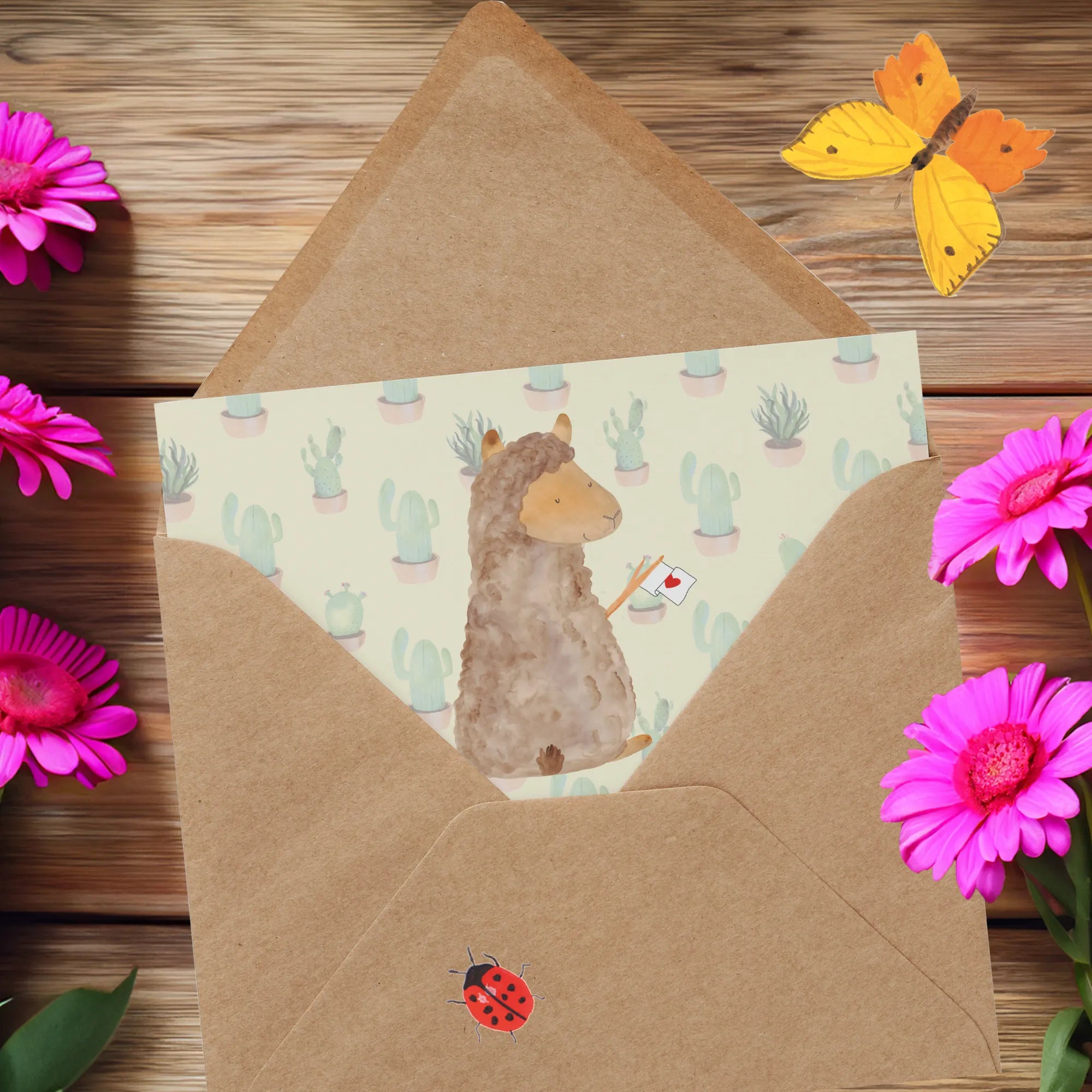 Mach die Welt ein wenig bunter mit dieser entzückenden Alpaka Karte von Mr. & Mrs. Panda, ideal für alle, die Freude, Liebe und Wärme verbreiten möchten.