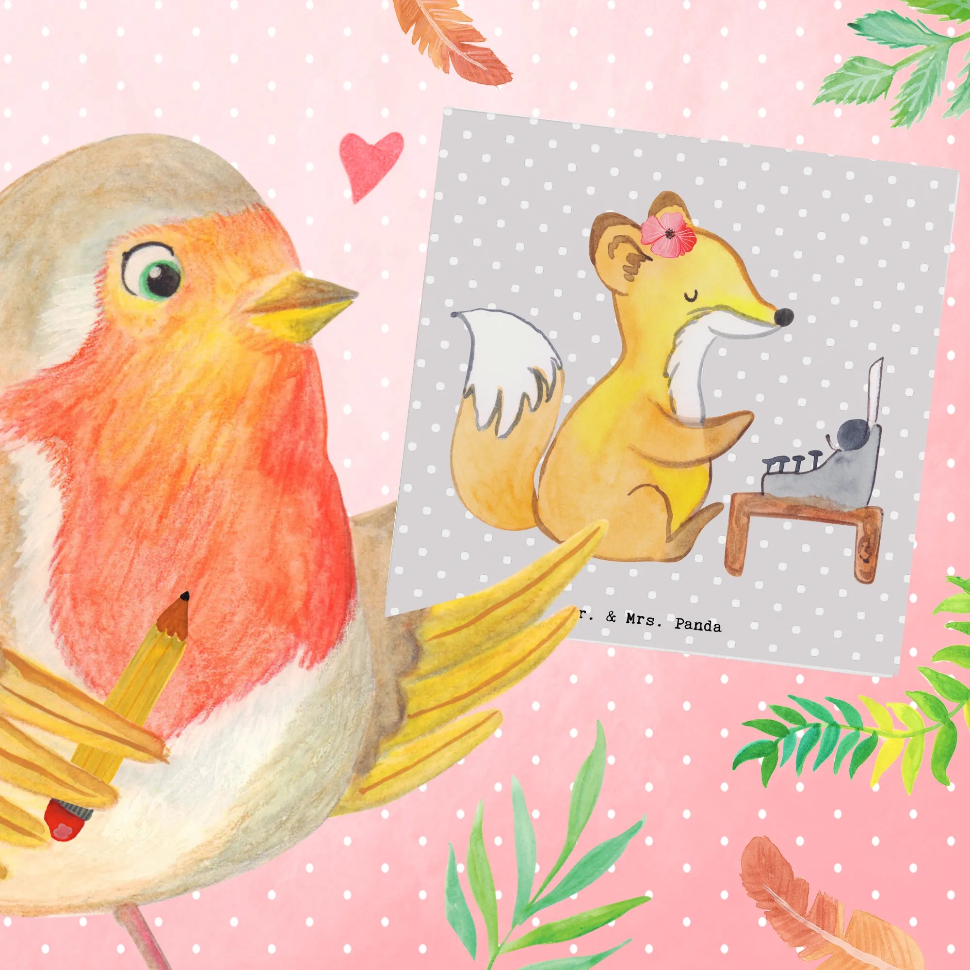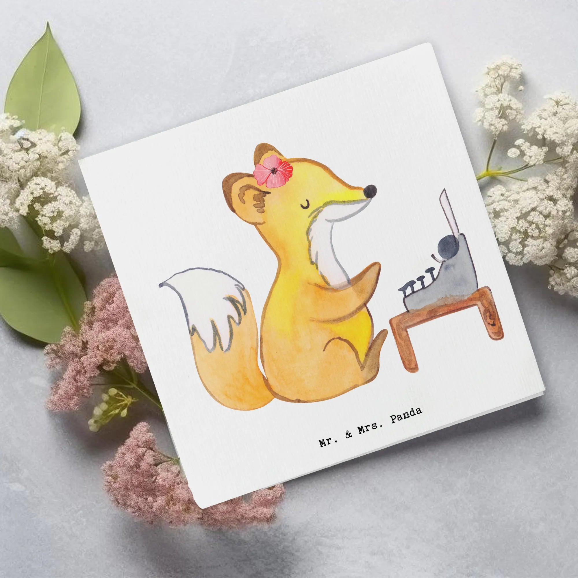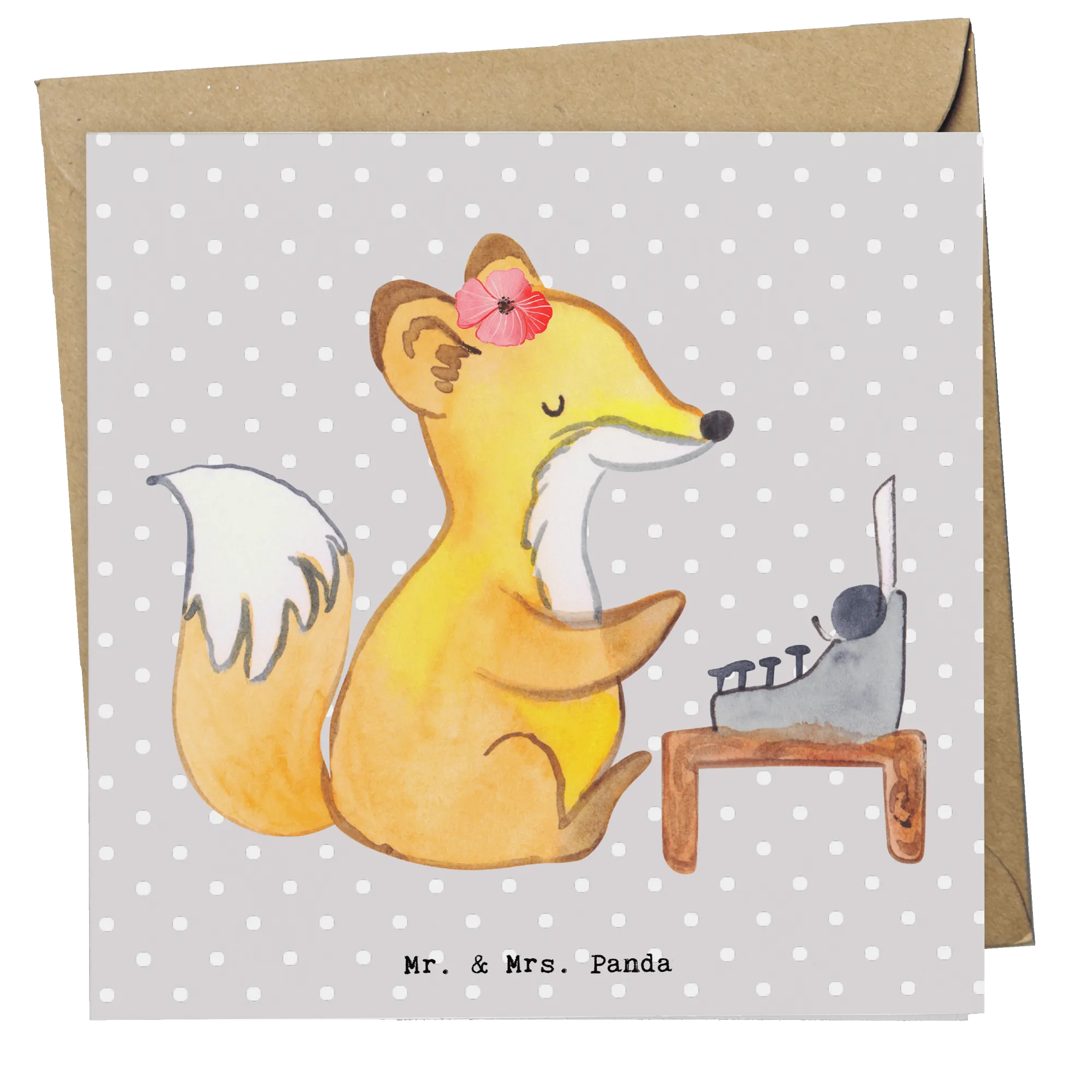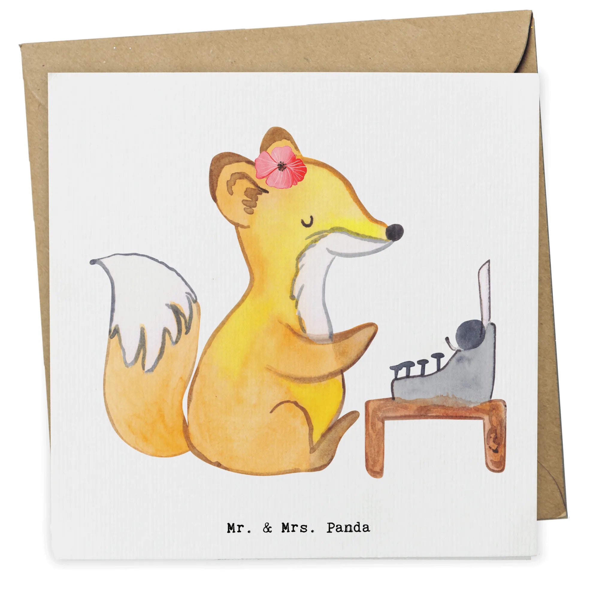 Die Deluxe Karte "Autorin mit Herz" aus der kreativen Berufe Kollektion von Mr. & Mrs. Panda ist das perfekte Geschenk für alle leidenschaftlichen Schriftstellerinnen und Autorinnen. Ob zum Geburtstag, zur Hochzeit, zum Jubiläum oder einfach als kleines Dankeschön für deine Kollegin – diese liebevoll gestaltete Karte sorgt garantiert für Freude! Mit einem charmanten Motiv eines Fuchses, der eifrig an seiner Schreibmaschine arbeitet, erinnert diese Karte deine Freunde und Bekannten daran, wie wunderbar und wichtig ihre kreativen Werke sind.