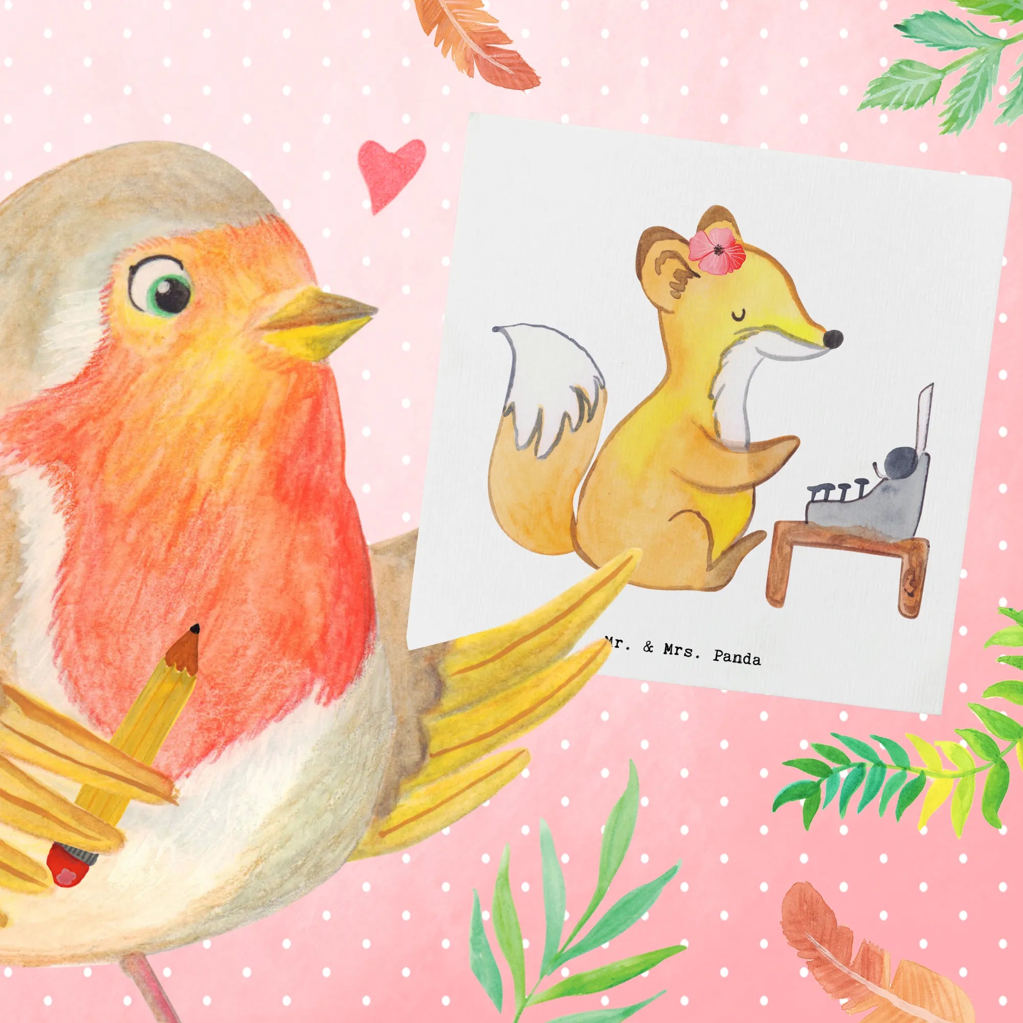 Die Deluxe Karte 'Autorin mit Herz' von Mr. & Mrs. Panda ist der perfekte Begleiter für alle, die die Kunst des Schreibens lieben. Mit ihrem liebevoll gestalteten Motiv eines Fuchses, der in einer Schreibmaschine Geschichten verfasst, spricht diese Karte speziell die Herzen von Autorinnen und Schriftstellern an.