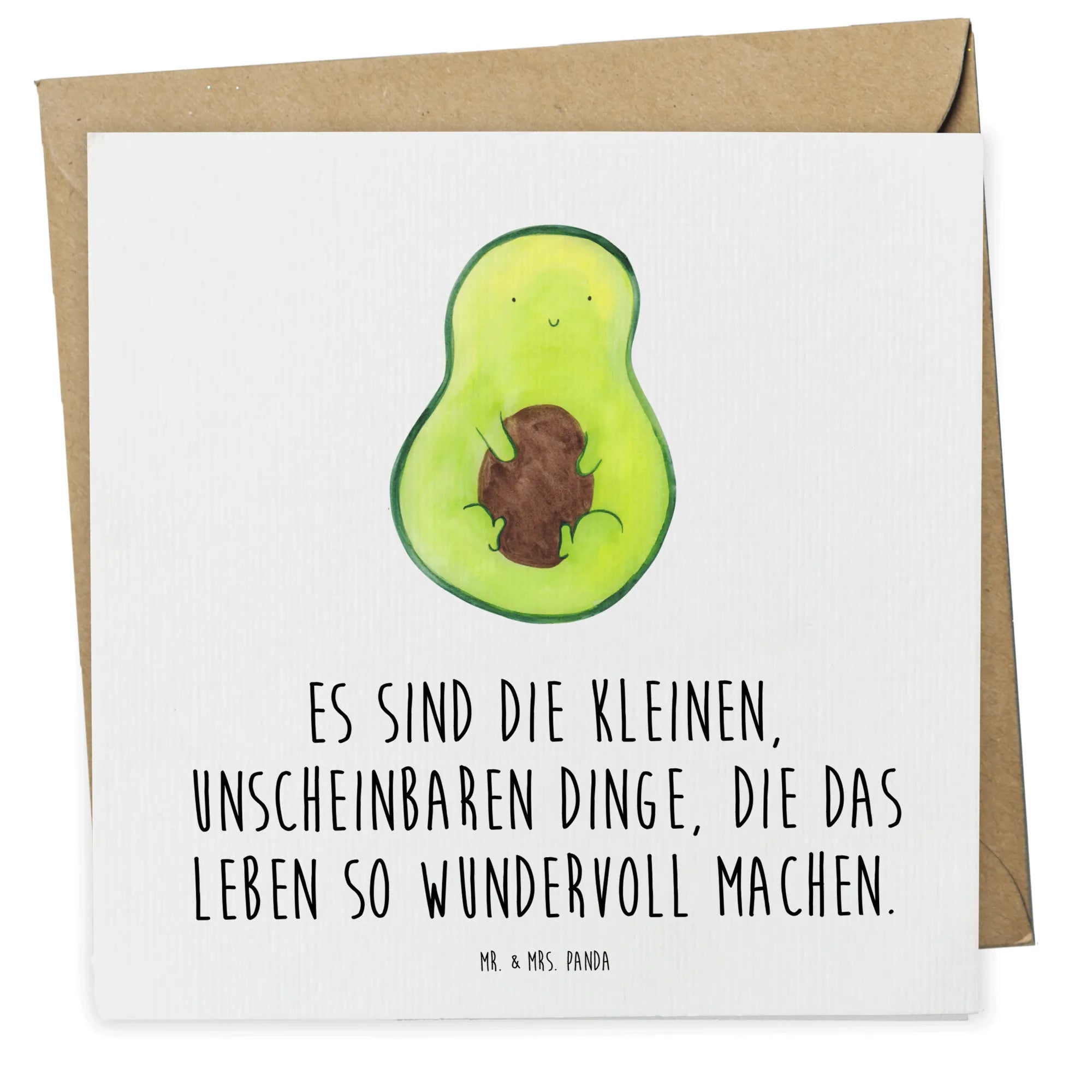 Entdecke die süßeste Grußkarte aus unserer Avocado Kollektion – die Deluxe Karte Avocado mit Kern! Diese wundervolle, quadratische Karte von Mr. & Mrs. Panda ist nicht nur ein Hochgenuss für die Augen, sondern auch für die Seele. Mit einem liebevoll gestalteten Motiv, das eine niedliche Avocado zeigt, die sich an ihren Kern klammert, versprüht sie pure Lebensfreude. Ihre fröhlichen Farben und der positive Spruch "Es sind die kleinen, unscheinbaren Dinge, die das Leben so wundervoll machen." machen sie zum perfekten Begleiter für deine Glückwünsche zu besonderen Anlässen.