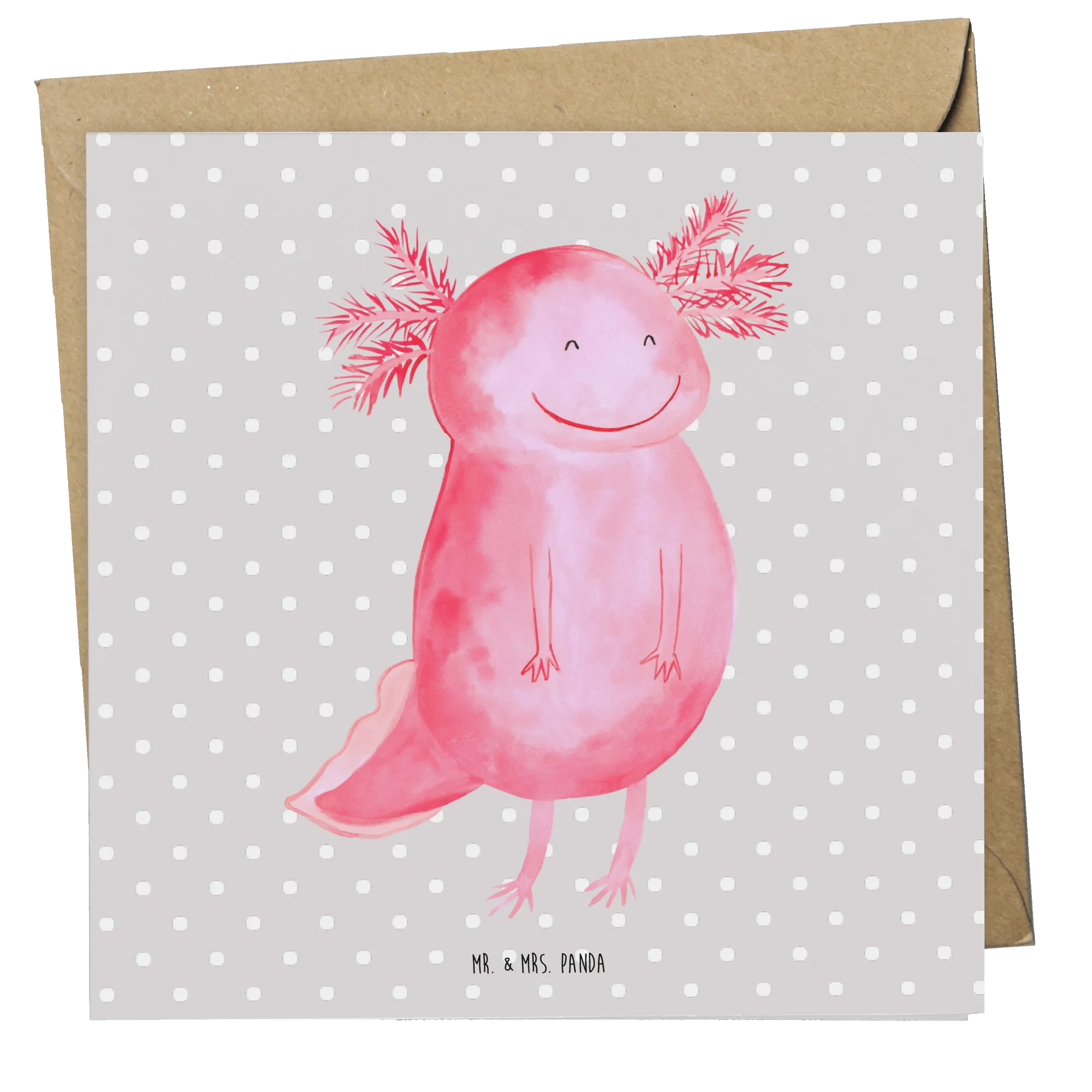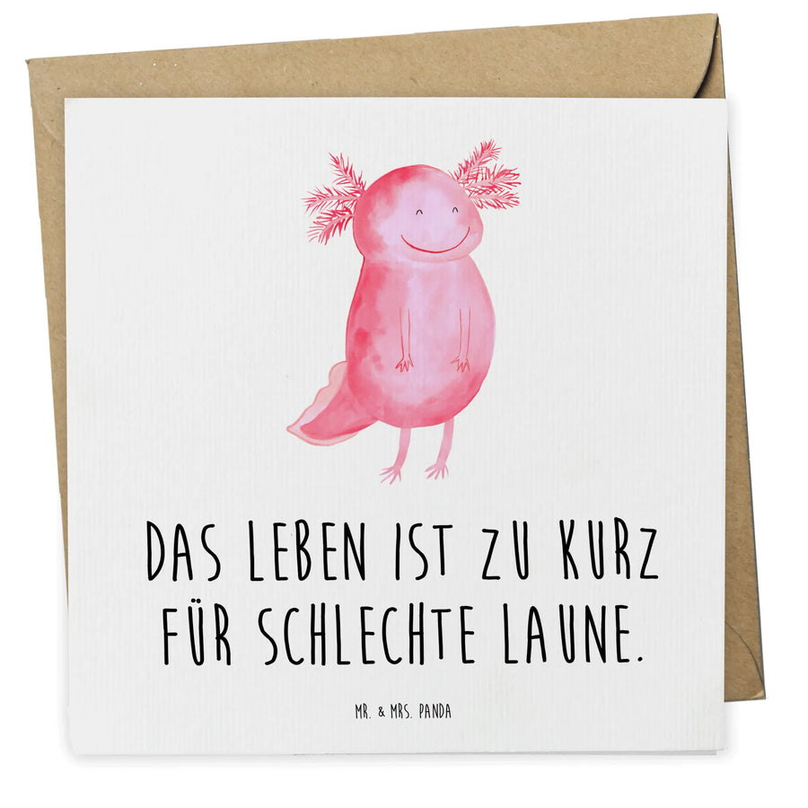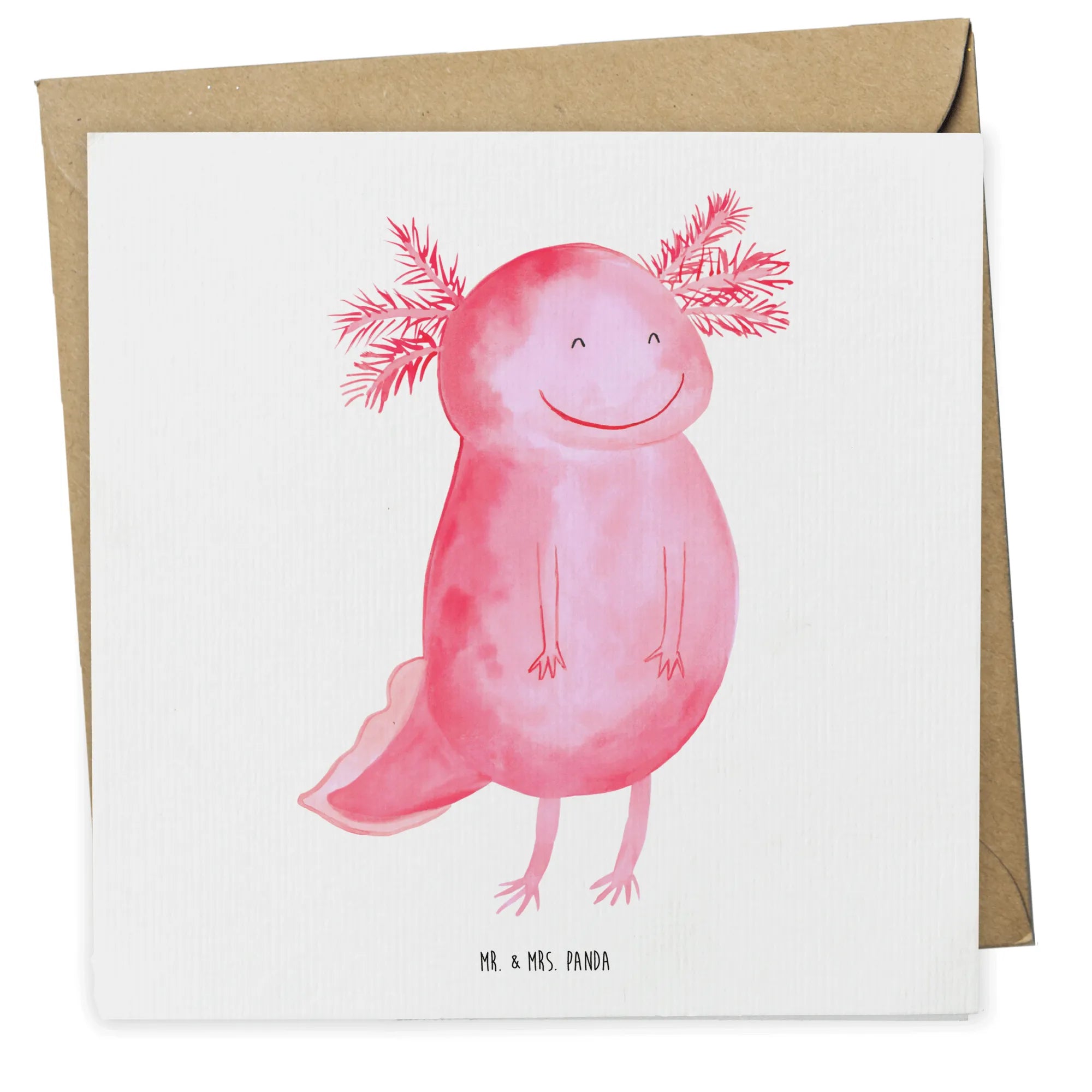 Entdecke die zauberhafte Deluxe Karte "Axolotl glücklich" von Mr. & Mrs. Panda, das perfekte Geschenk für jeden, der Freude und gute Laune verbreiten möchte!
