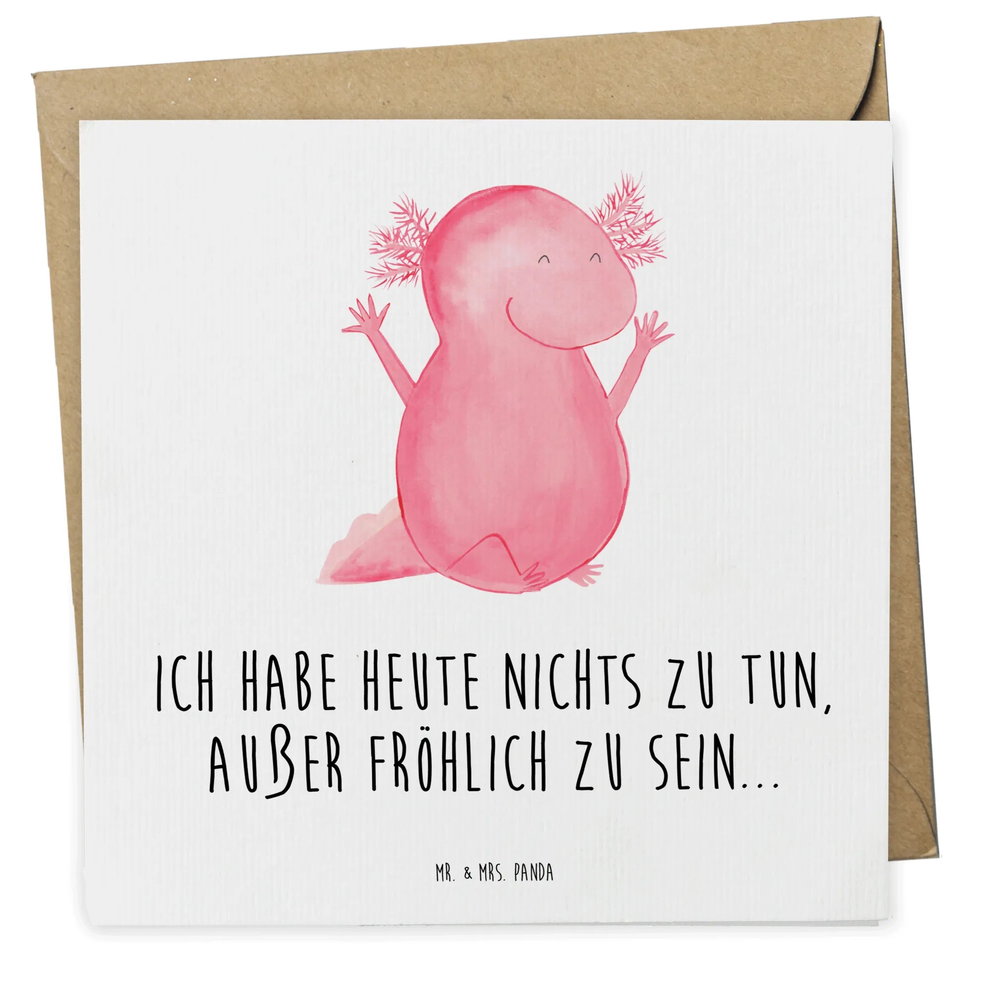 Und der Slogan "Ich habe heute nichts zu tun, außer fröhlich zu sein..." zaubert jedem ein Lächeln ins Gesicht. Diese Karte ist nicht nur ein Geschenk – sie ist eine Freude, die du mit Freunden und Familie teilen kannst. Jedes Motiv in der Axolotl-Kollektion wurde mit viel Liebe von Mrs. Panda handgezeichnet und verleiht dem gesamten Design diesen einzigartigen Charme.