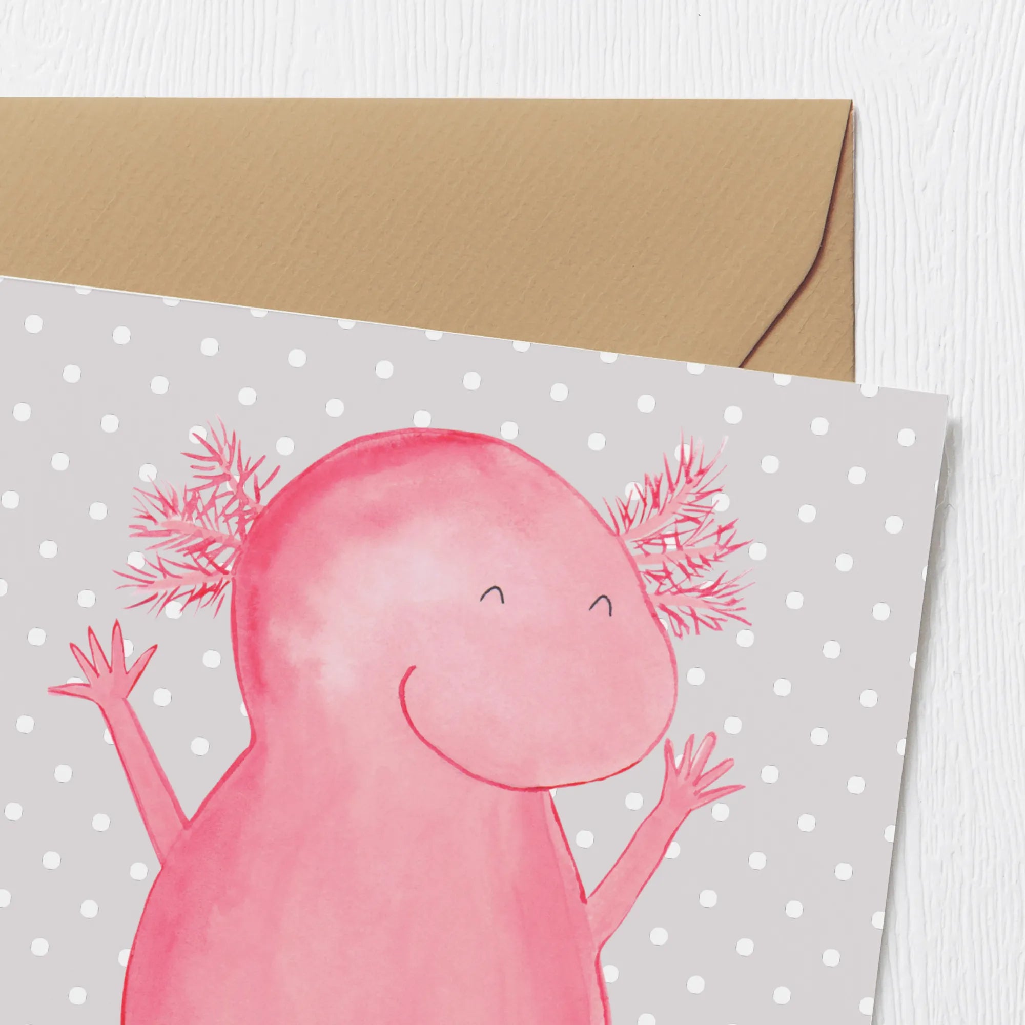 Die Axolotl Kollektion von Mr. & Mrs. Panda ist eine liebevoll gestaltete Reihe, die immer wieder begeistert und zum Schmunzeln einlädt. Überrasche deine Freunde oder Familienmitglieder mit dieser einzigartigen Karte und bringe ein Stück Freude in ihren Alltag!