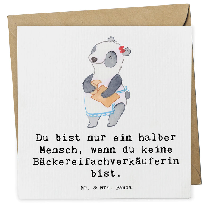 Perfekt für besondere Anlässe und für die, die dem süßen Beruf des Backens nachgehen. Mit dem Spruch "Du bist nur ein halber Mensch, wenn du keine Bäckereifachverkäuferin bist.", sorgt diese Karte für Lächeln und gute Laune - nicht nur beim Beschenkten, sondern auch beim Verschenkenden.